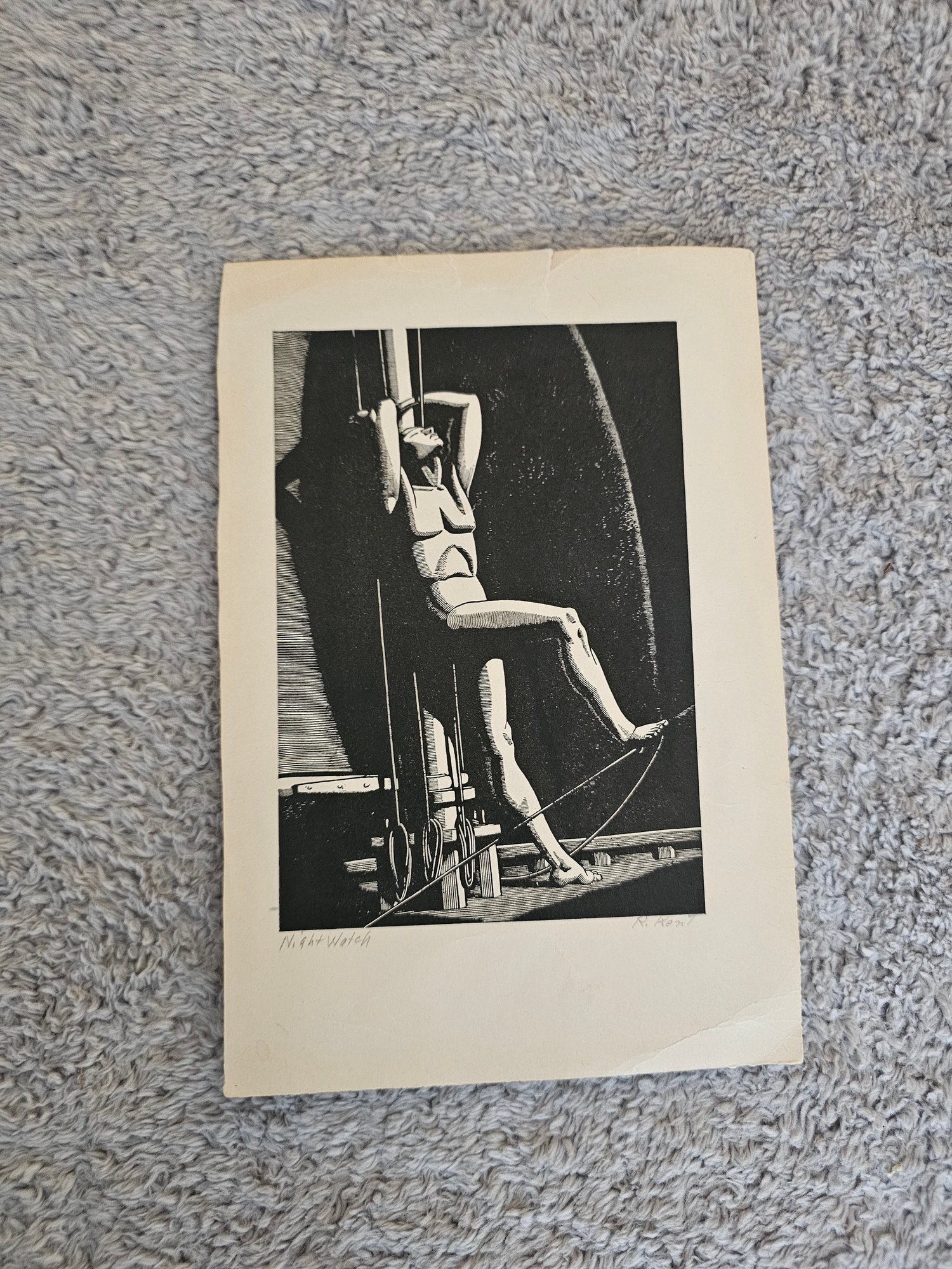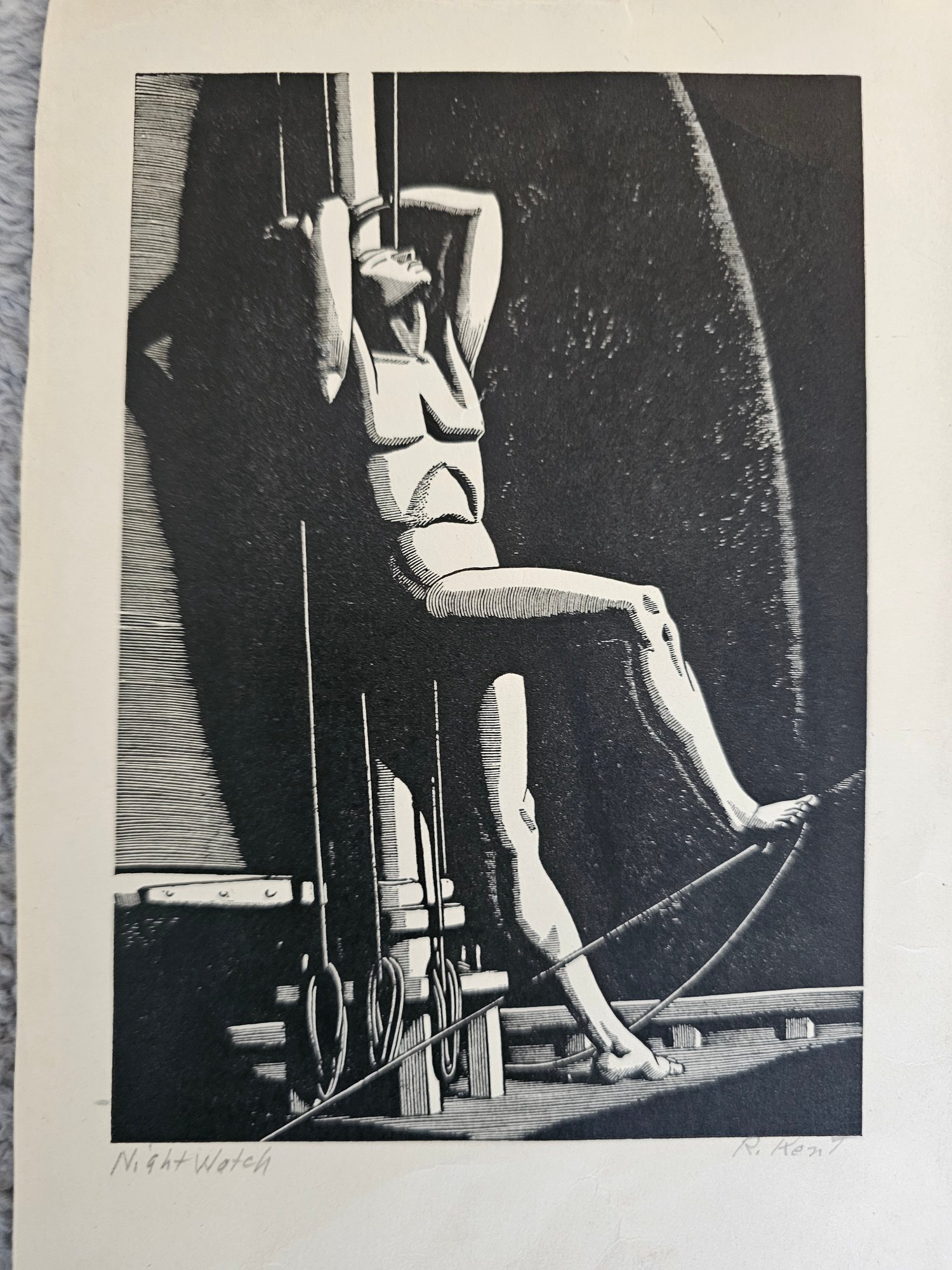 Rockwell Kent Night Watch 1930 Wood Engraving American Modernist WPA Era E38