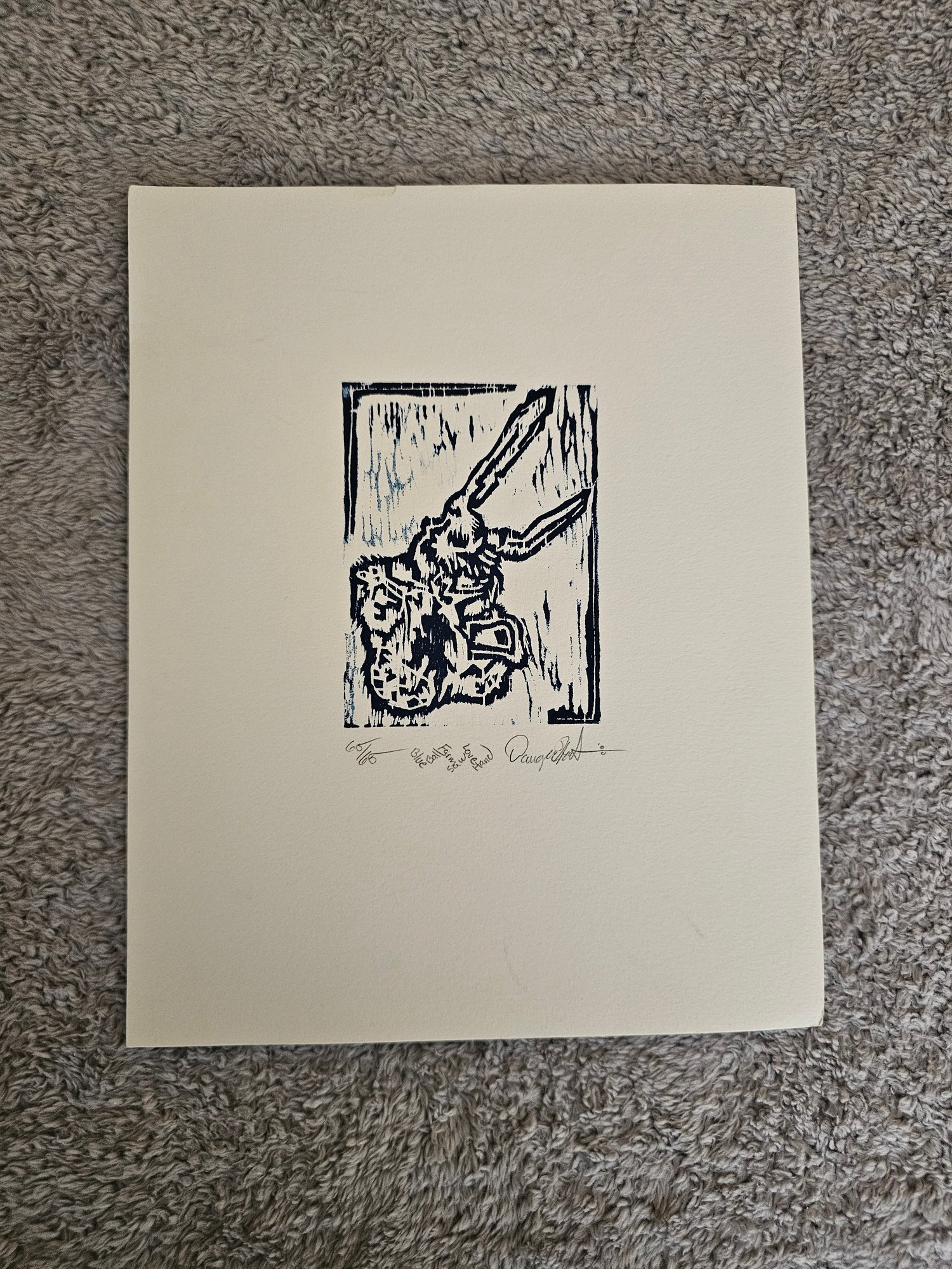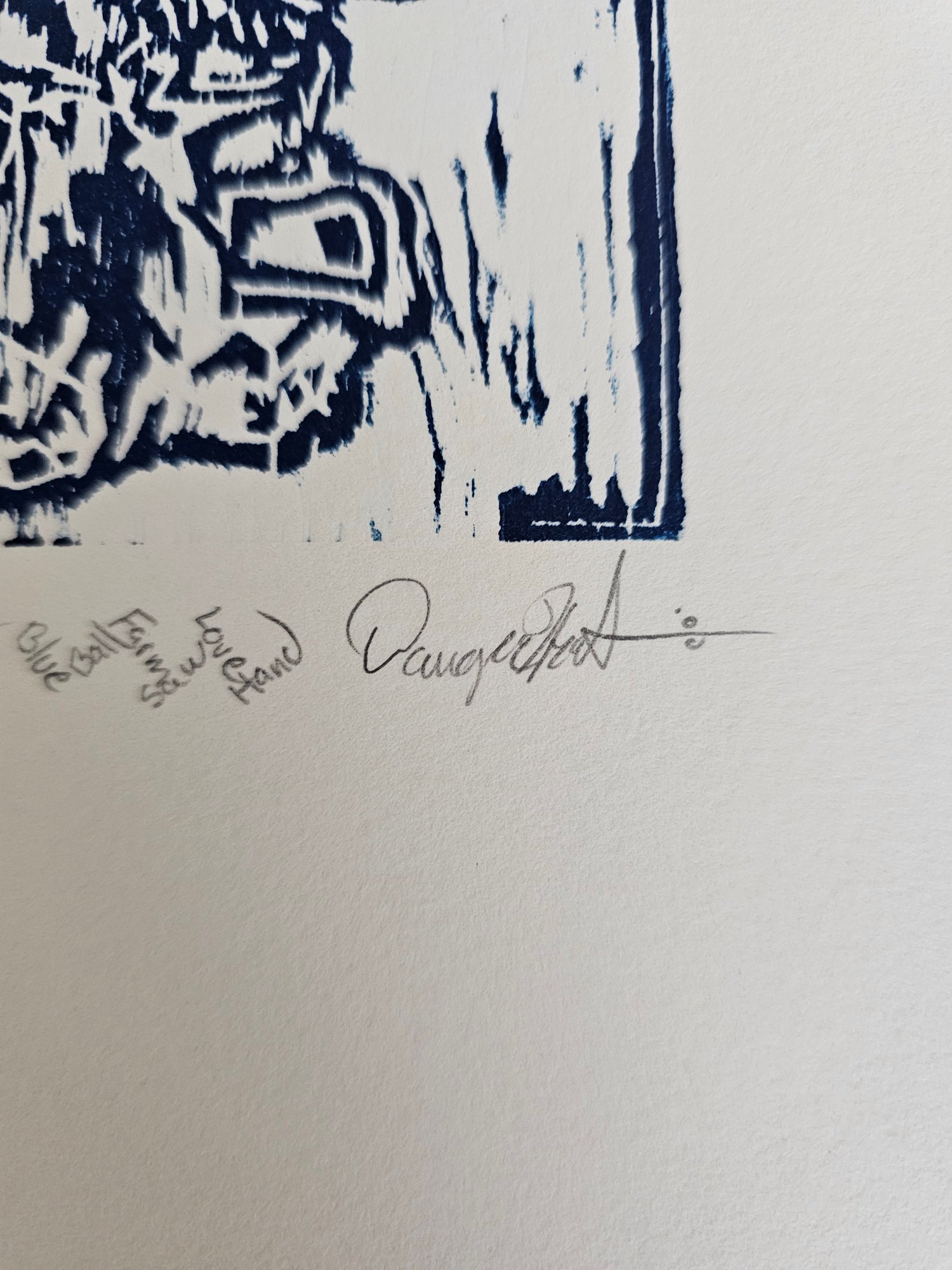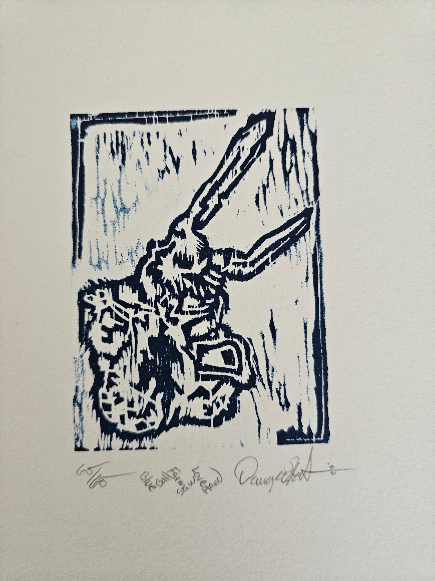 Signed And Numbered Linocut Print? Blue Ball Farm Saw Love Hand 65/65 E46