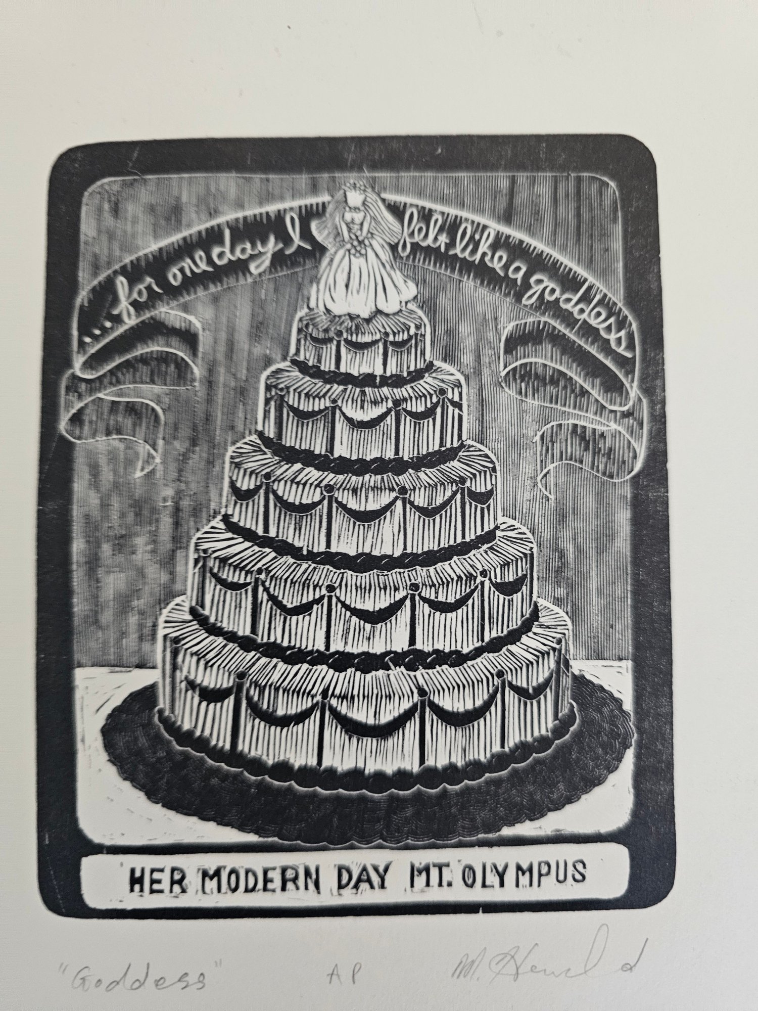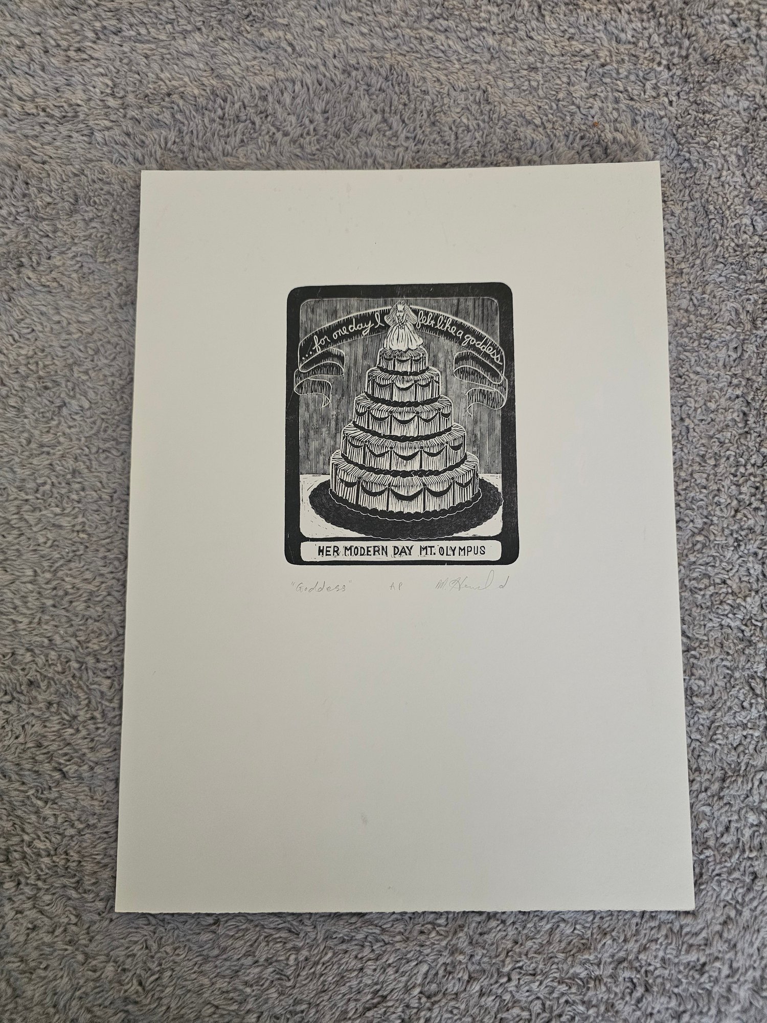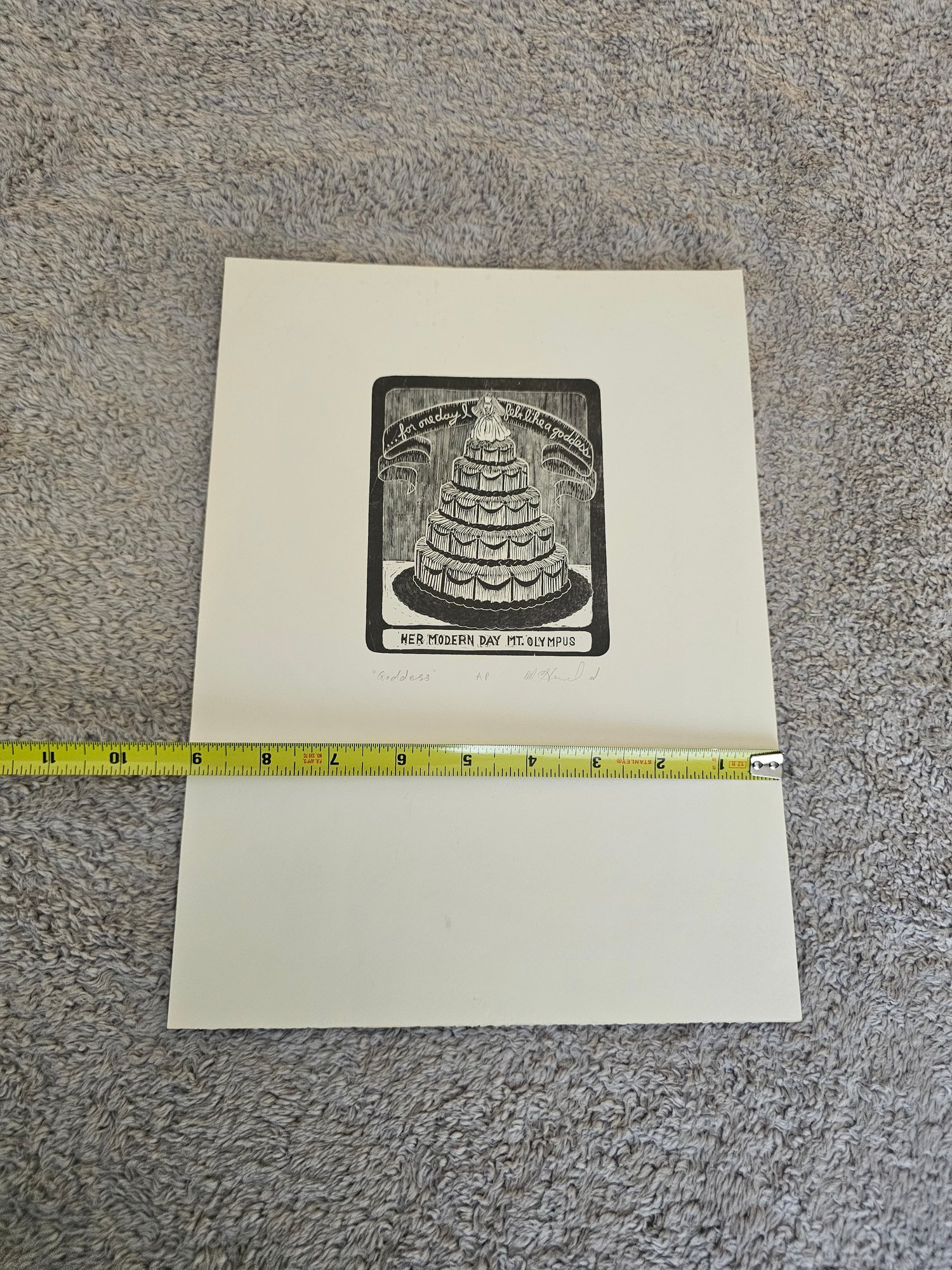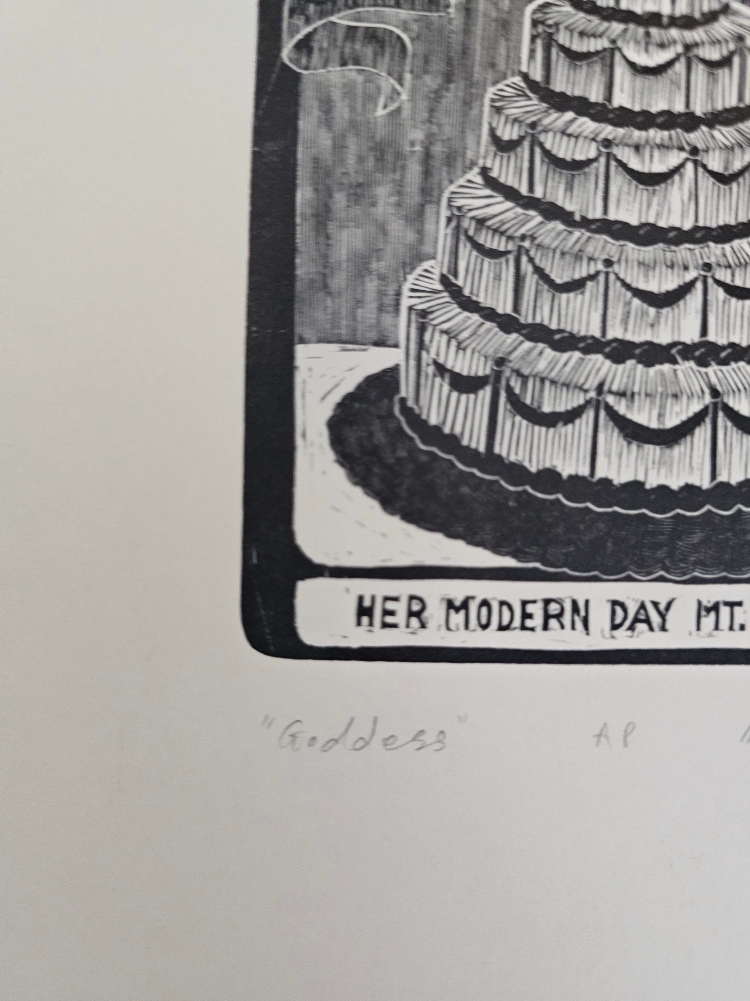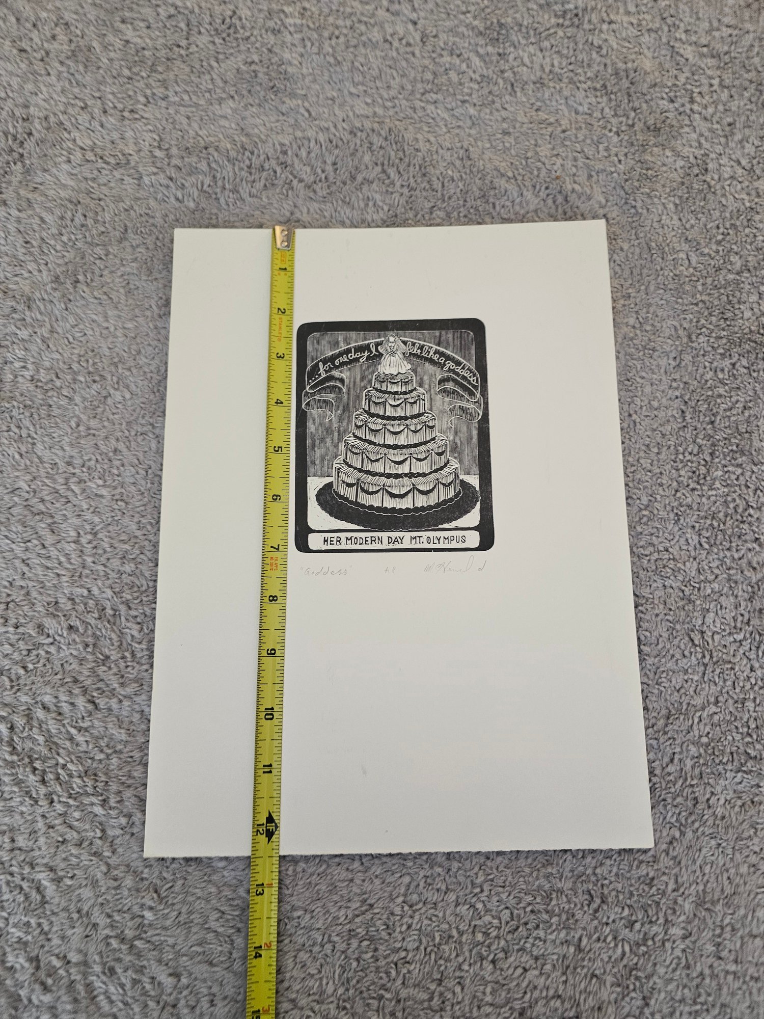 Signed Rare Artist Proof Black And White Woodcut Print Titled Goddess E28