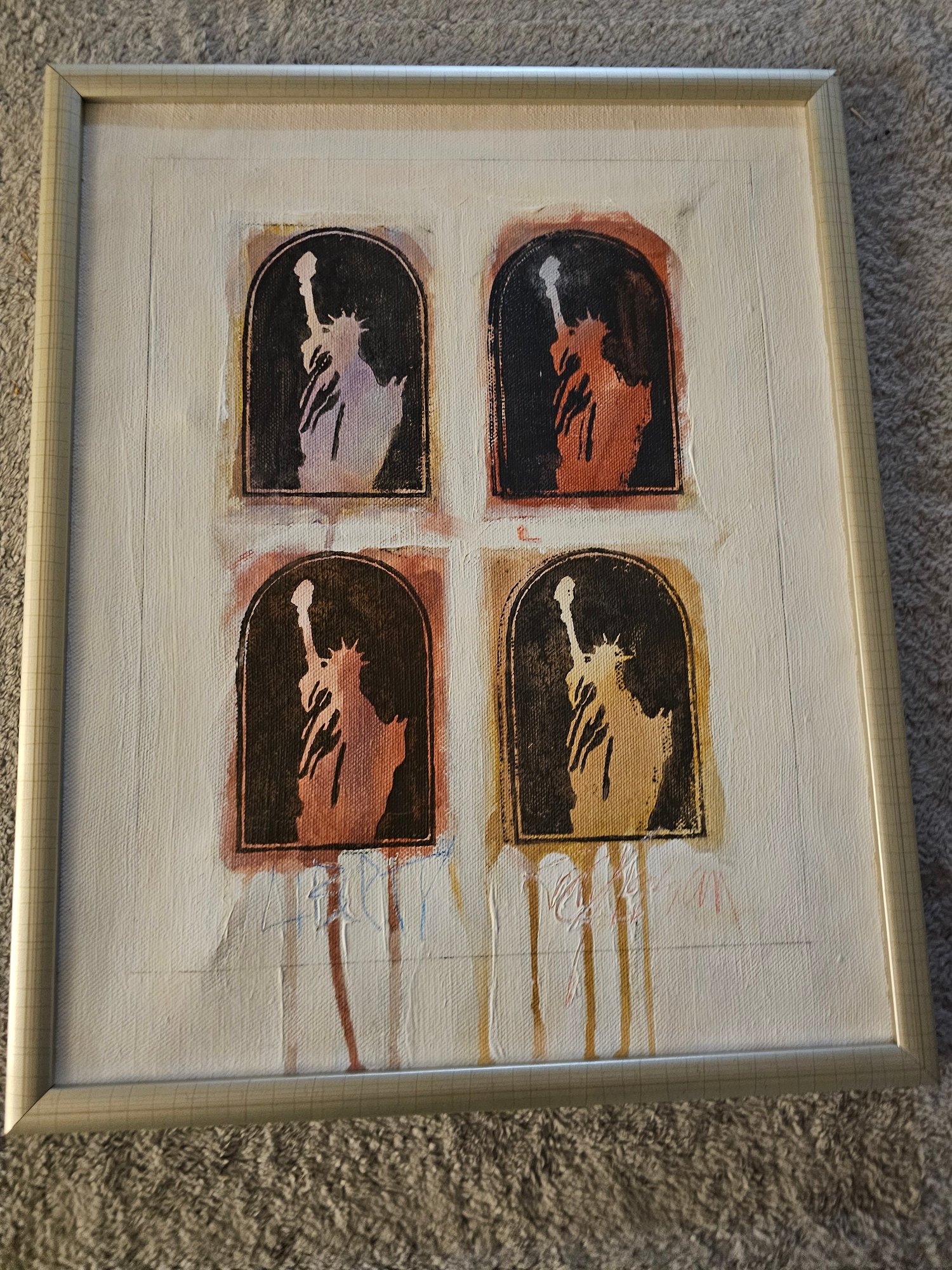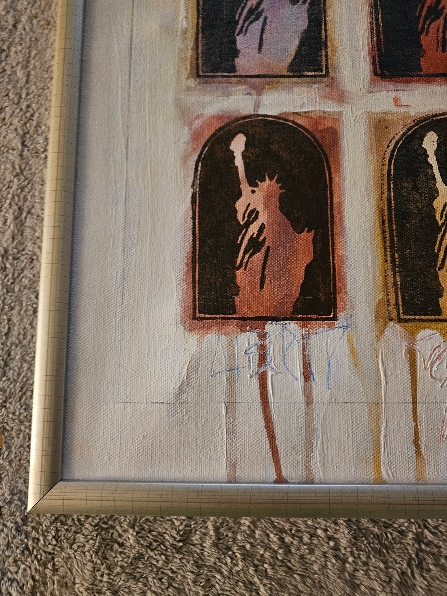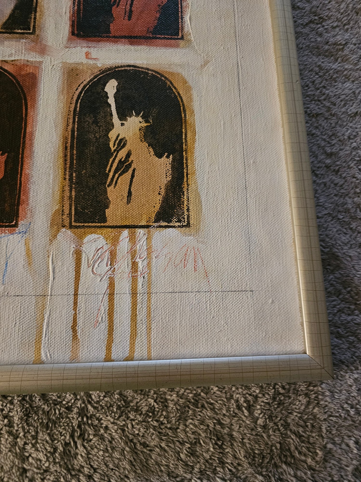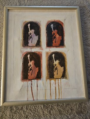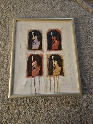Signed Statue Of Liberty Art Mixed Media Framed B35