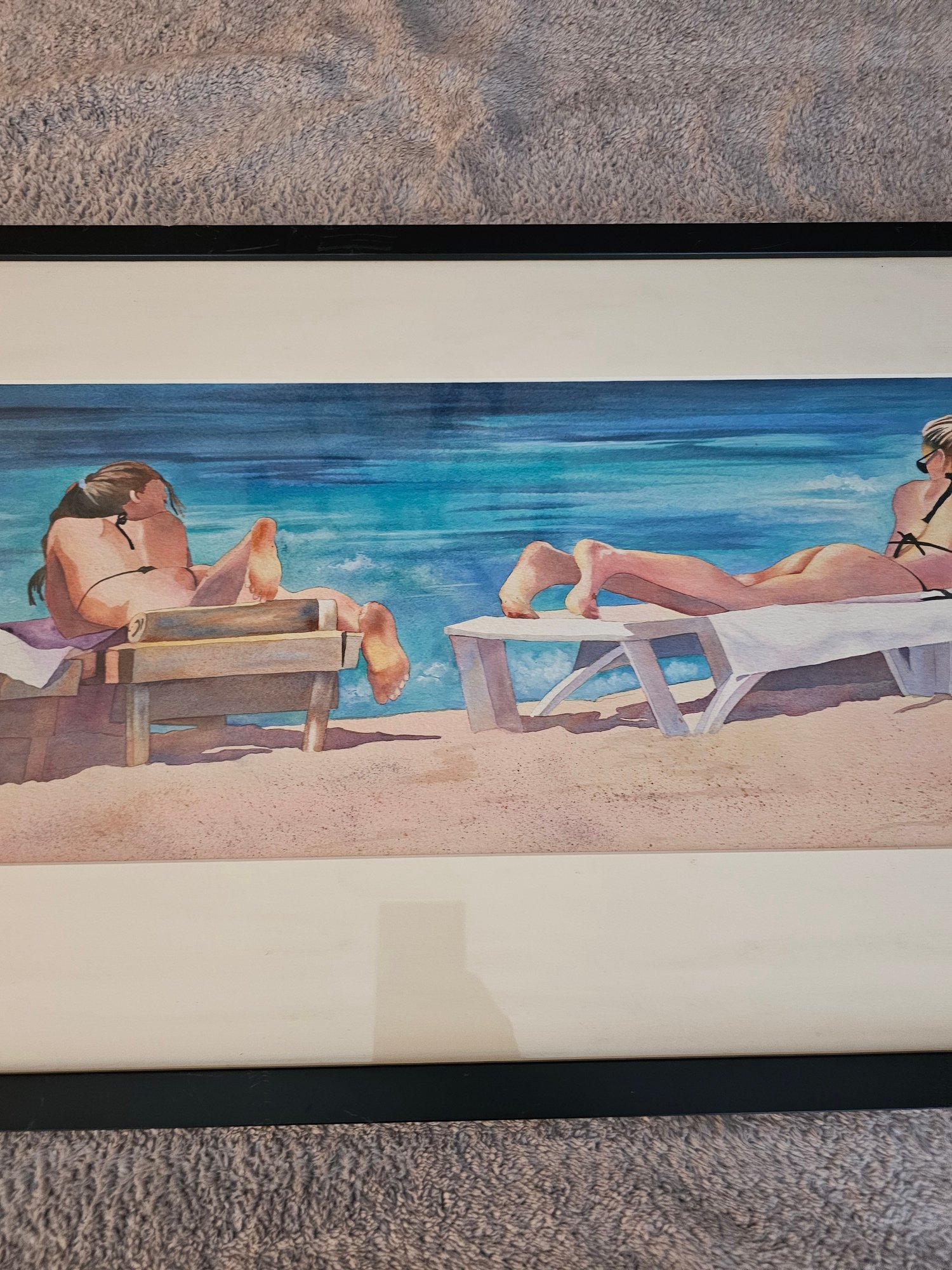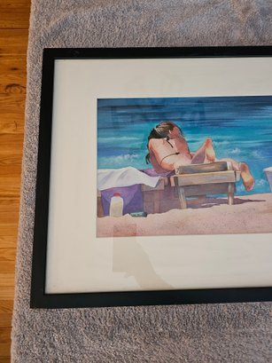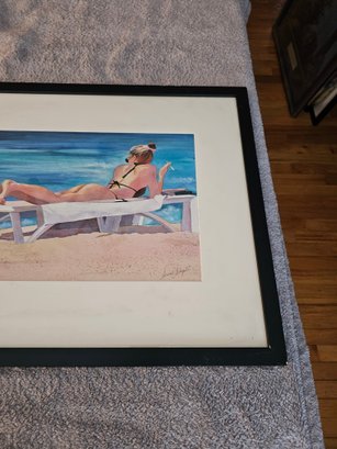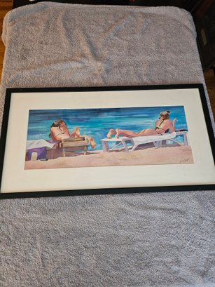 Signed Watercolor Print 2 Women On Beach A9