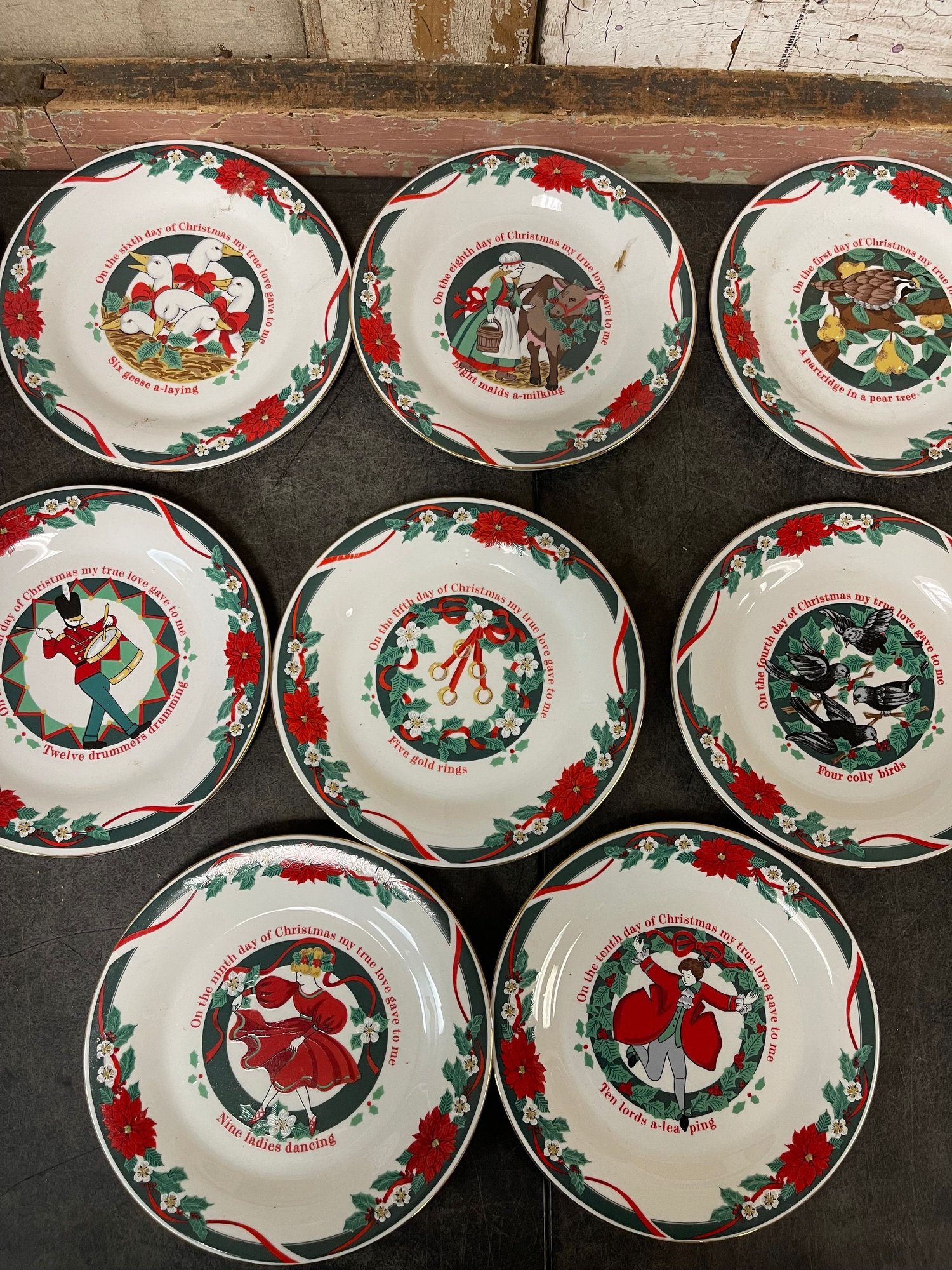 Tien Shan Fine China Deck The Halls Set Of 12 Desert Plates (h3)