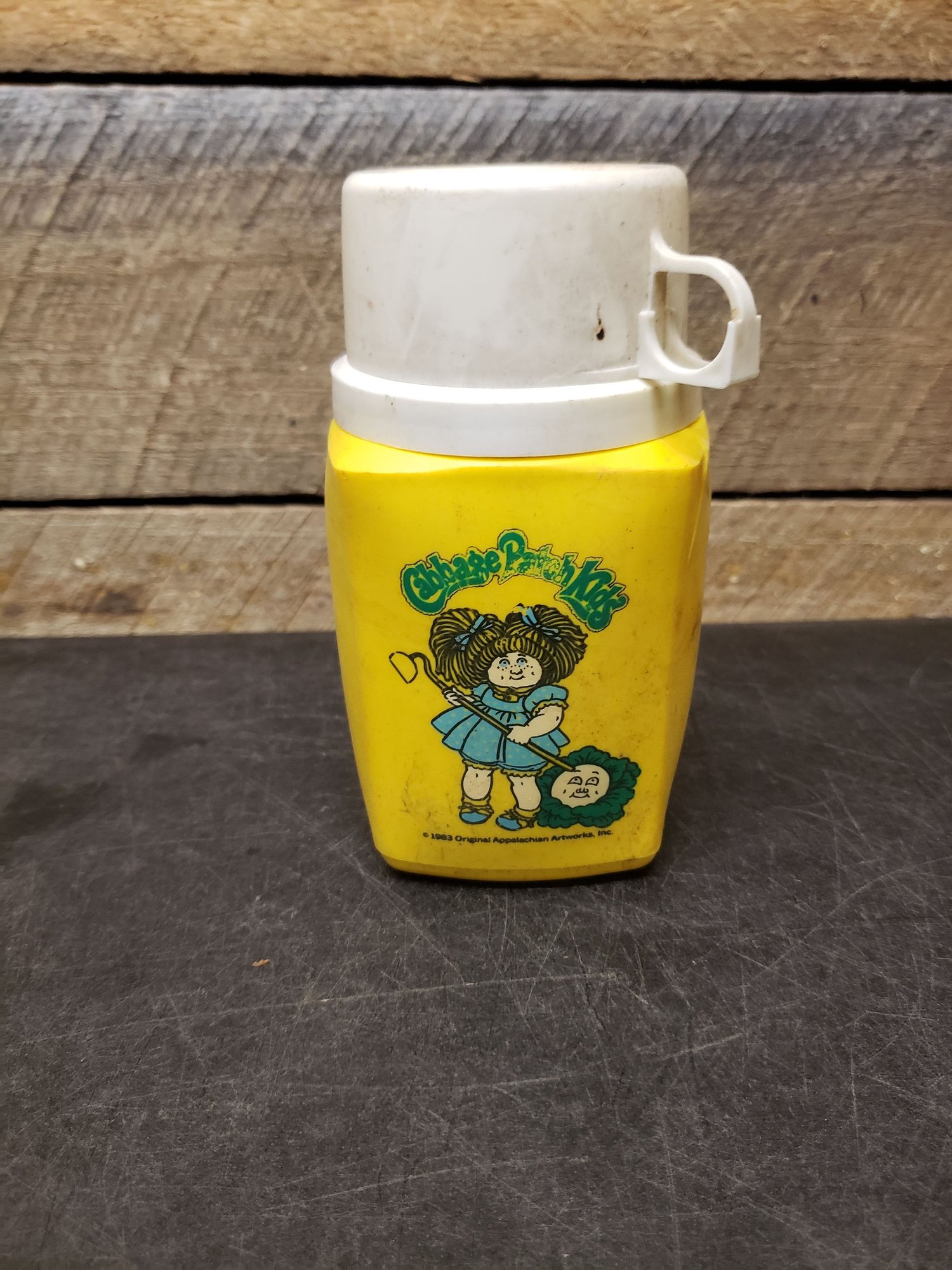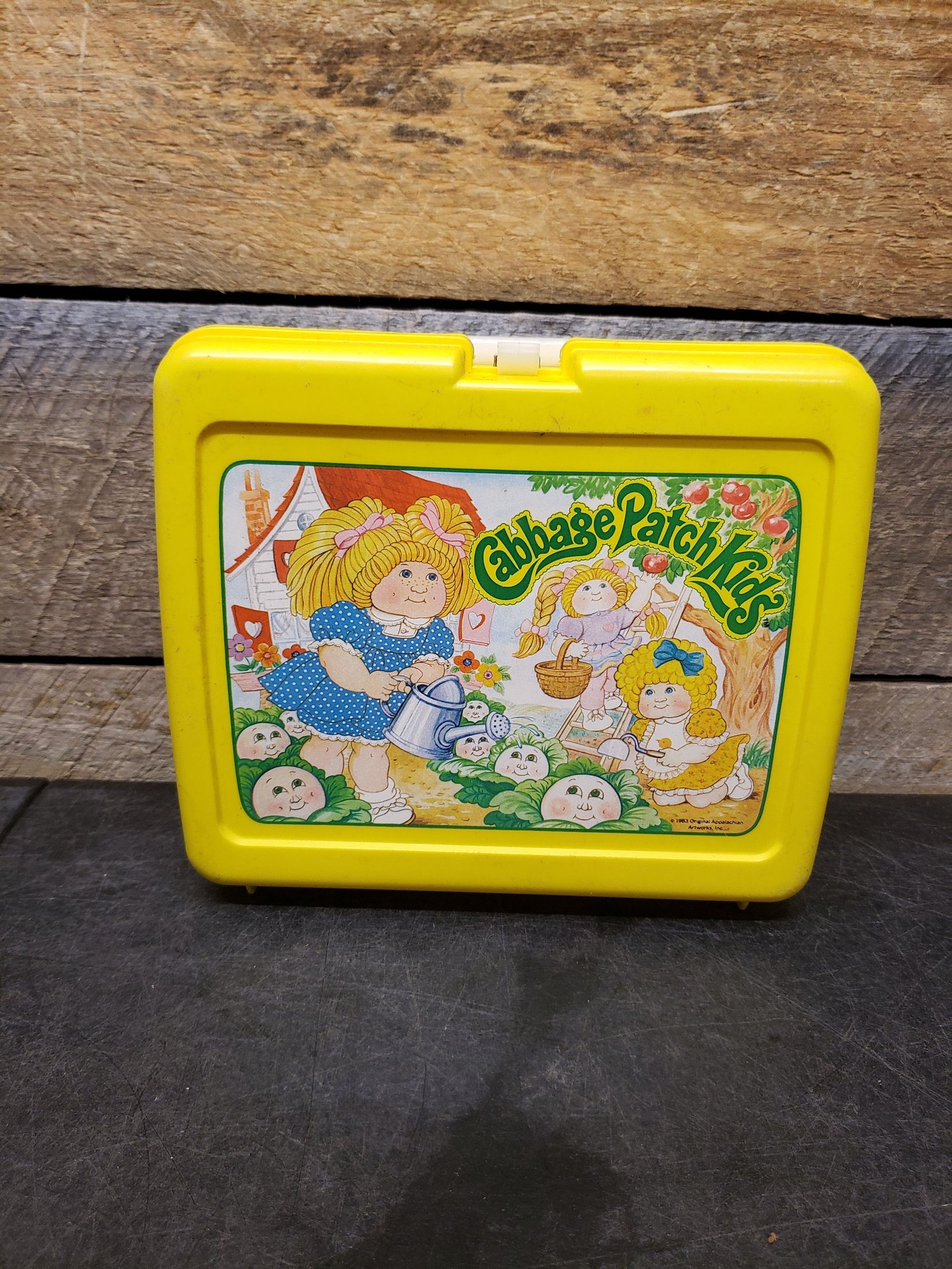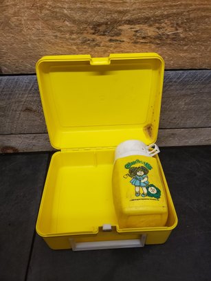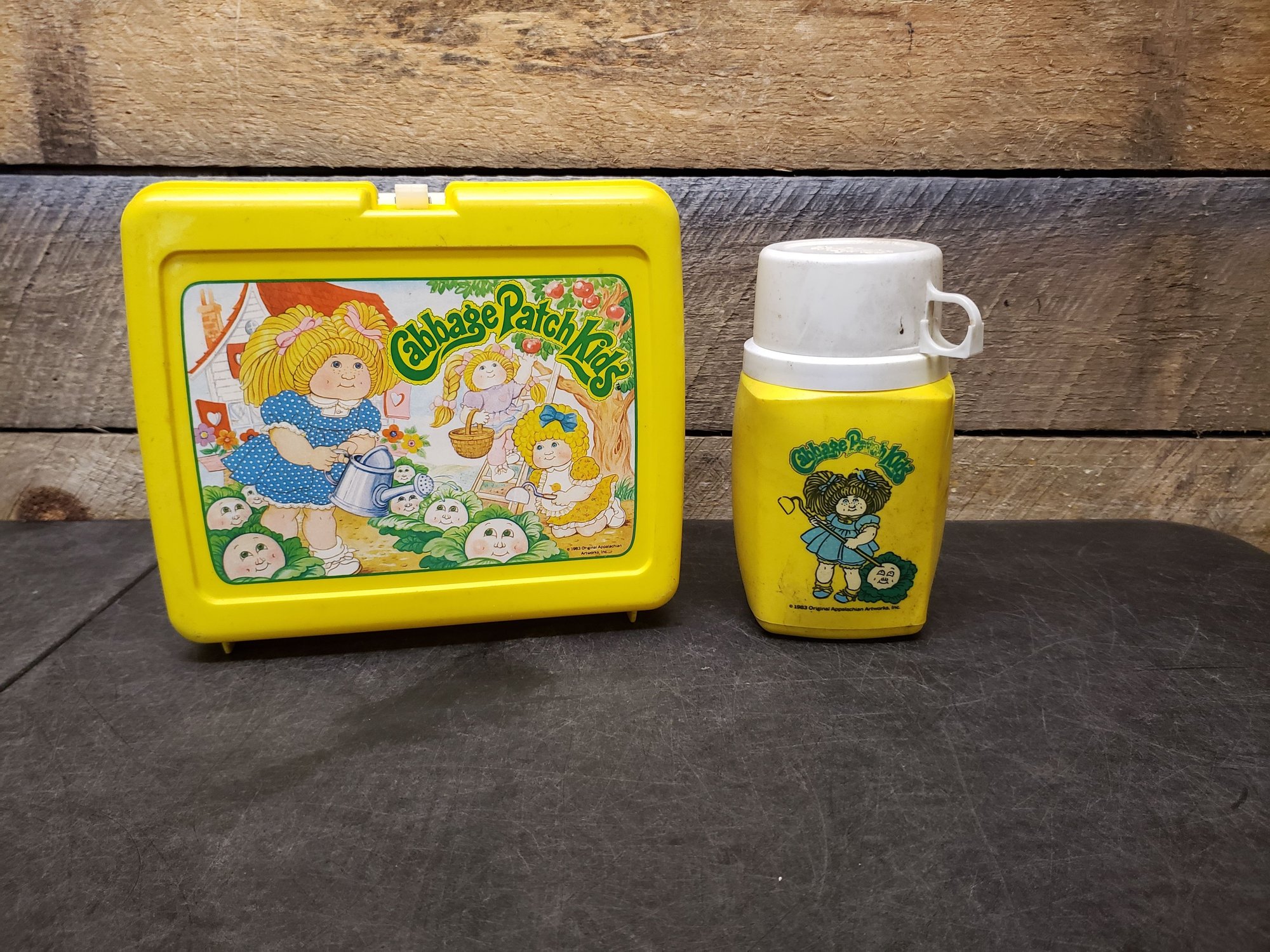 Vintage Cabbage Patch Kids Yellow Plastic Lunch Box And Matching Thermos Set L1