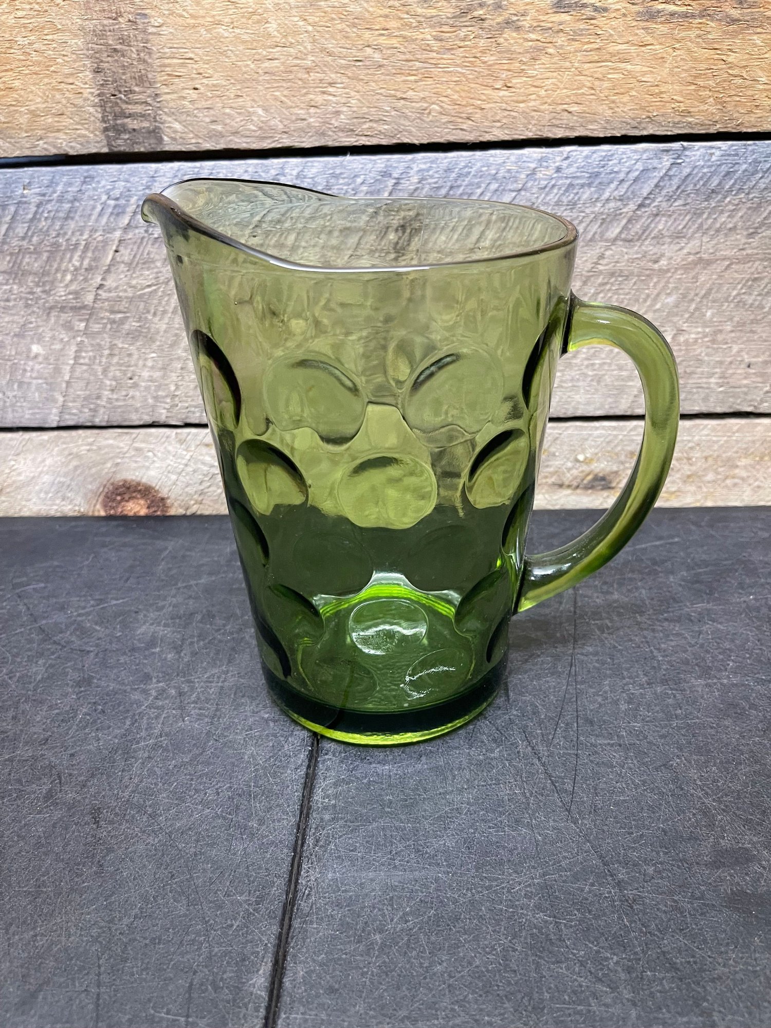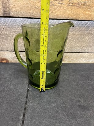 Vintage Hazel-Atlas Eldorado Avocado Green Coin Dot Glass Pitcher (k1)