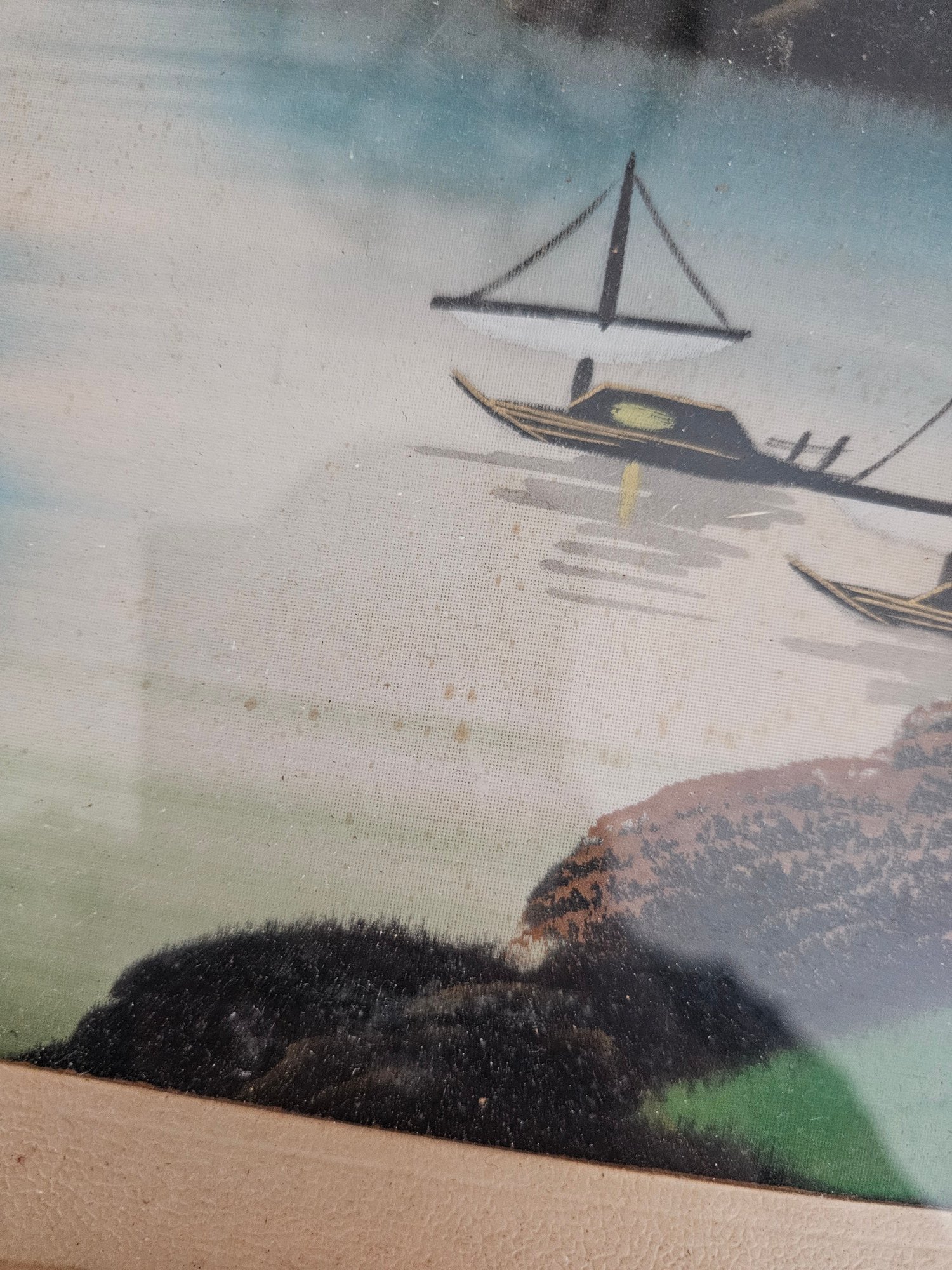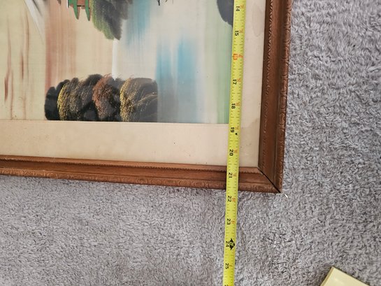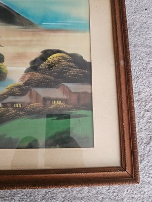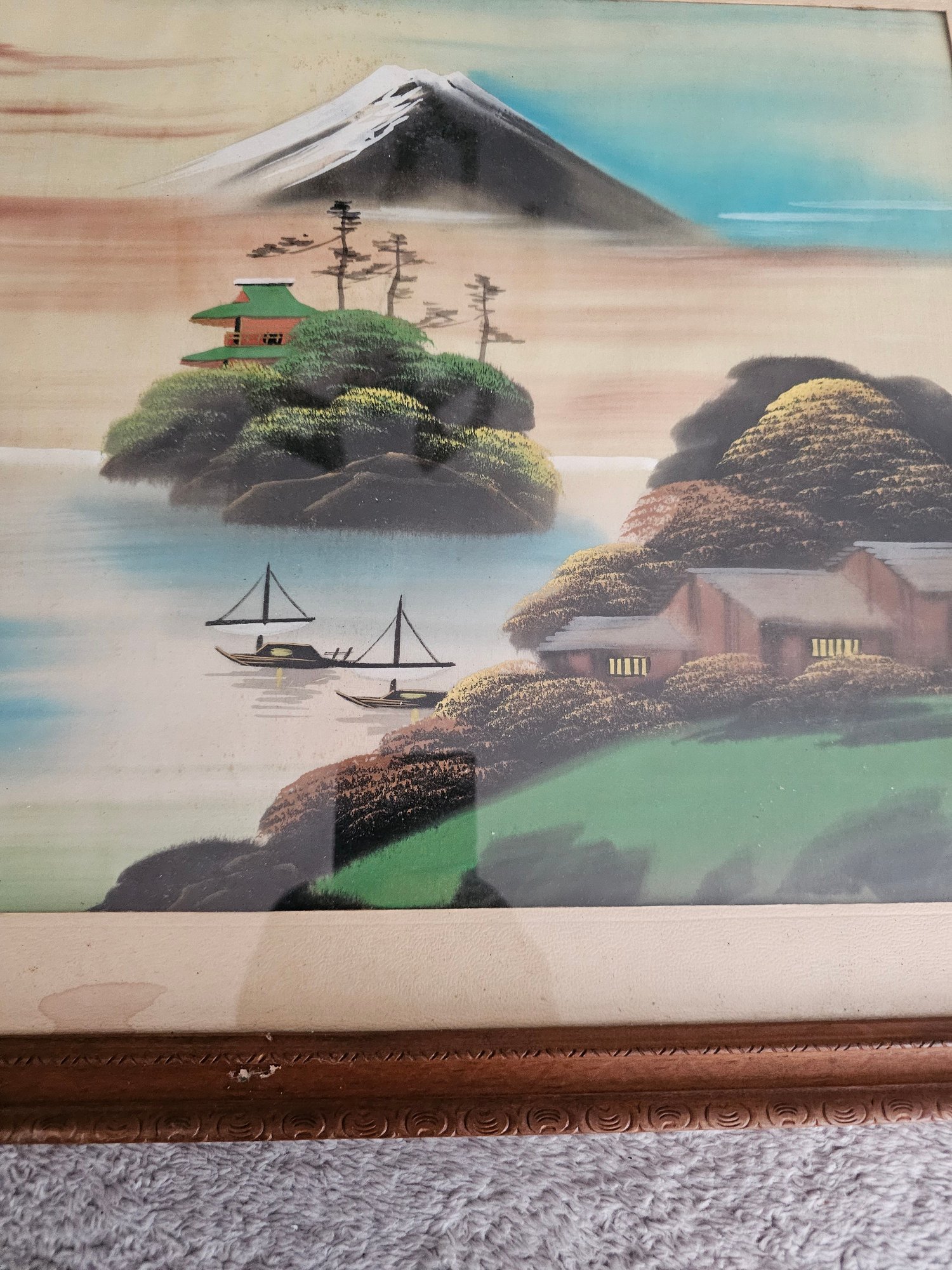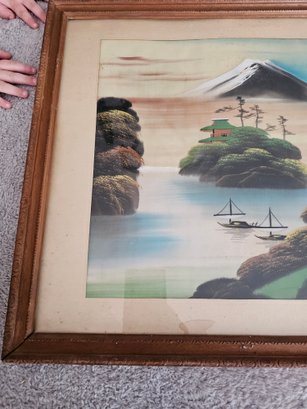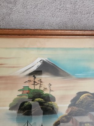 Vintage Original Japanese Painting On Silk, Mid-Century, Framed, Signed B92