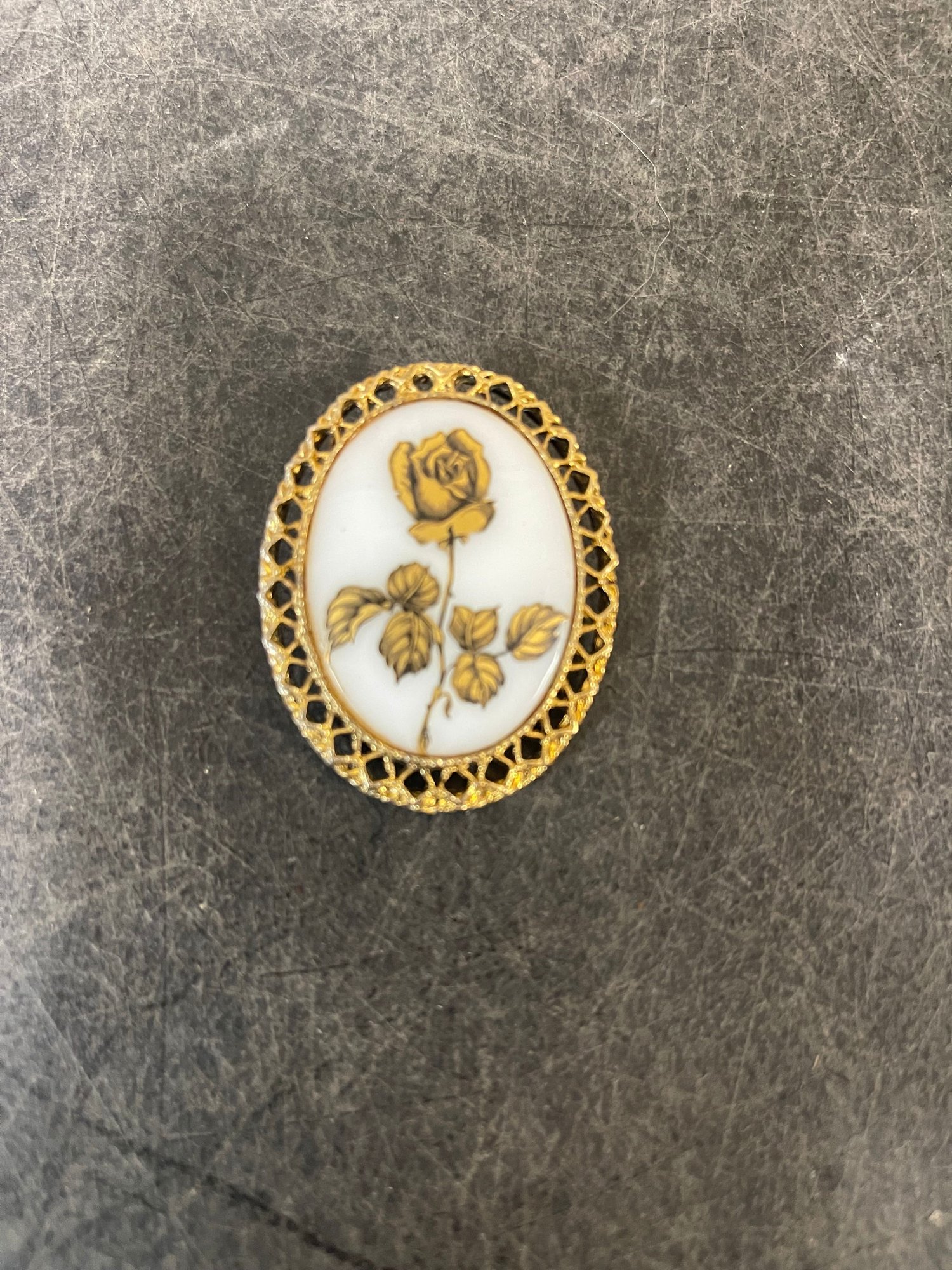 Vintage Oval Porcelain Rose Brooch (C2)