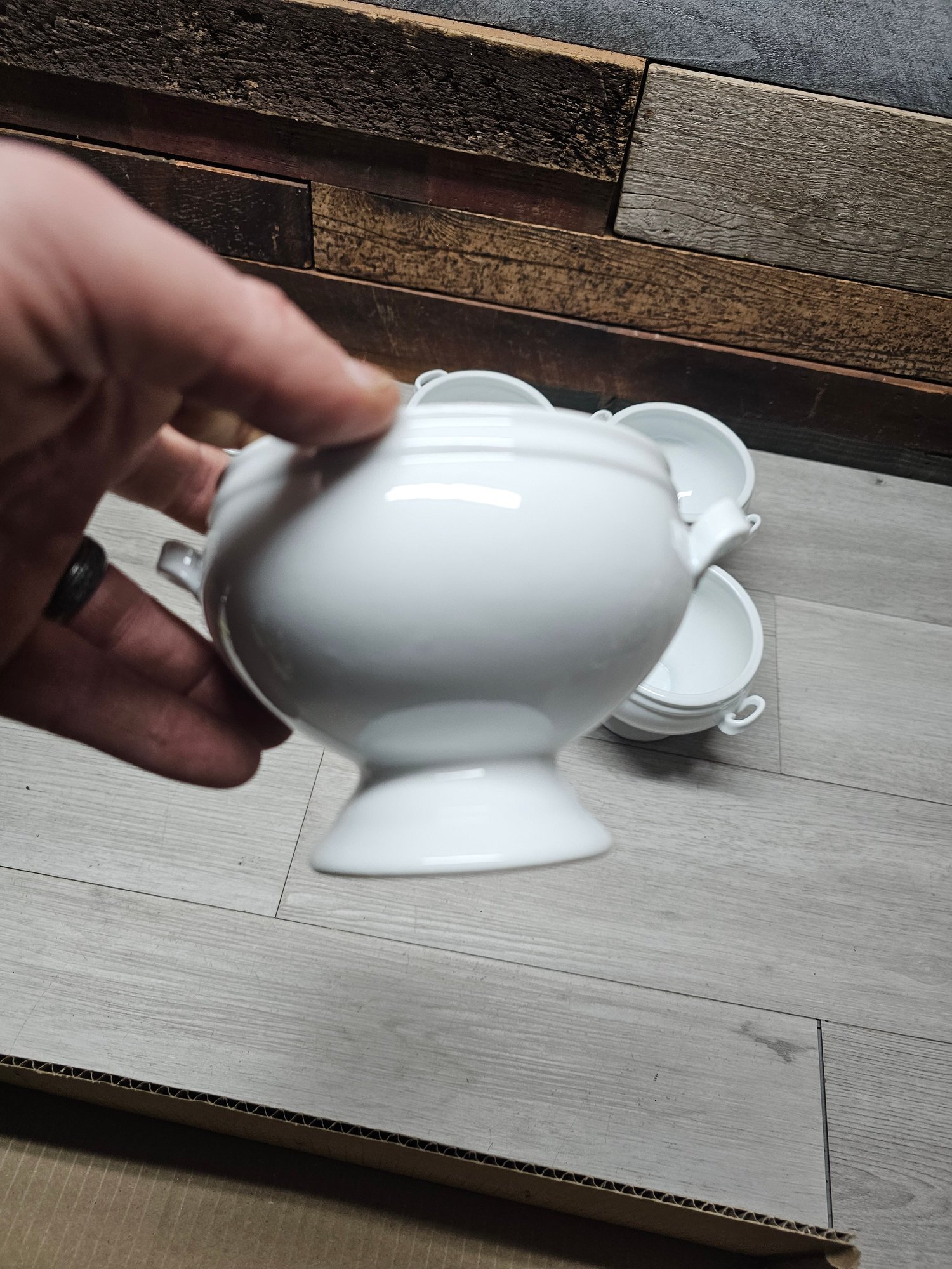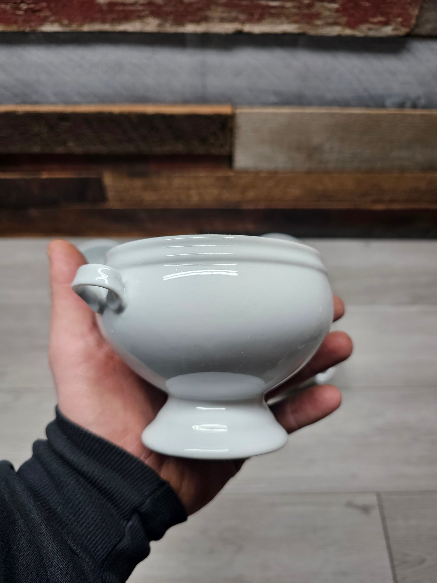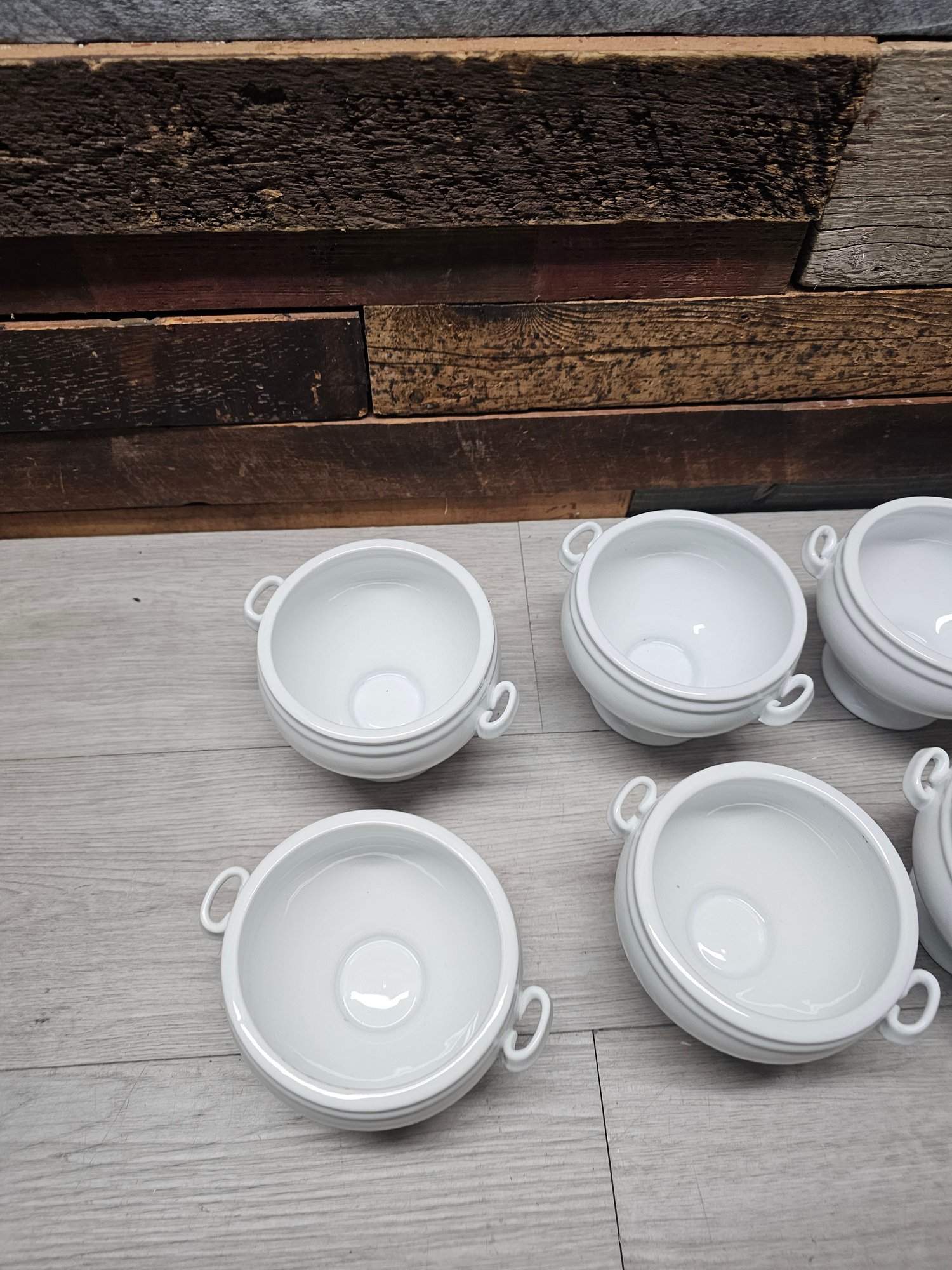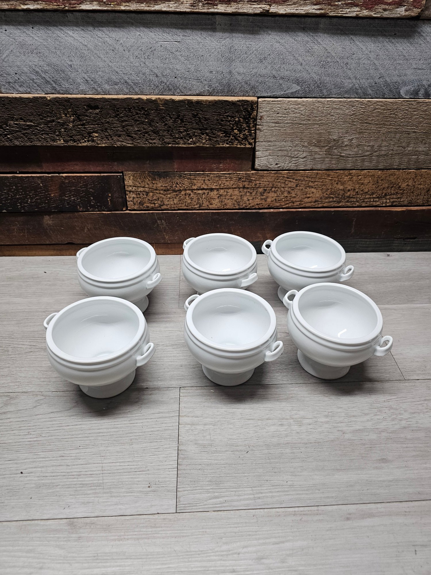Vintage Set Of 6 Crate & Barrel White Porcelain Footed Soup Bowls A3