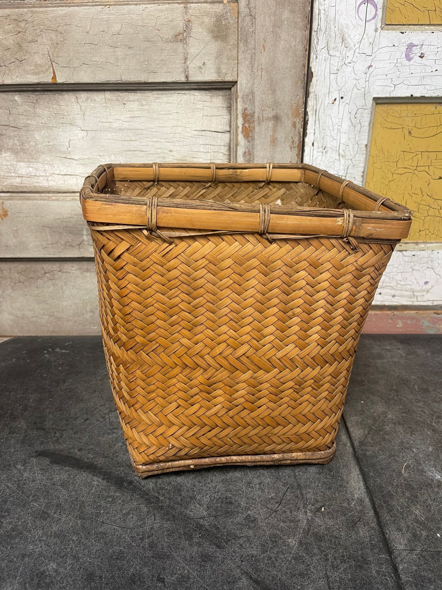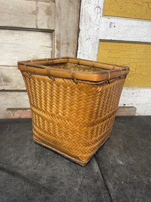 Vintage, Square, Woven Bamboo And Rattan Basket (C1)