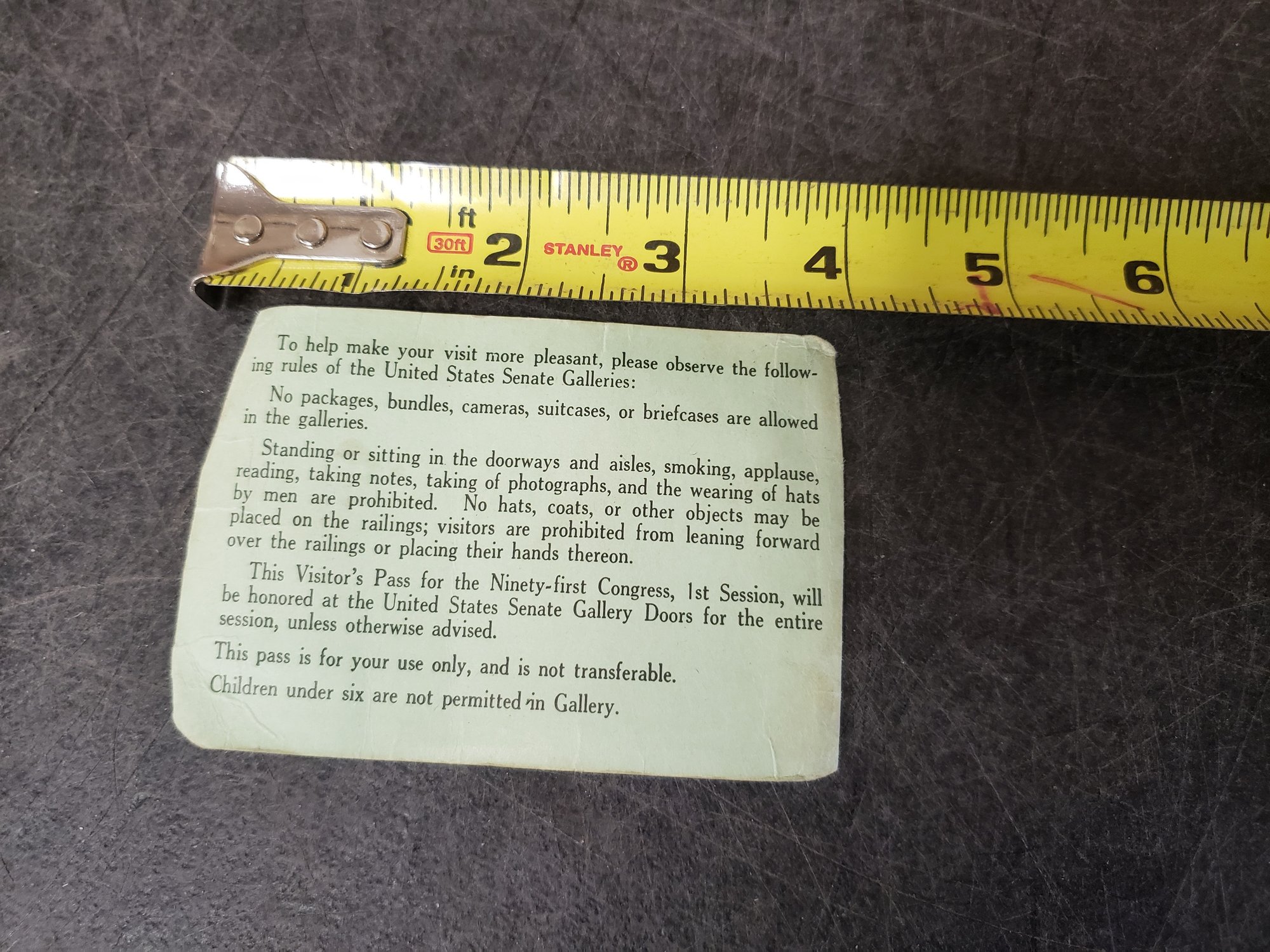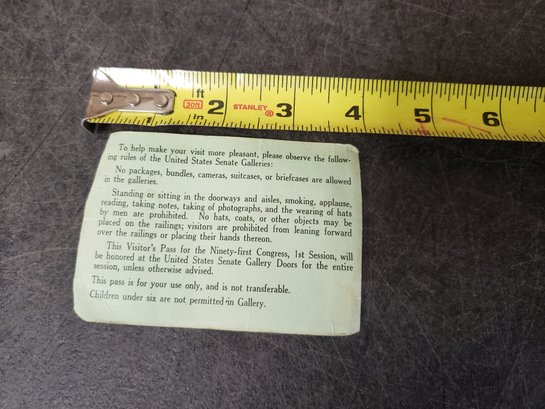Vtg 1969 US Senate Chamber Visitor Gallery Ticket G3