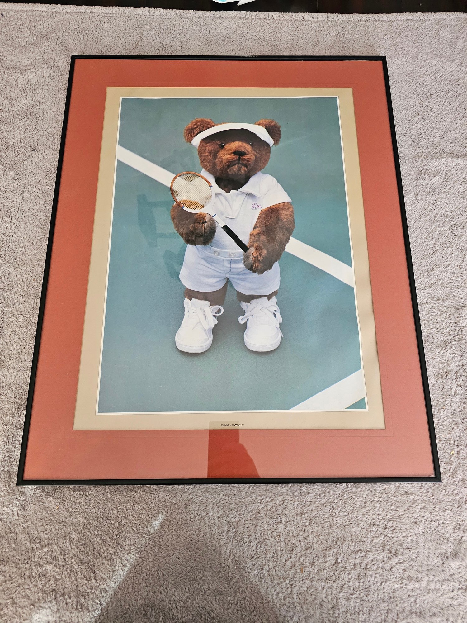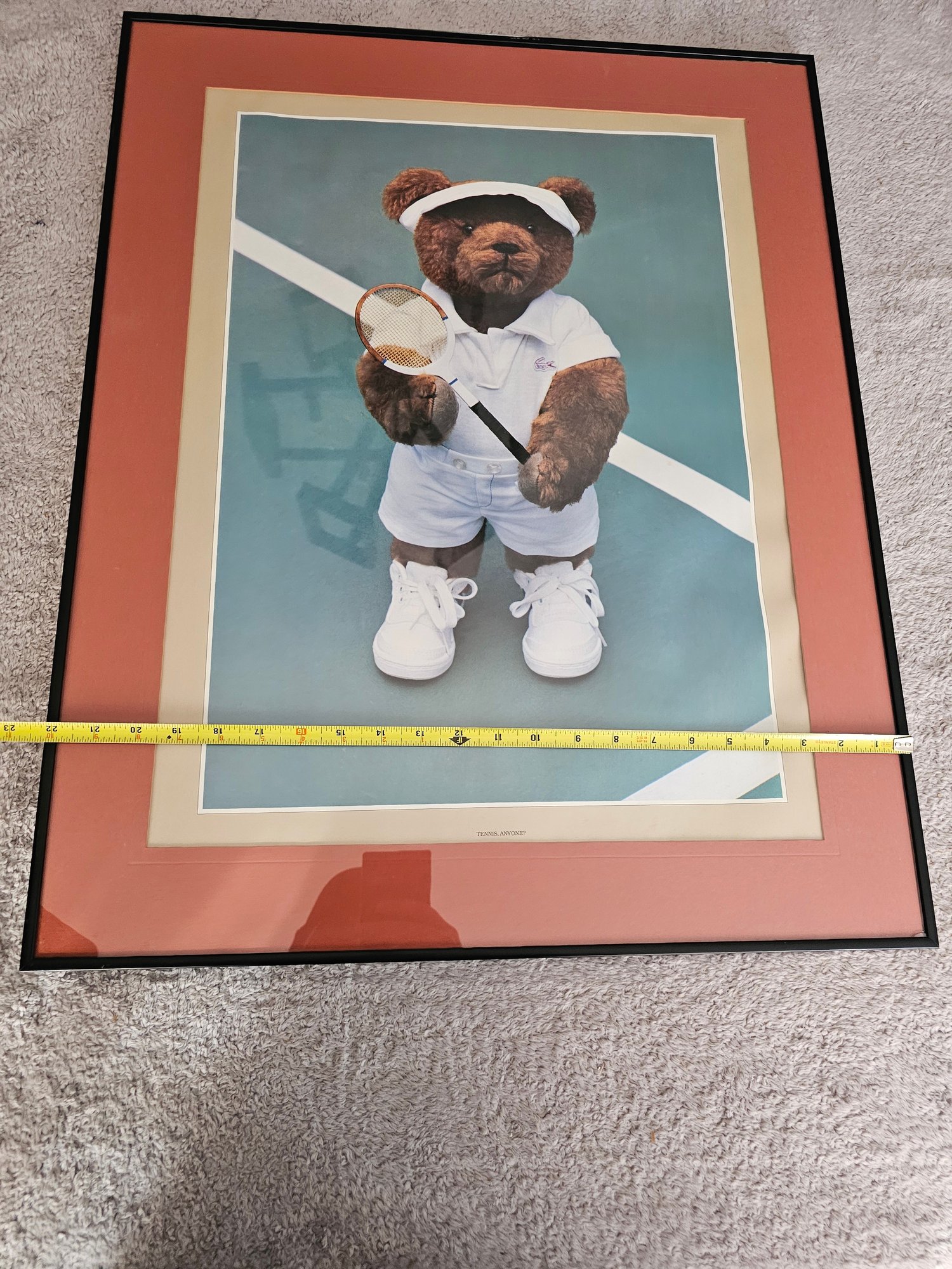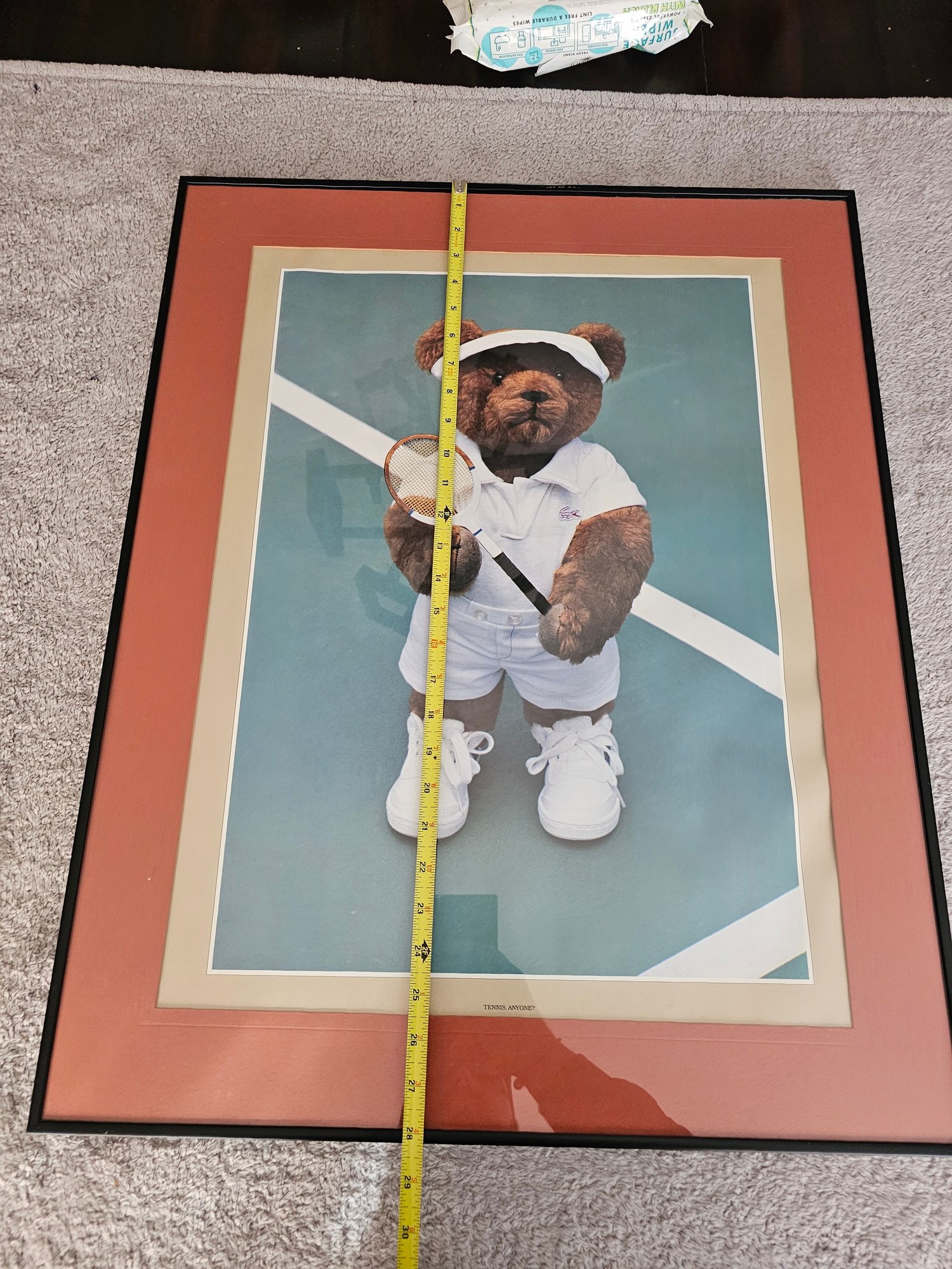 VTG 1983 Rare Framed Tennis Playing Teddy Bear Lacoste Shirt B95