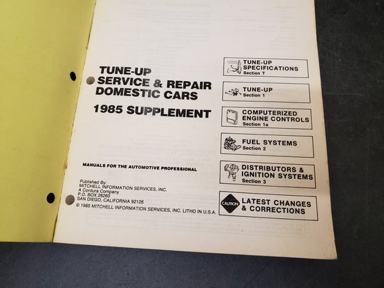 Vtg 1985 Mitchell Tune-up Supplement Service And Repair Book H2