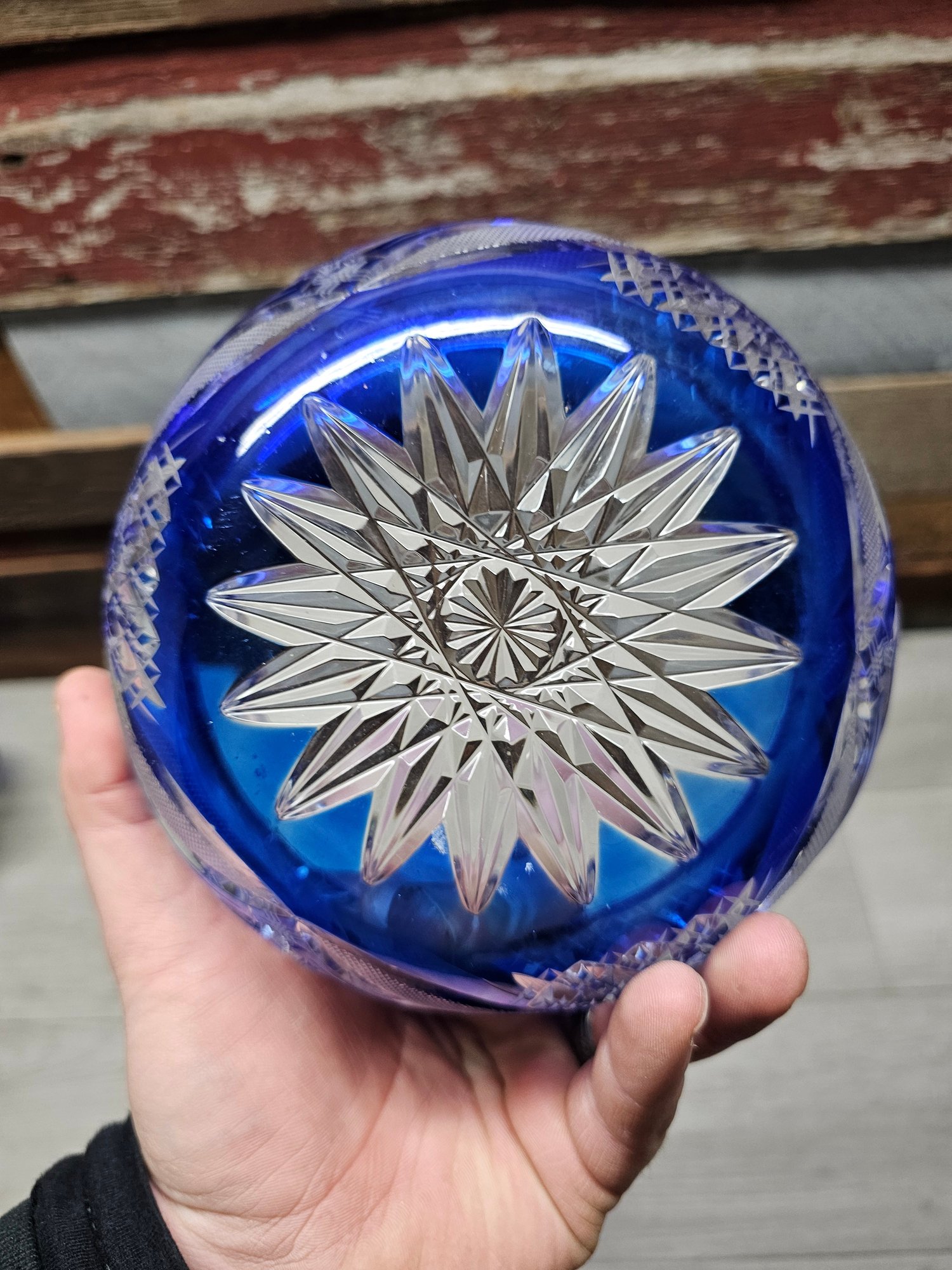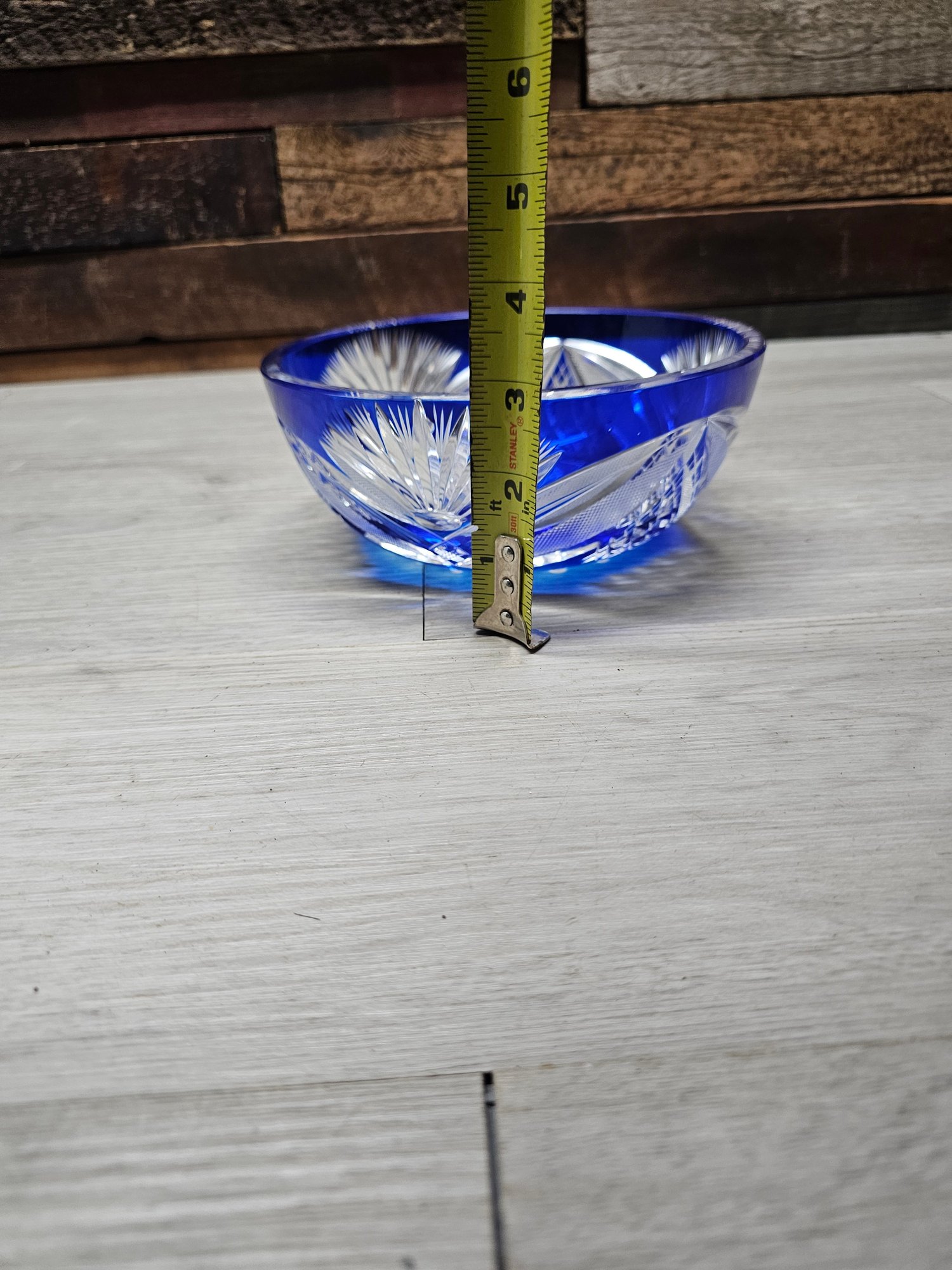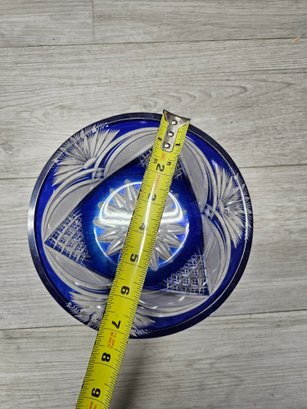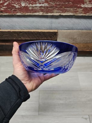 Vtg Cut Blue Glass Bowl A6