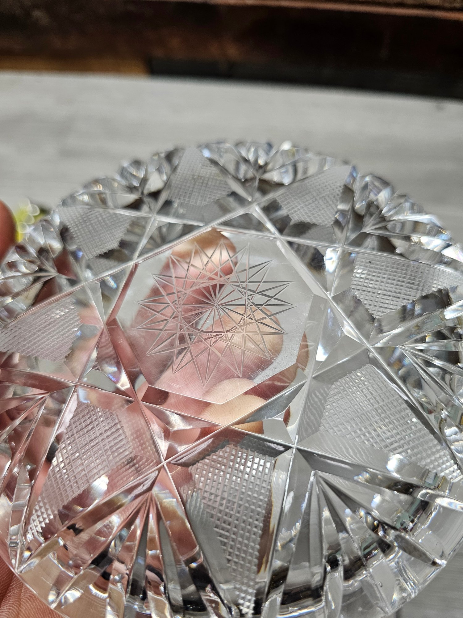 Vtg Cut Glass Crystal Ashtray (Small Chip) A6