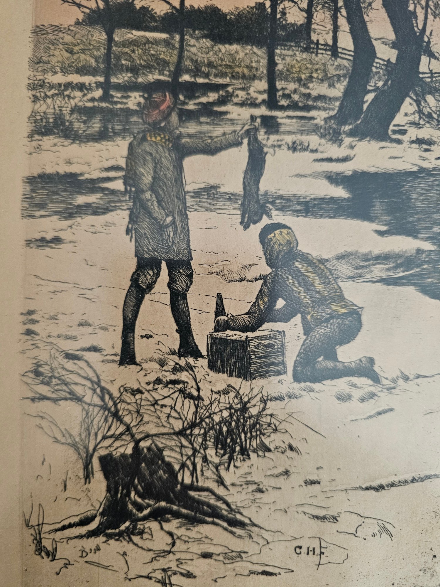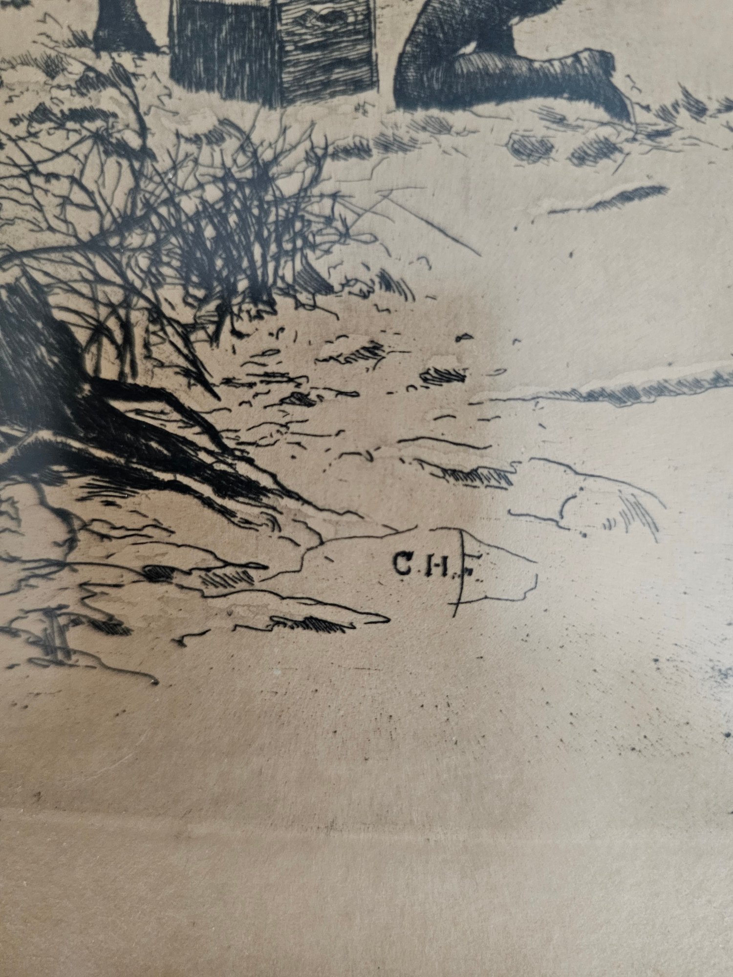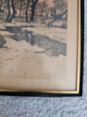 Vtg Framed Initialed Etching? C13