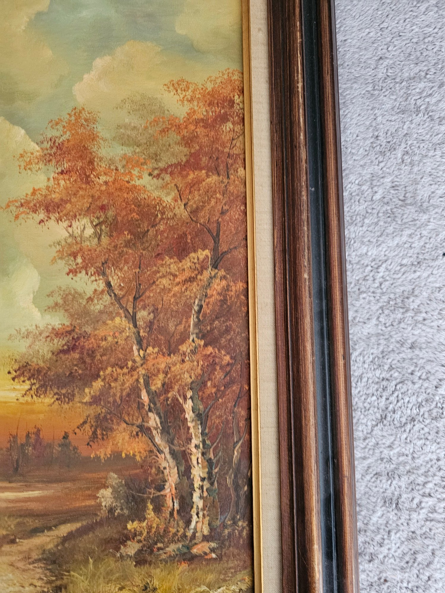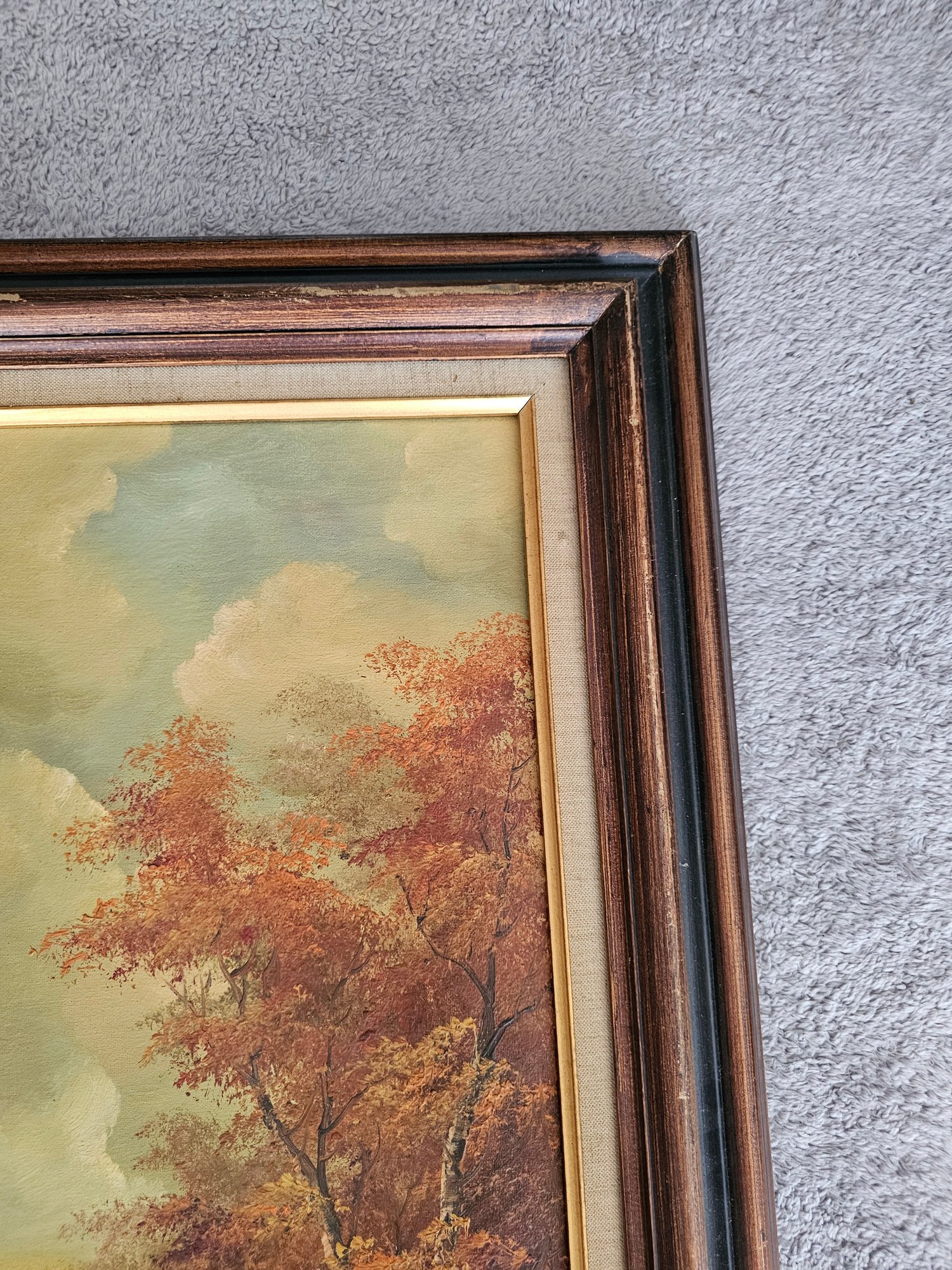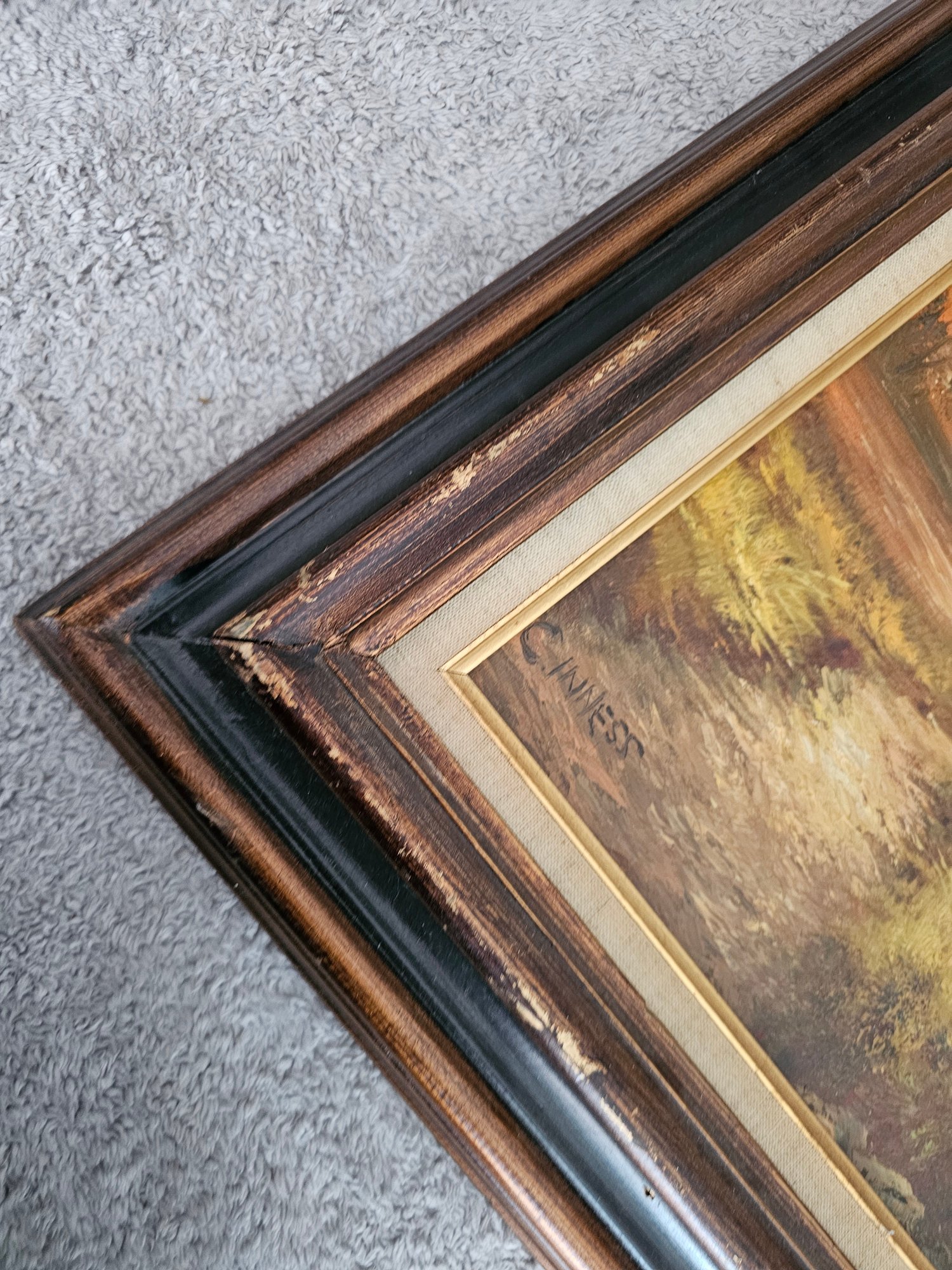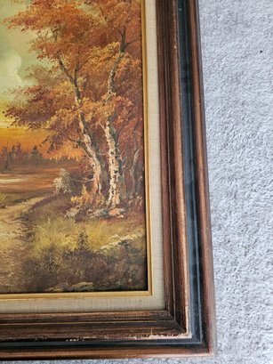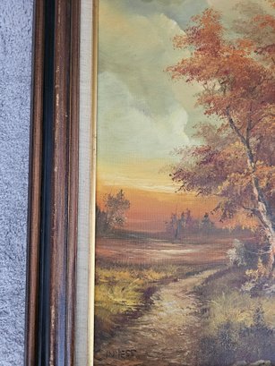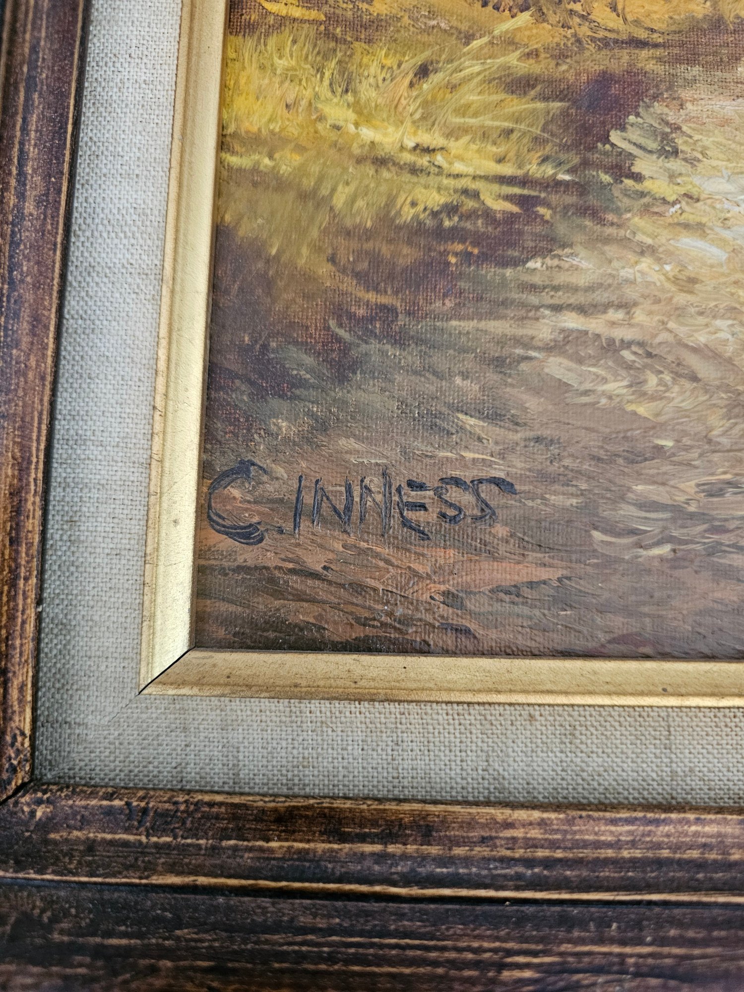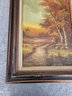 Vtg Framed Signed C .Inness Oil Painting On Canvas Fall Scene Trees B91
