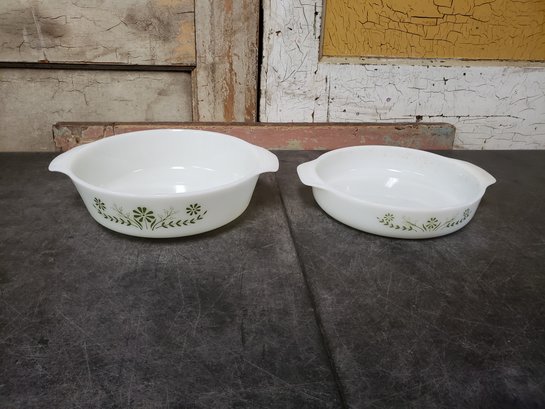 Vtg Glasbake Crazy Daisy Oven-proof Microwave Safe Round Casserole Dish Lot Of 2 H2