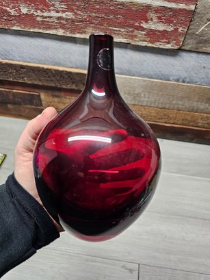 Vtg Ikea Red Art Glass Vase A6