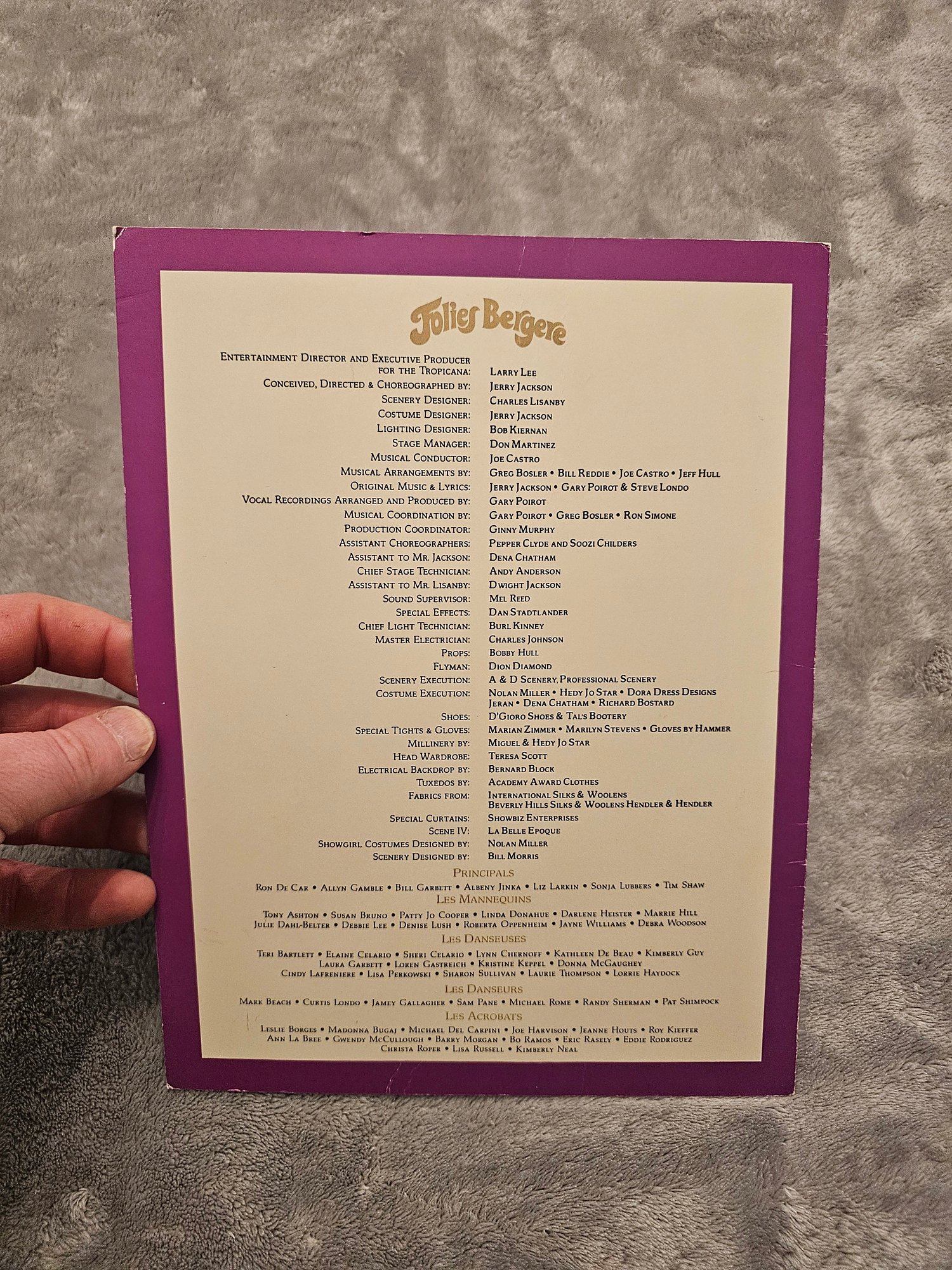 VTG LEROY NEIMAN "FOLIES BERGERE - TROPICANA," Program (8.5" X 11") (c) 1989 E70