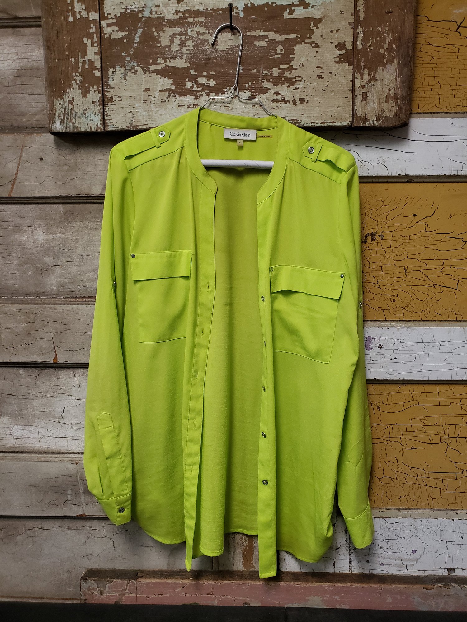 Vtg M Calvin Klein Green Blouse CR B