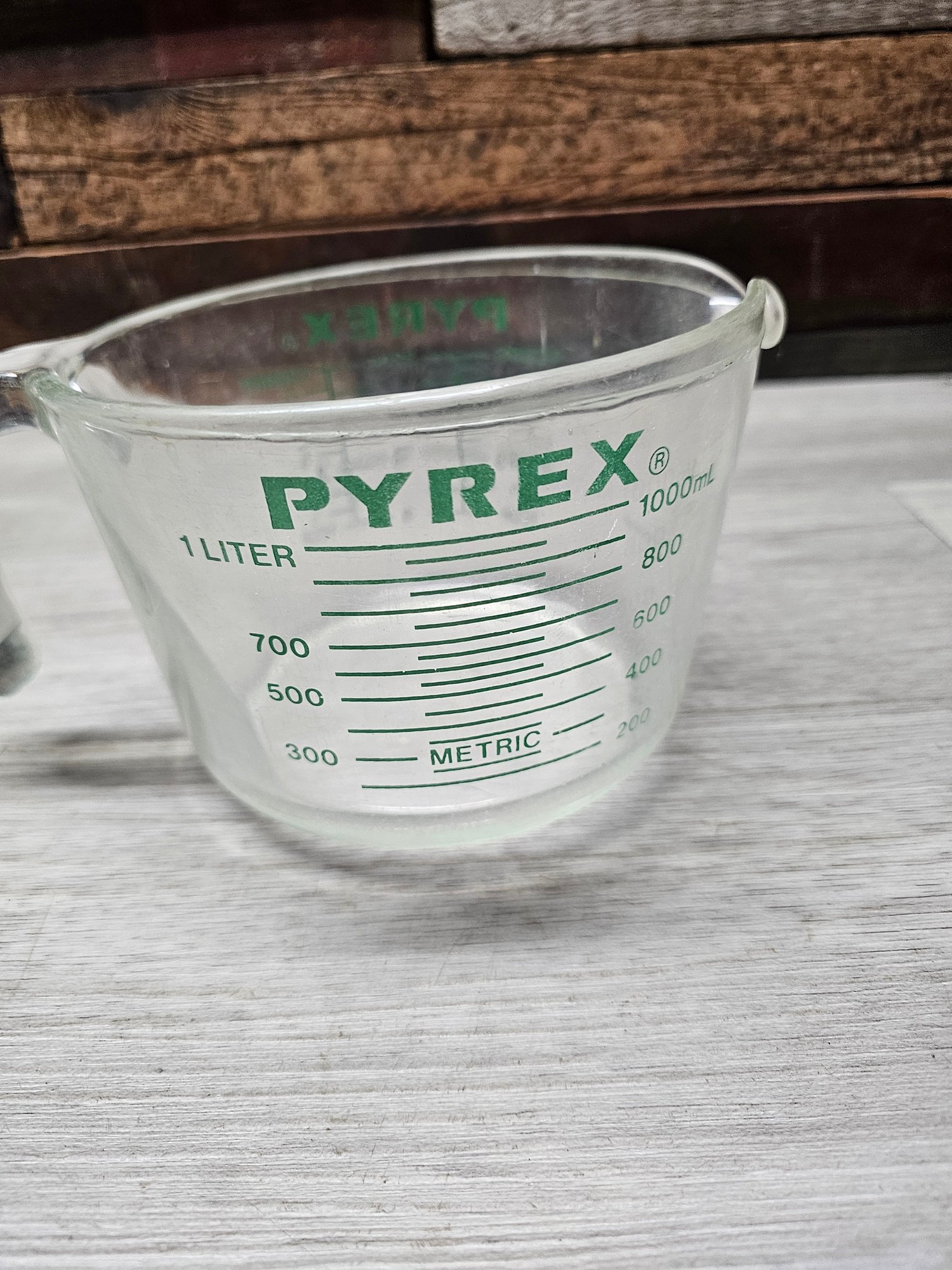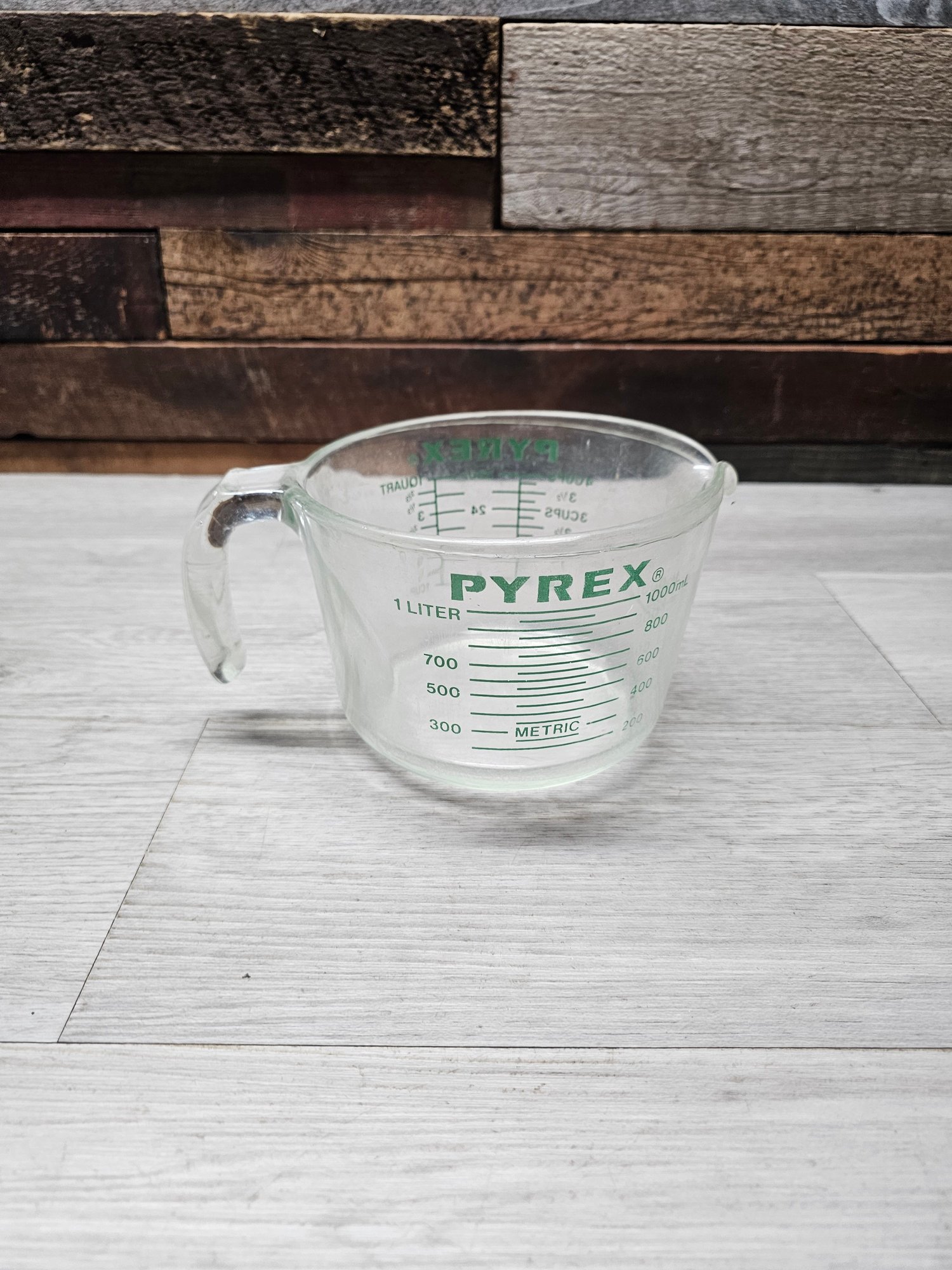 Vtg Rare Green Letters Pyrex 1 Liter Measure Cup A6