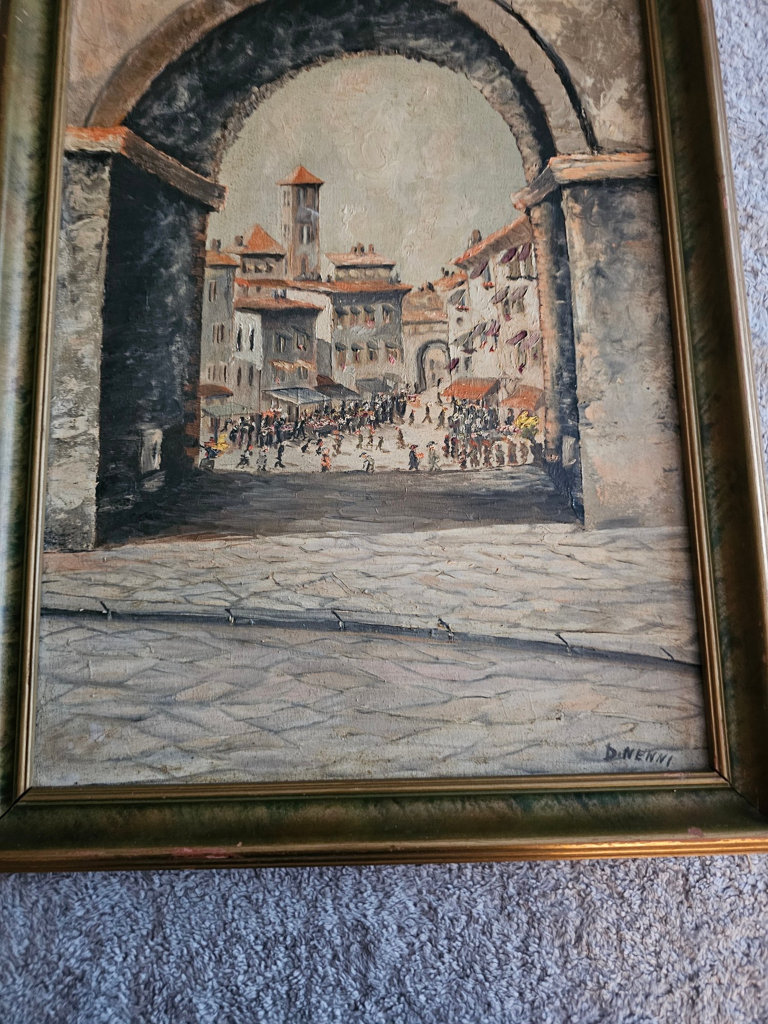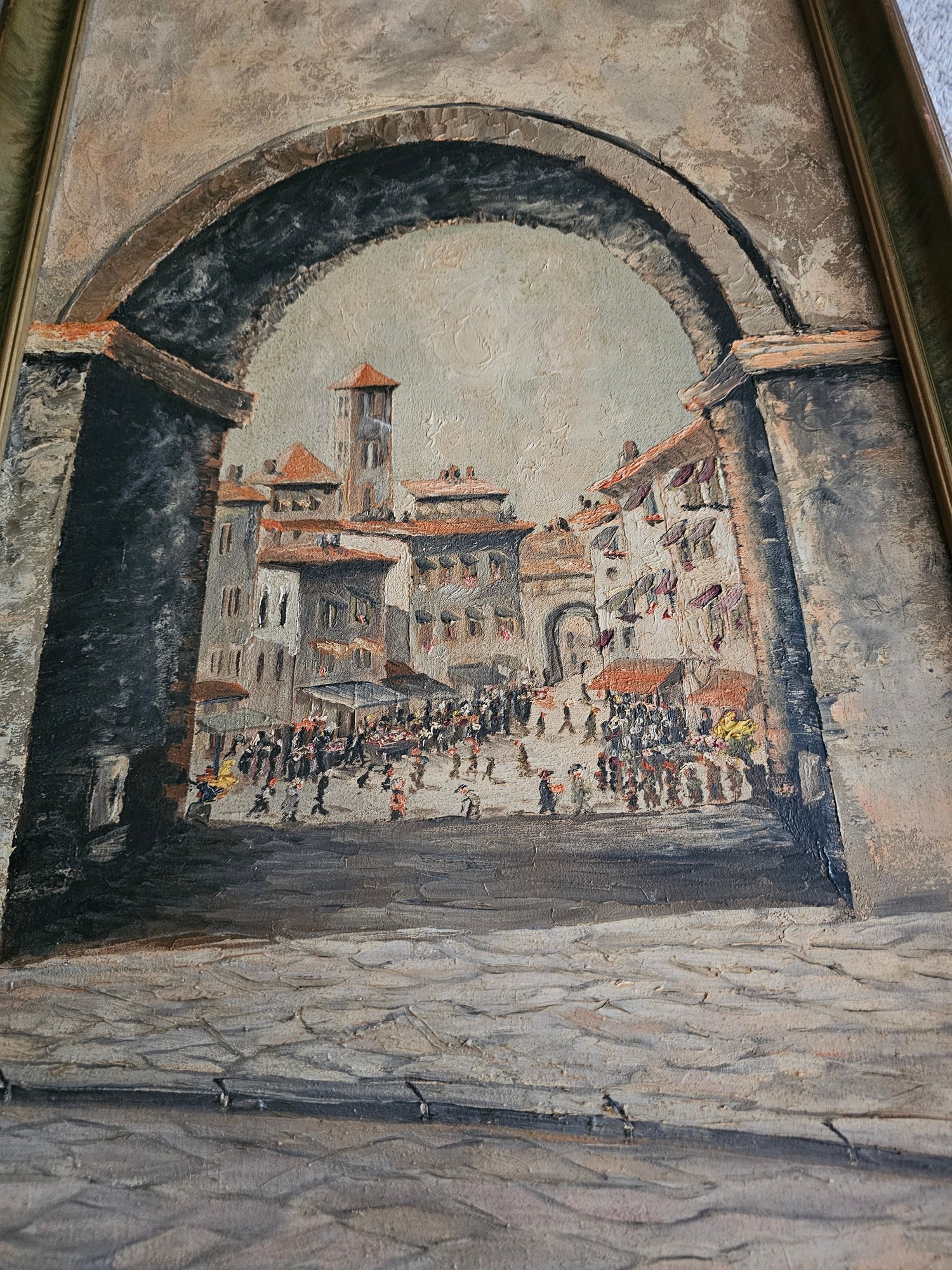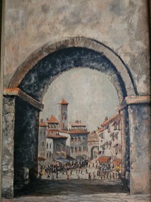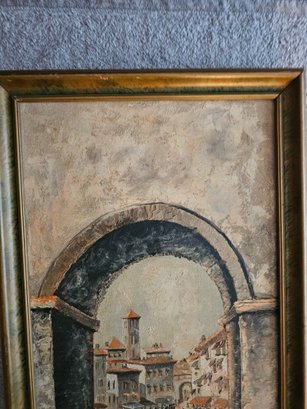 Vtg Signed Oil Painting Archway Italy A19