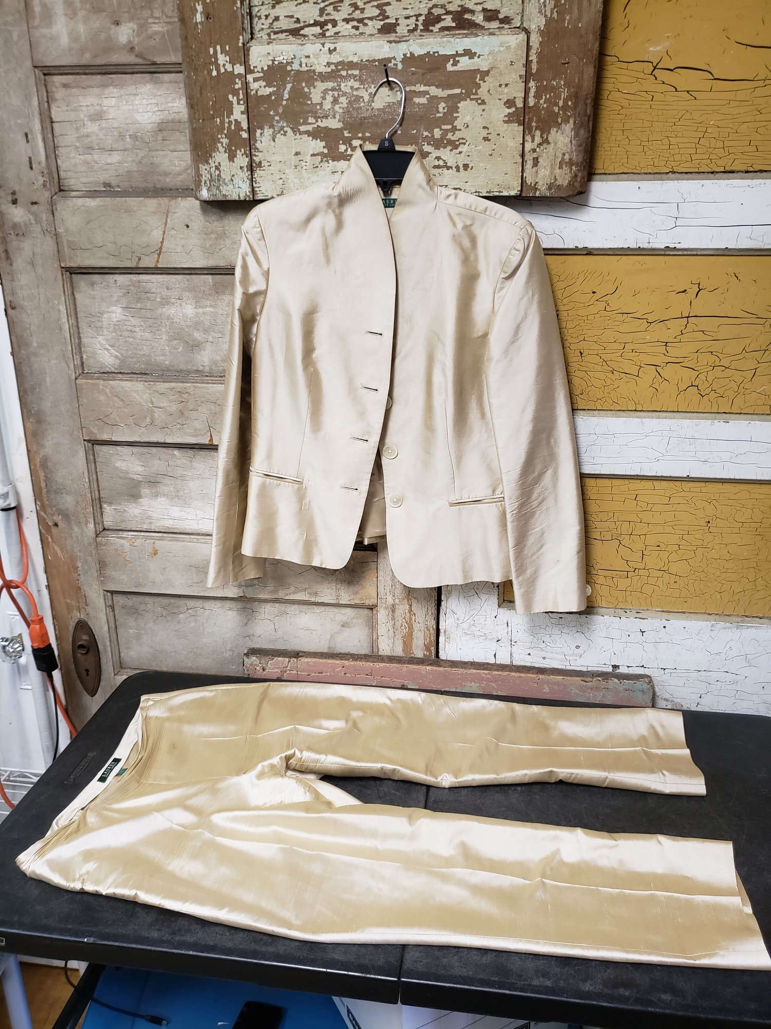 Vtg Size 12 Ralph Lauren Tan Silk Pant Suit CR B