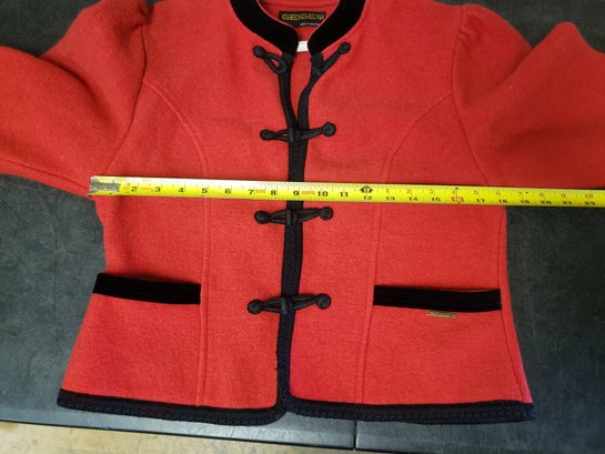 Vtg Size 40 Geiger Red Wool Blazer Bolero CR B