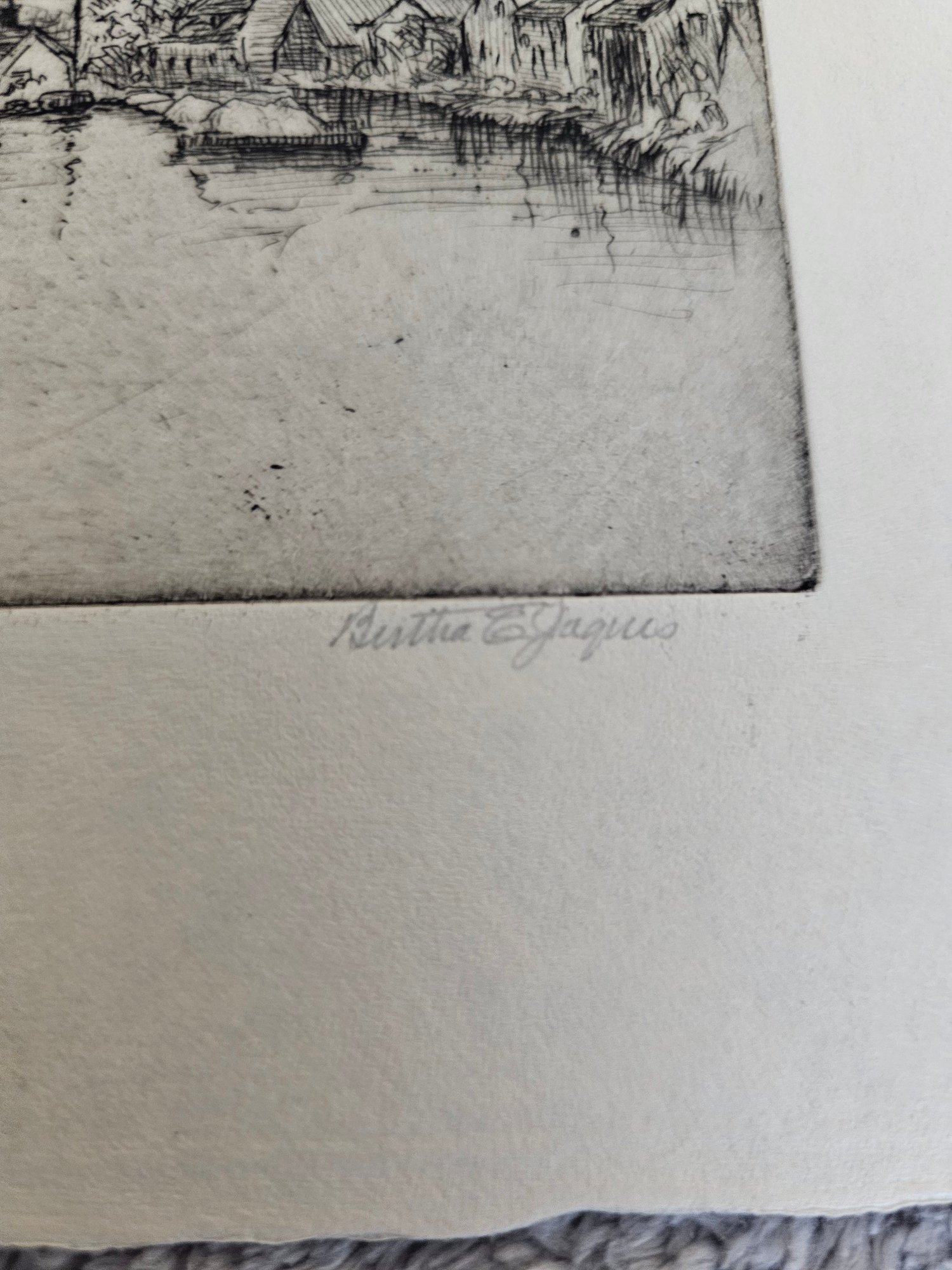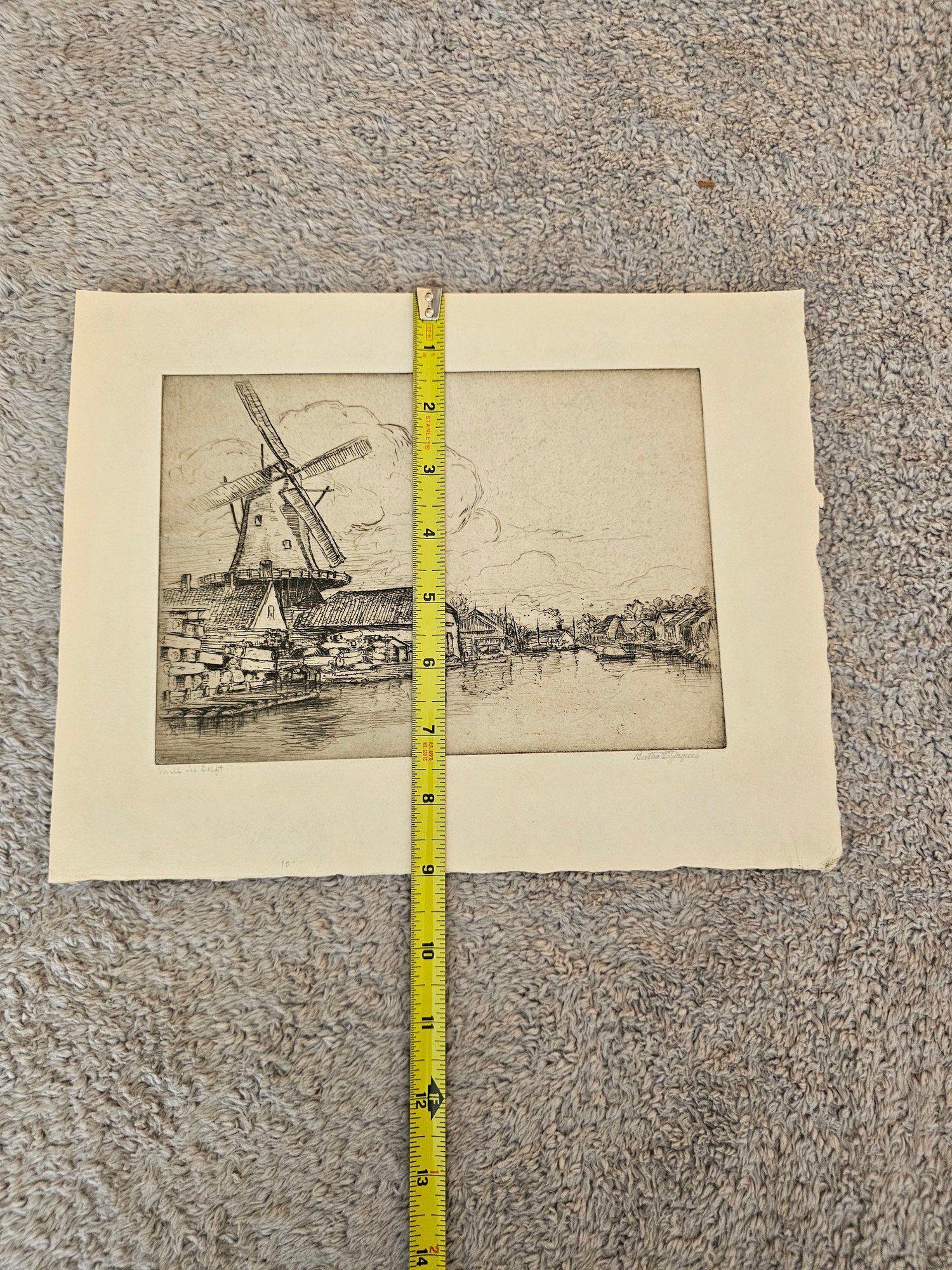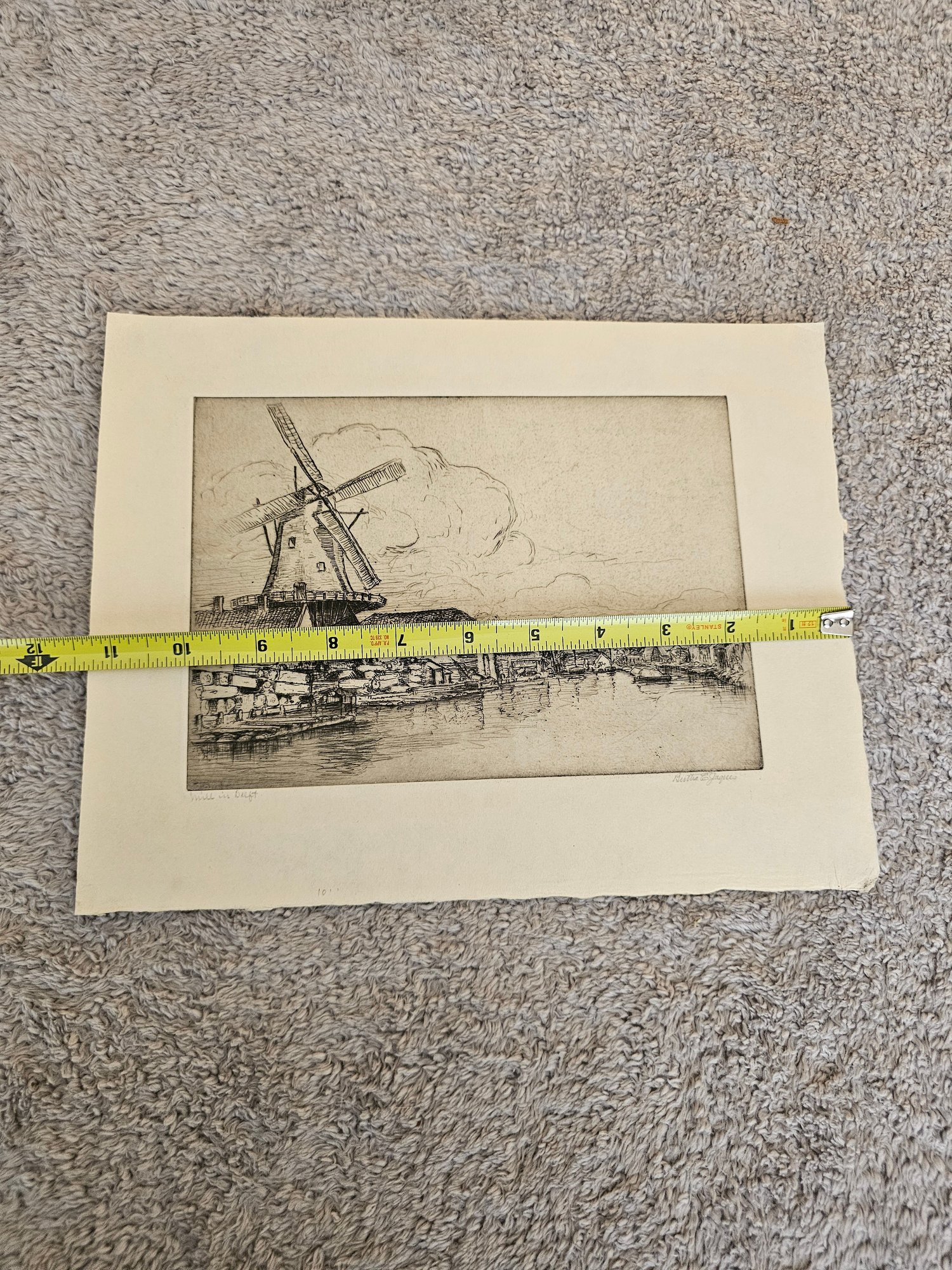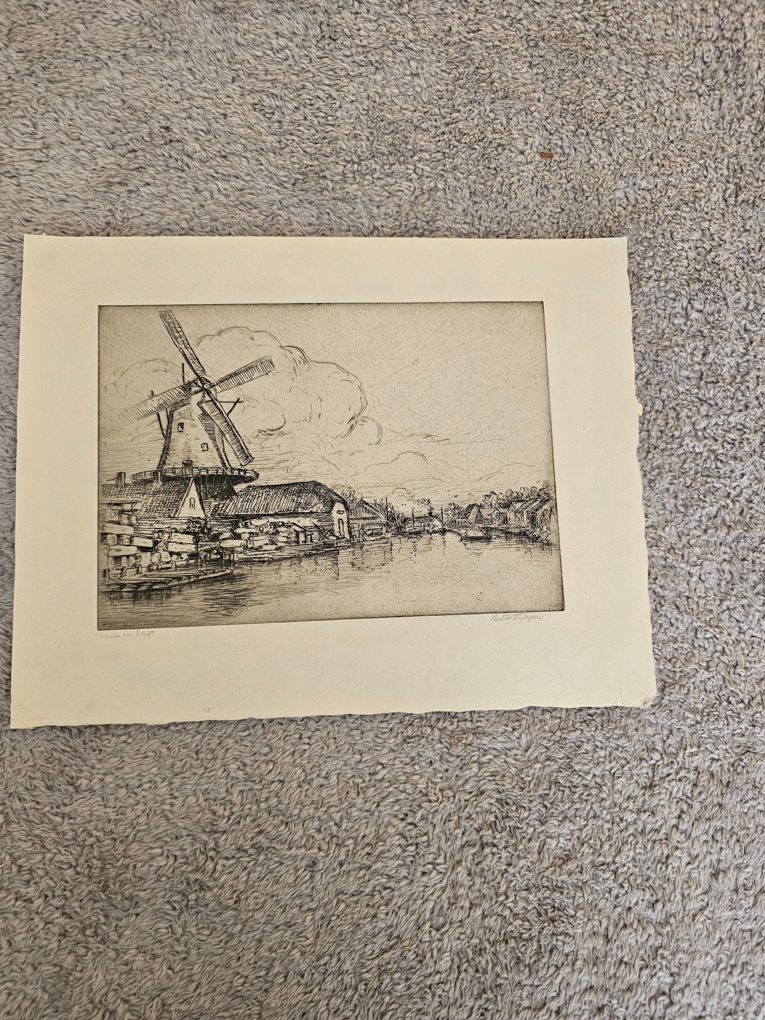 Vtg Windmill Etching Signed Bertha E Jacques D96