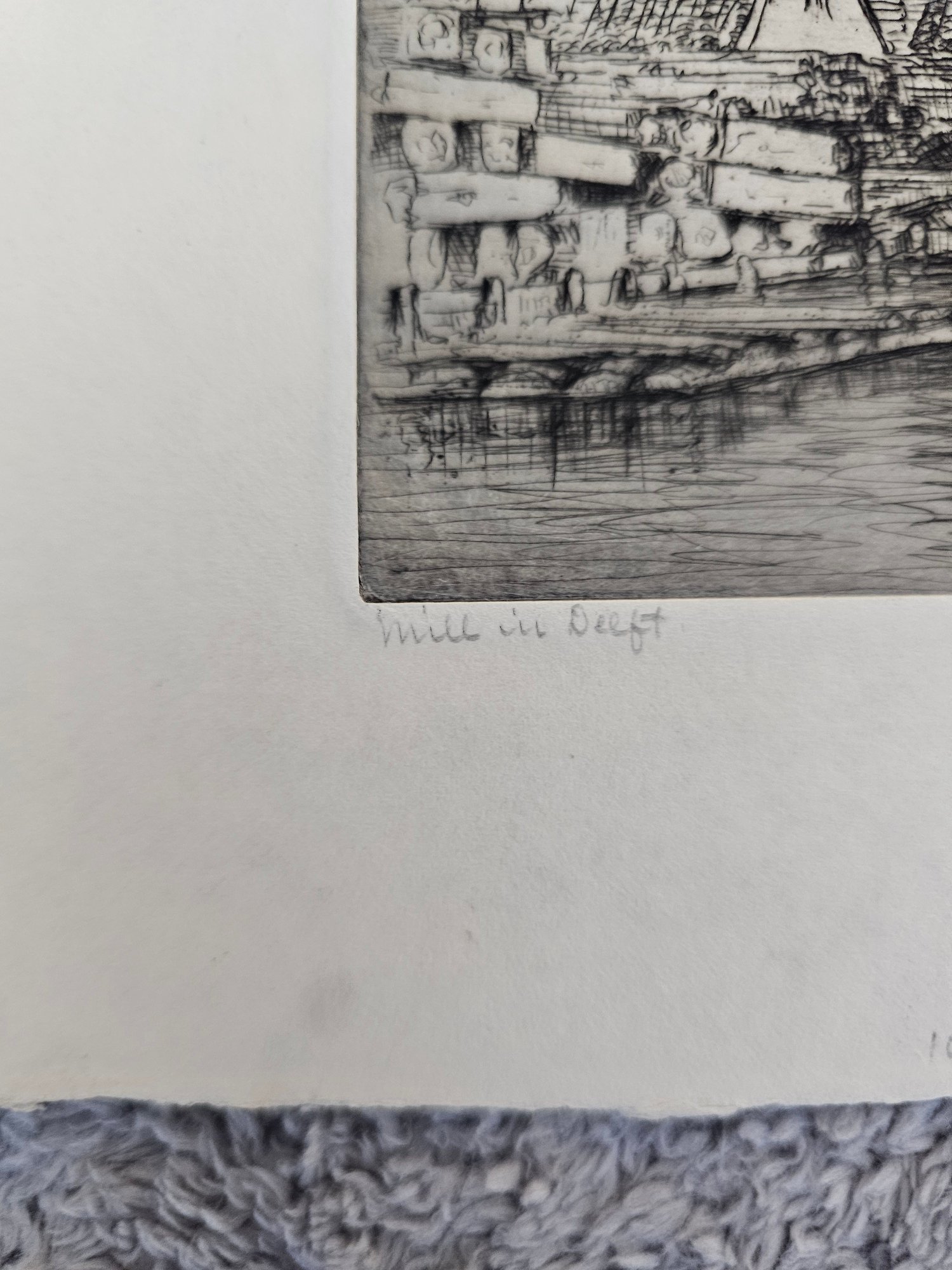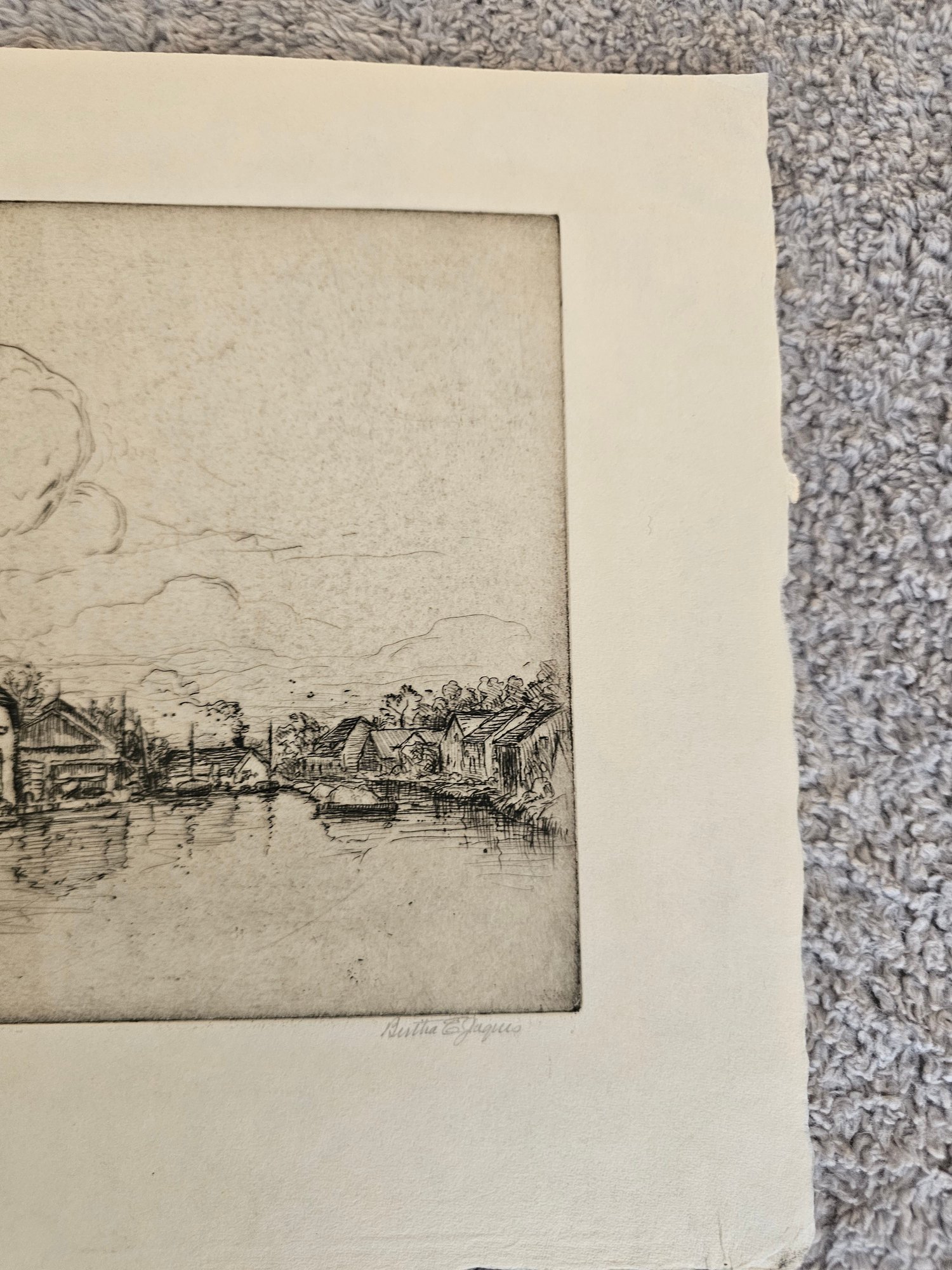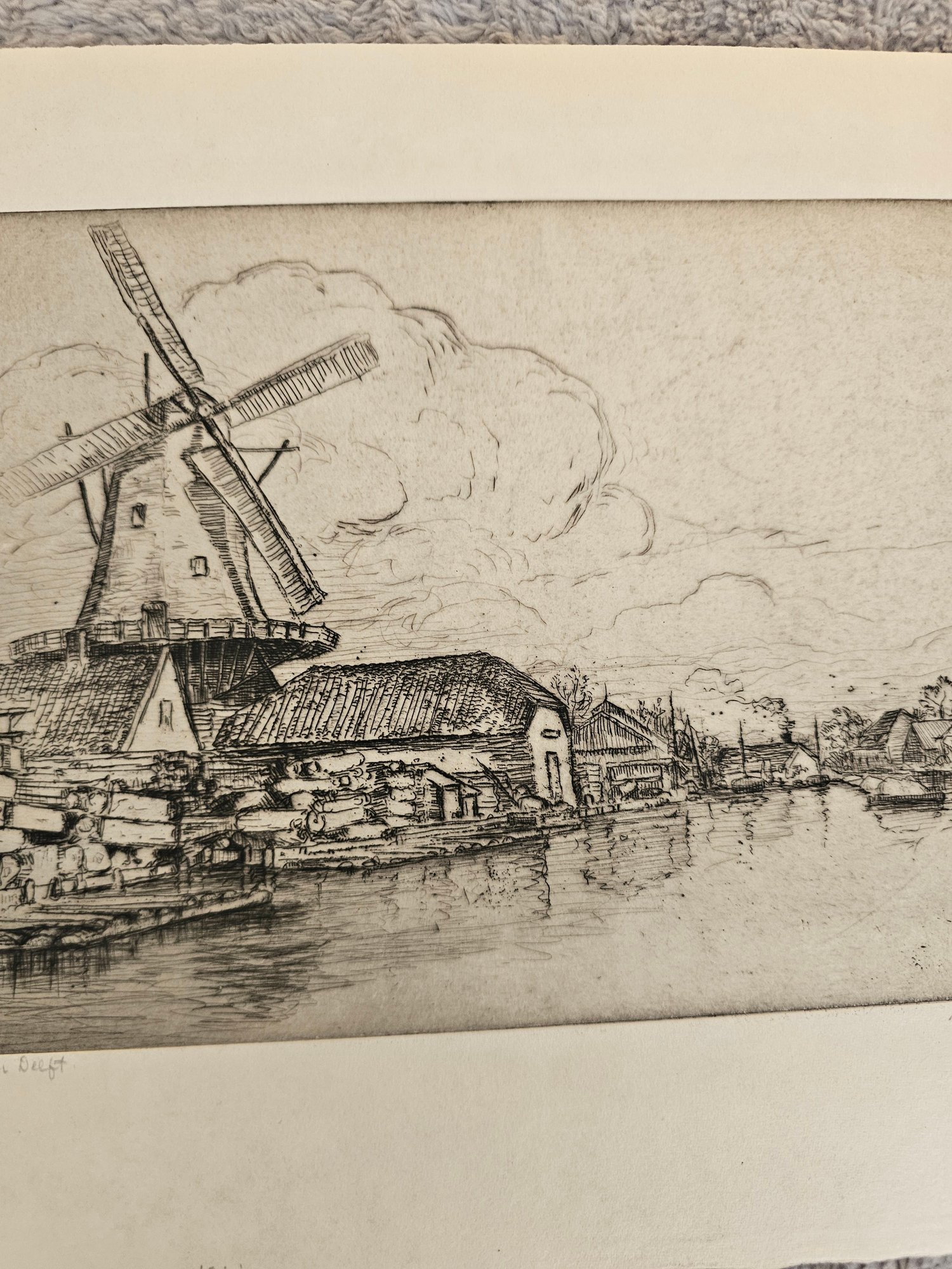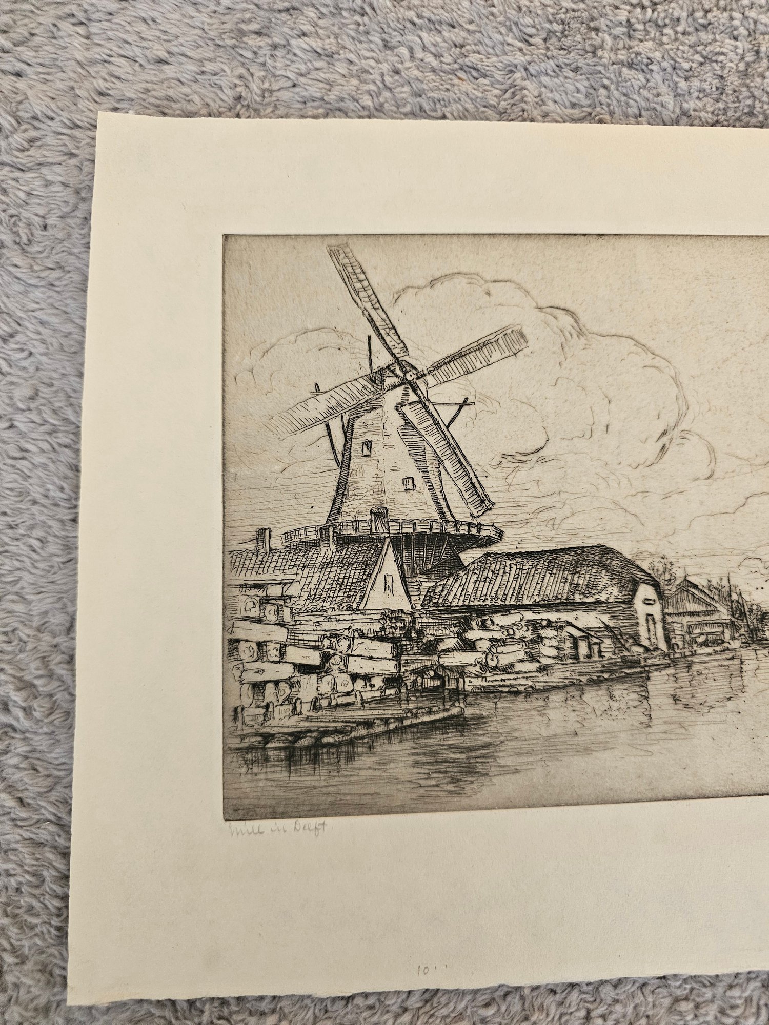 Vtg Windmill Etching Signed Bertha E Jacques D96