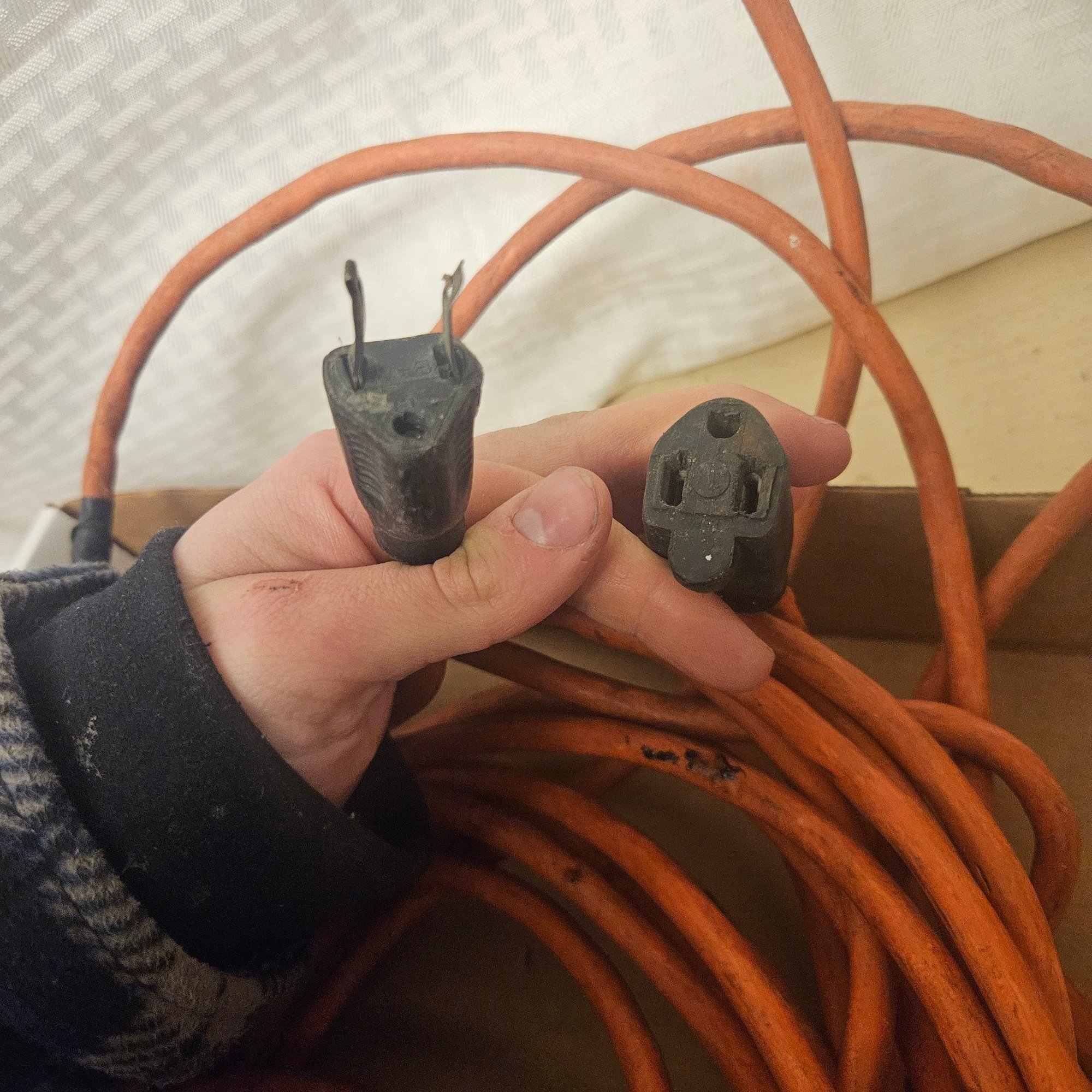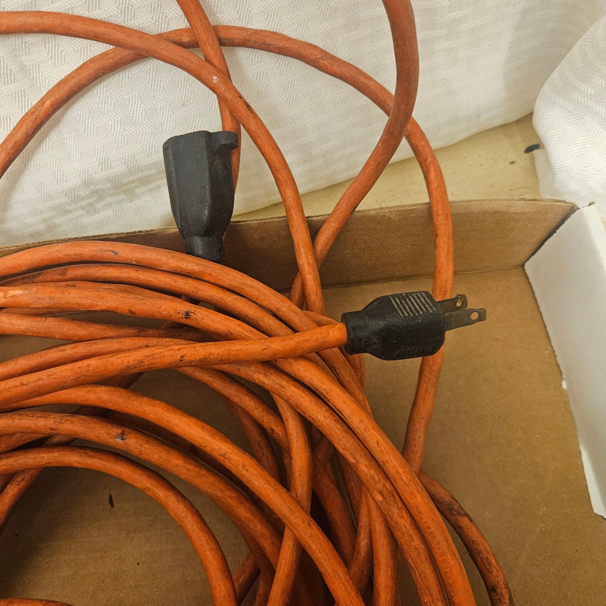 This lot includes two bright orange extension cords, perfect for home, workshop, or outdoor use. Offering convenience, flexibility, and visibility, these cords are ideal for powering tools, electronics, or appliances safely and efficiently. A practical addition to any household or workspace.