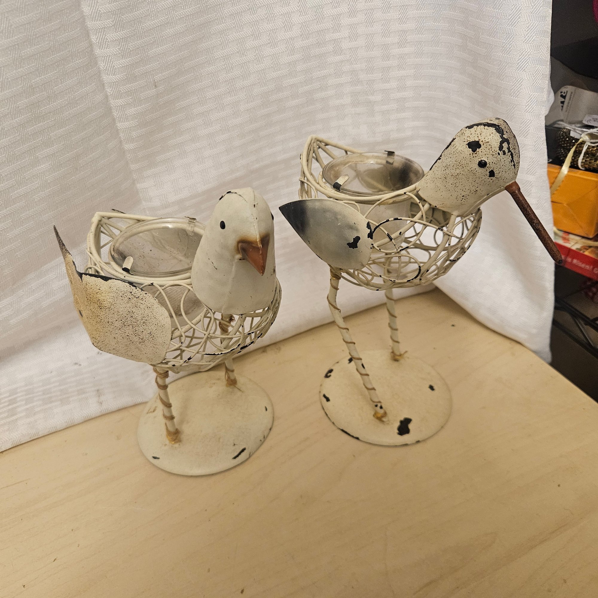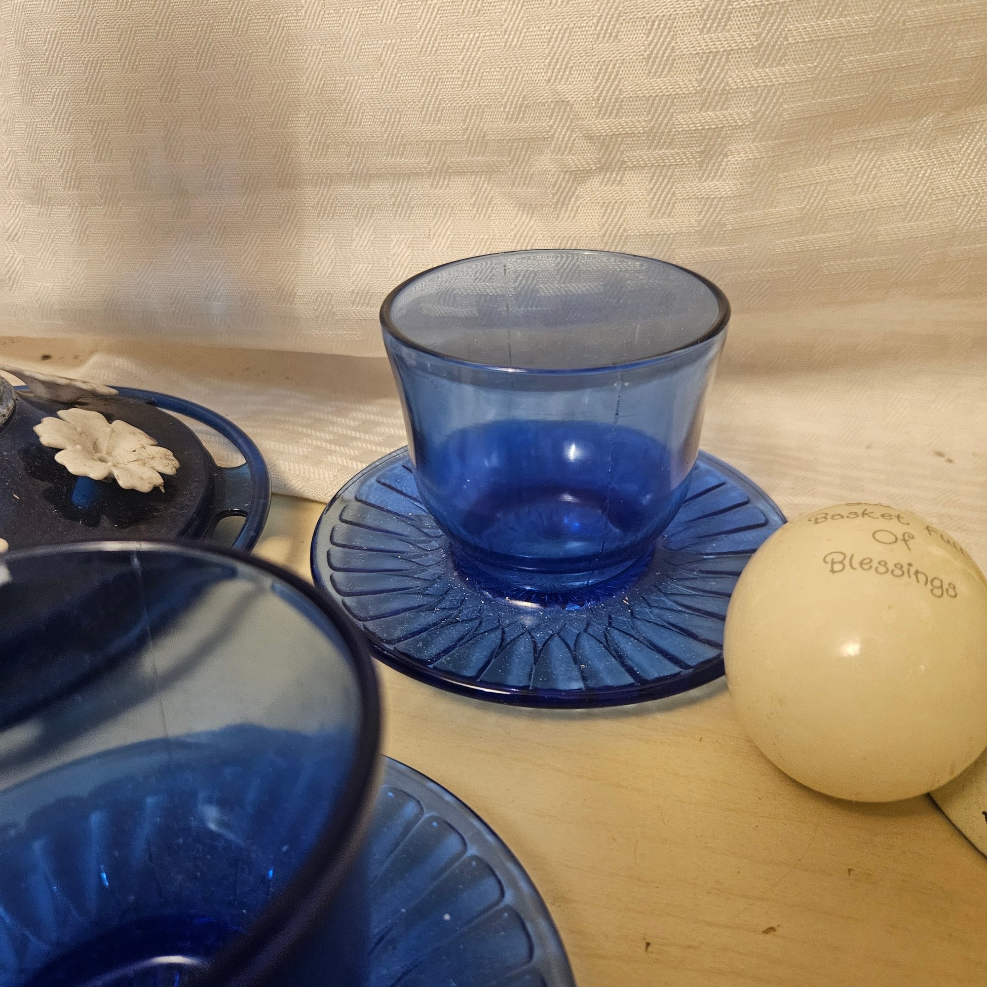 This charming and cohesive lot features two blue glass cups with attached saucers, a matching blue glass bird feeder, one small decorative stone egg, and two metal bird decorations with built-in candle holders. The bird and nature-inspired theme, paired with rich blue glass accents, creates a delightful blend of elegance and whimsy. Perfect for indoor décor or outdoor enjoyment, this collection adds a peaceful, artistic touch to any home, garden, or patio display.