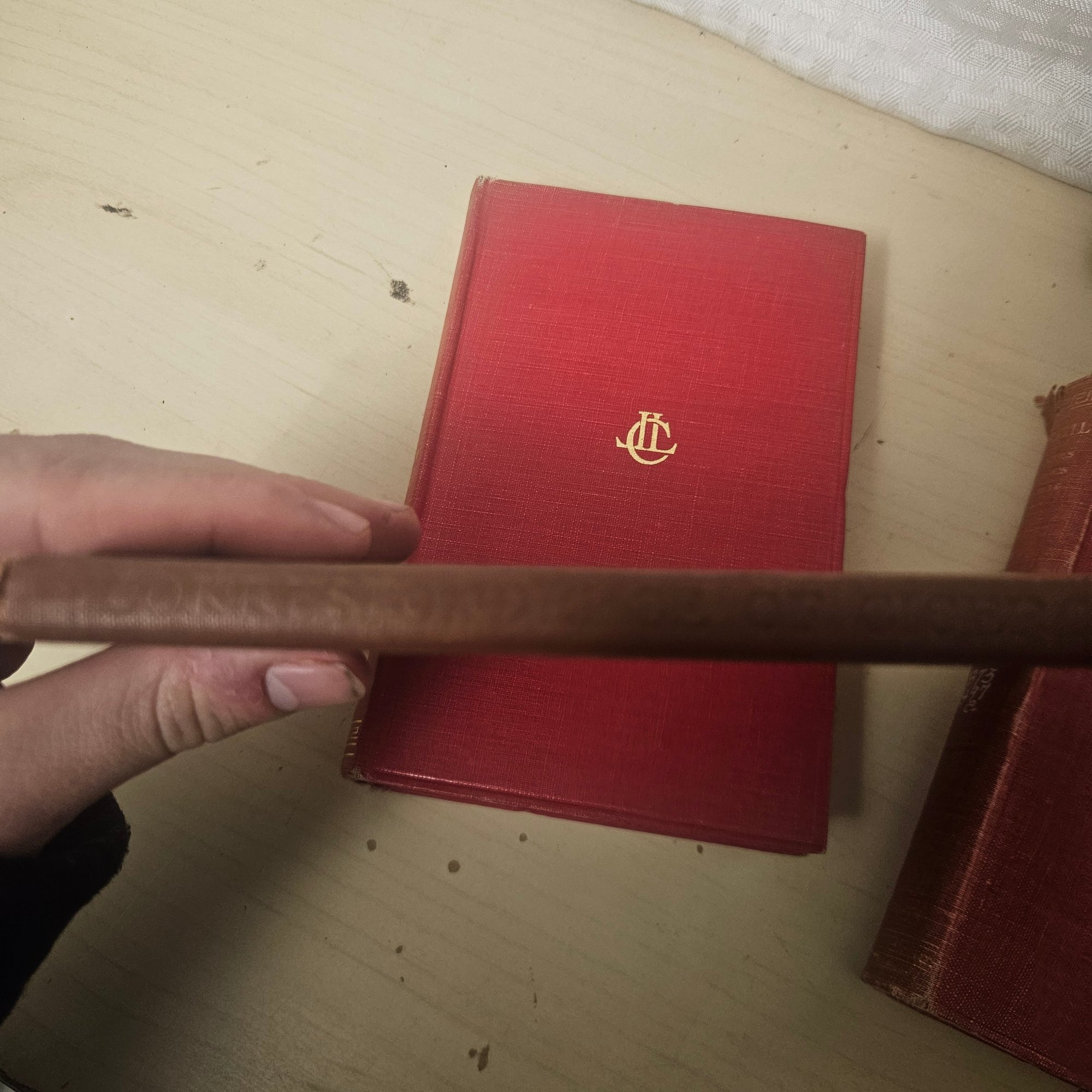 This lot features five collectible red books, including works by Cicero and additional classic titles. With their vibrant covers and historical and literary significance, these books are perfect for collectors, scholars, or anyone looking to enhance a home library with vintage and intellectually rich volumes. A charming and meaningful addition to any collection of classic literature.