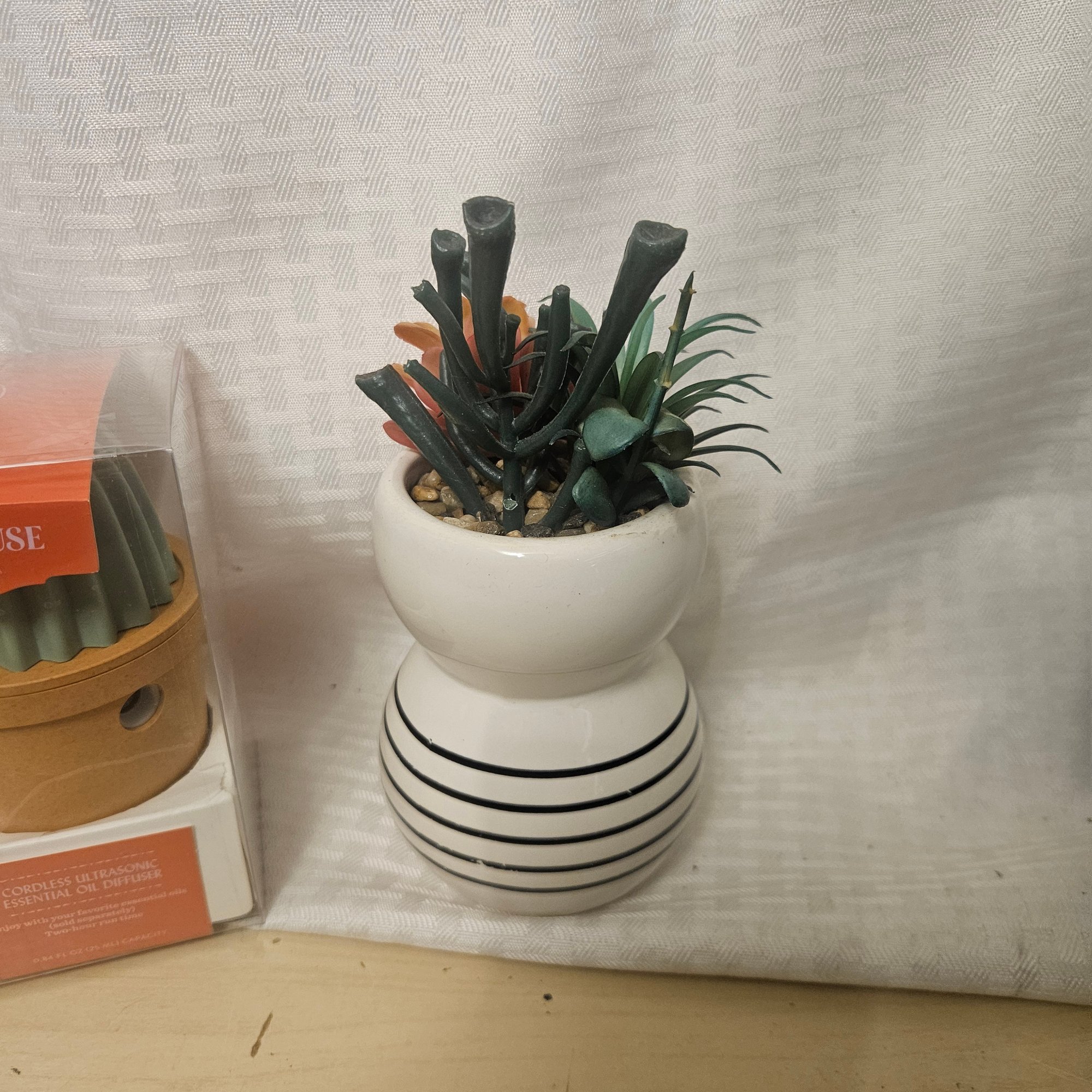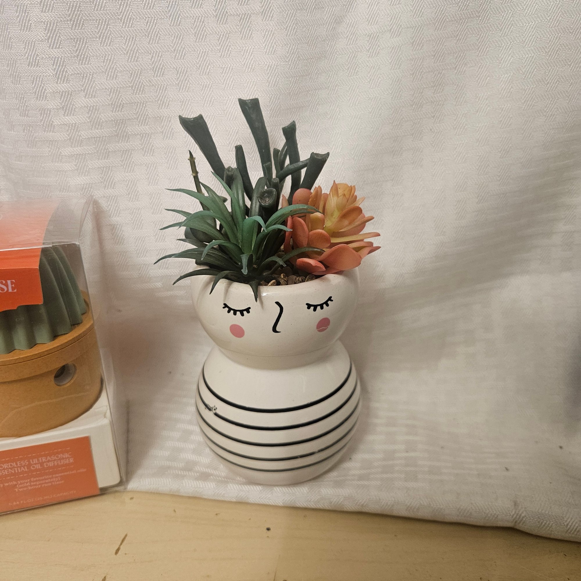 This charming décor lot includes a porcelain lady planter pot with an artificial plant, an Opalhouse cactus decoration, a coral décor piece, and a basket. Perfect for adding character and texture to shelves, tables, or entryways, this assortment blends modern style with natural-inspired accents for a warm and inviting home display.