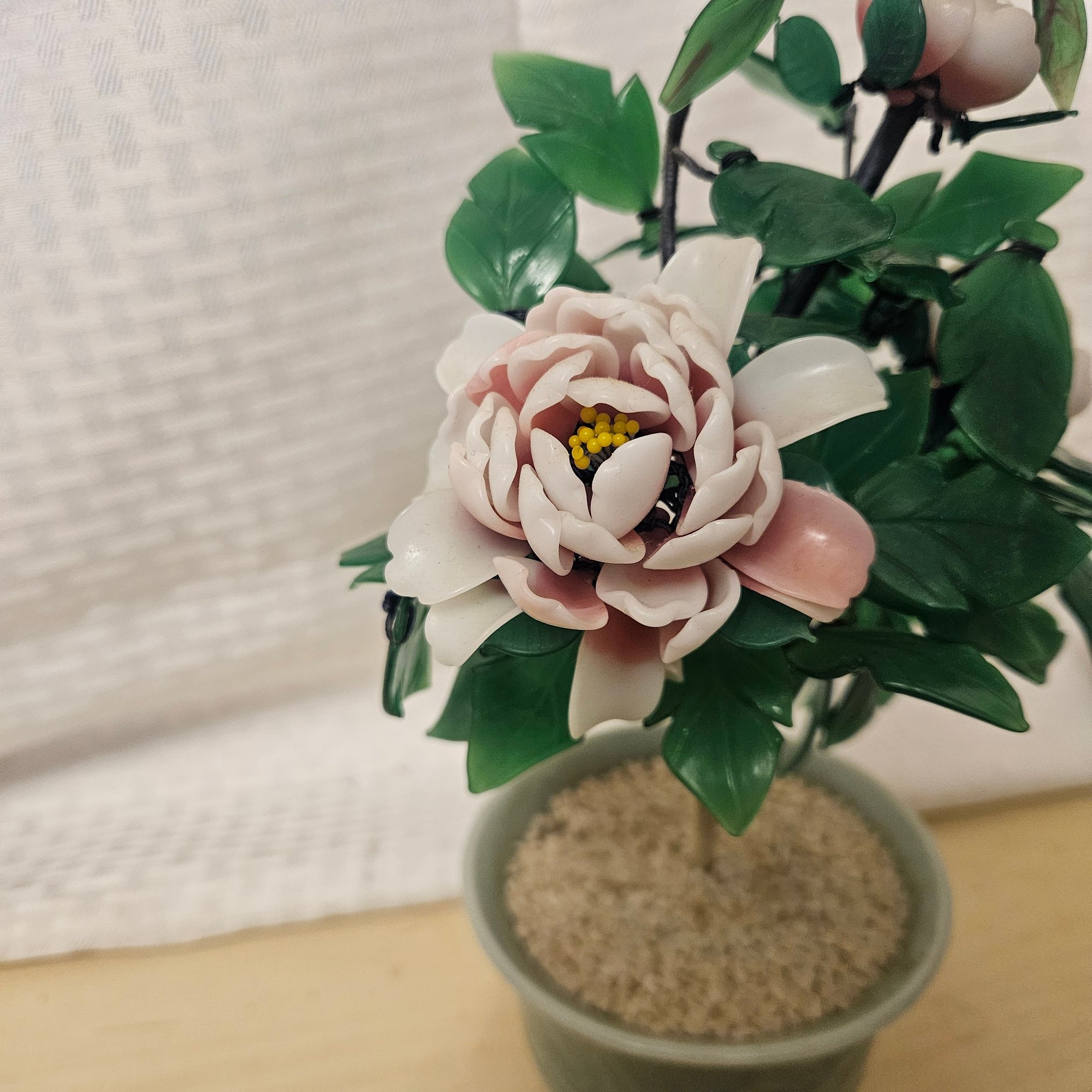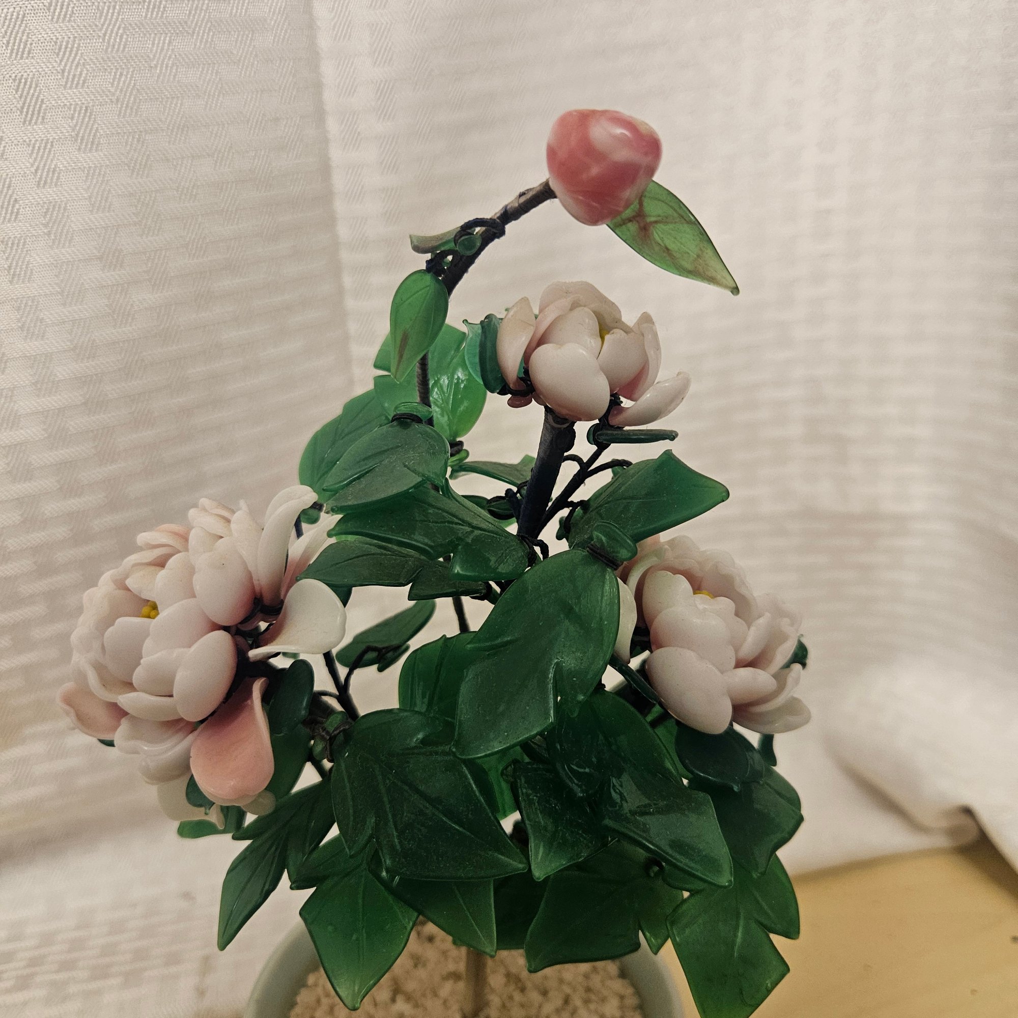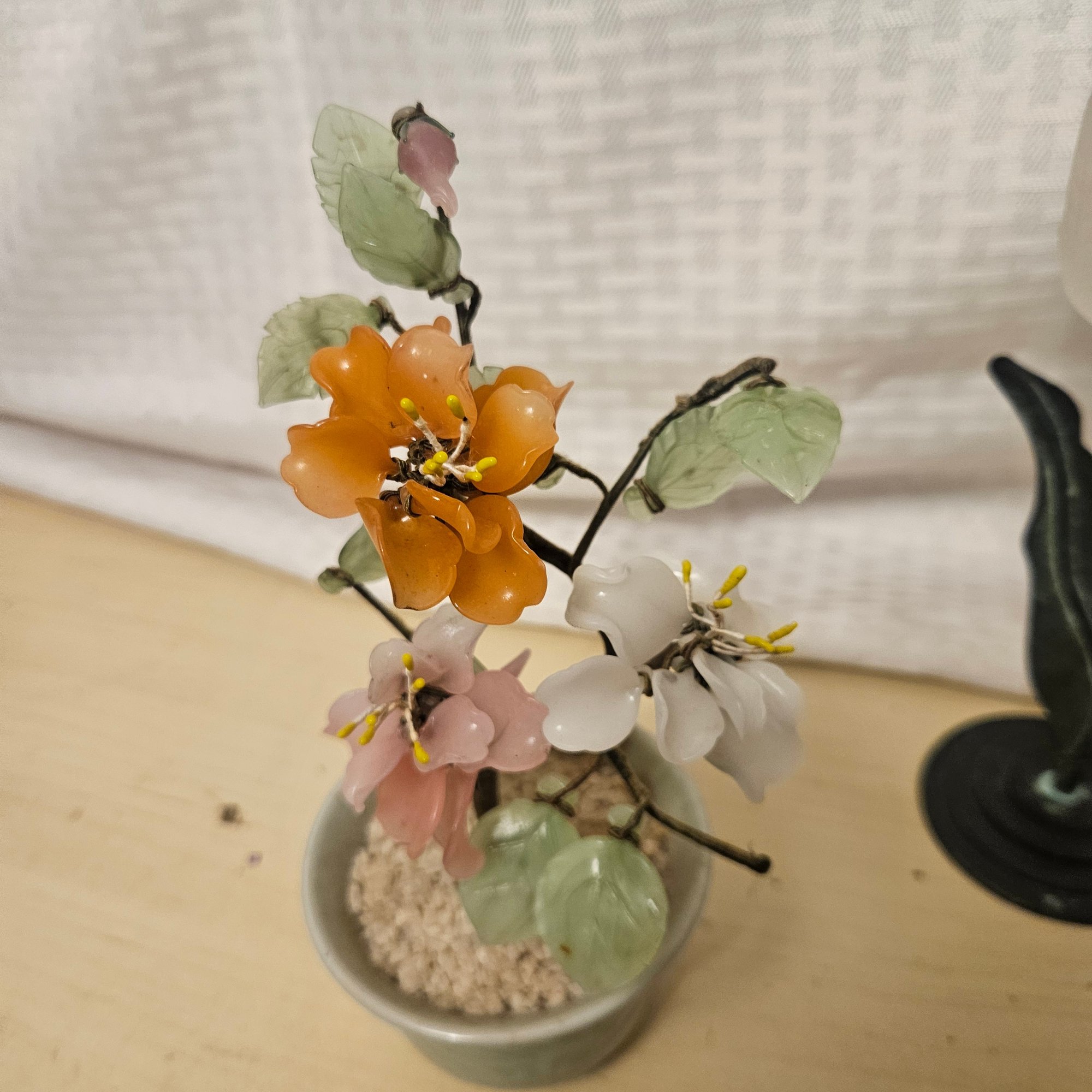 This beautiful lot features two jade petal flower trees, renowned for their calming green hues and elegant design, along with one intricately crafted metal flower. Perfect for adding a touch of natural beauty and artistic flair to any room, these pieces serve as charming décor for tabletops, shelves, or desks. A harmonious blend of stone and metal artistry, this set makes a thoughtful gift or a striking addition to a home or office display.
