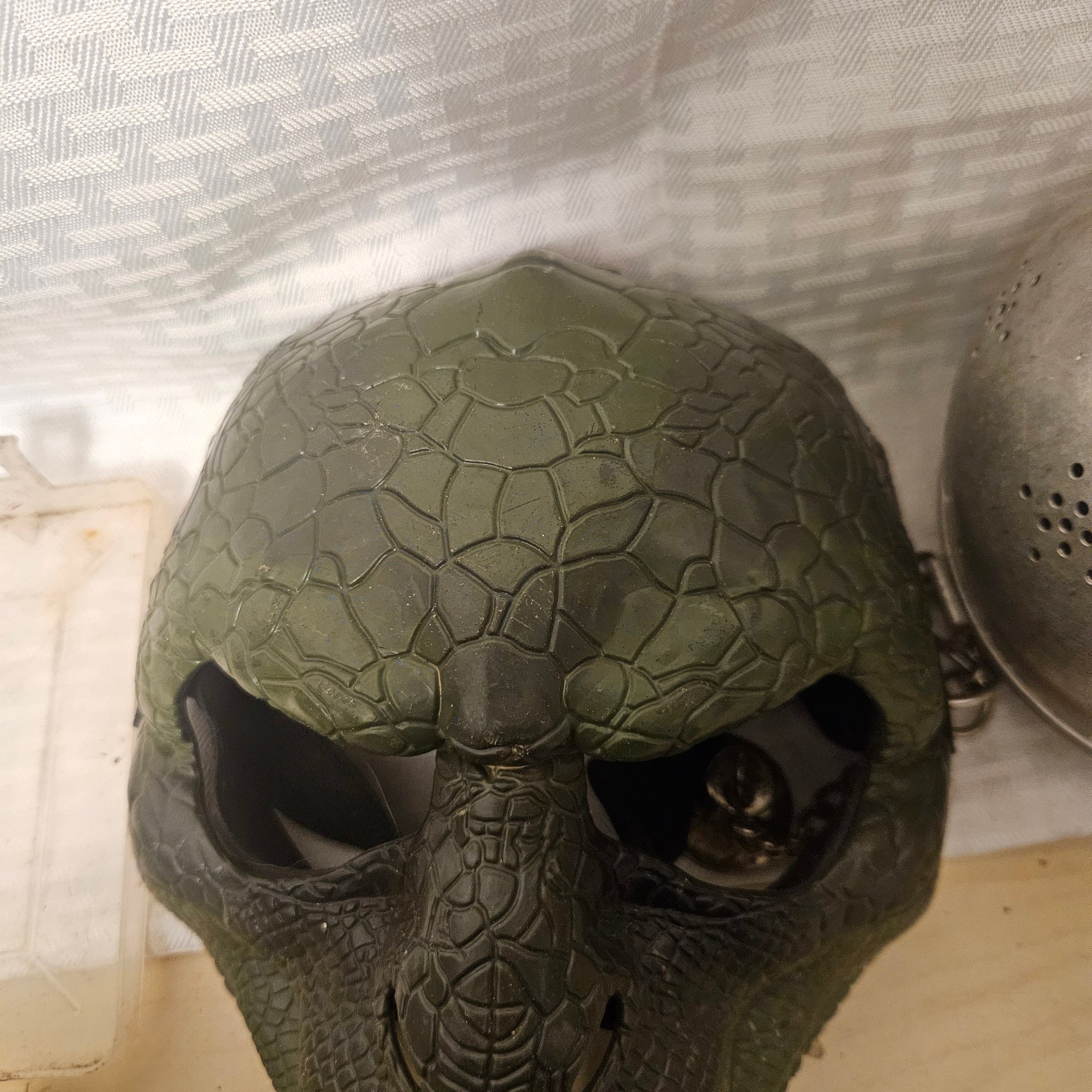 This intriguing and diverse lot includes a gas mask paired with a prop head, a small fishing kit, a Peter silverware set, a crocodile mask, and a metal ball that can open to contain items. Blending novelty, practicality, and collectible appeal, this assortment is perfect for collectors, crafters, or anyone who enjoys unique, conversation-starting pieces with a mix of function and flair.