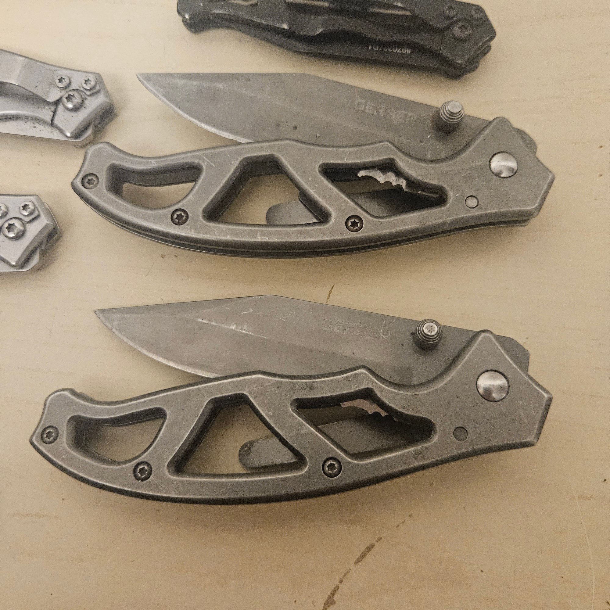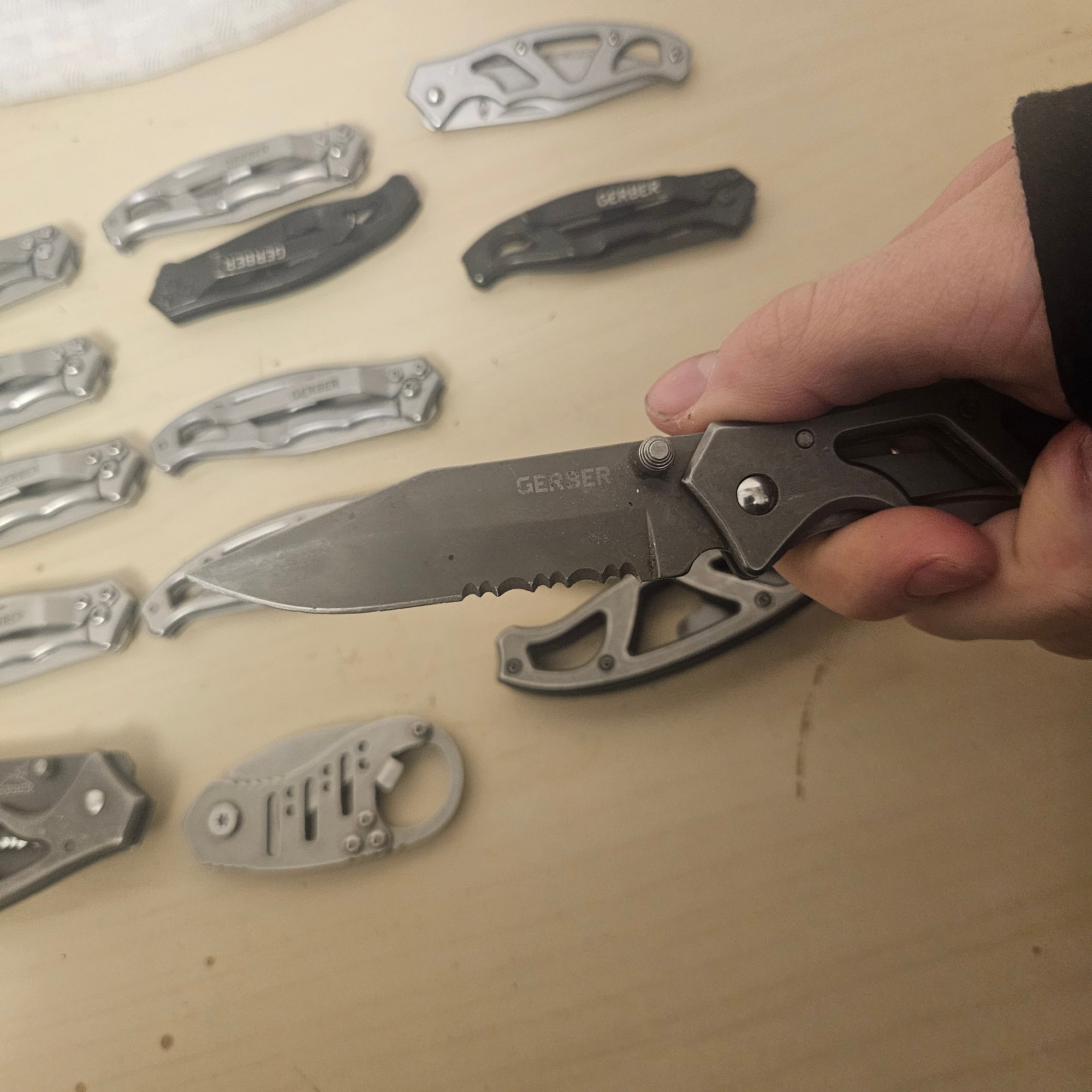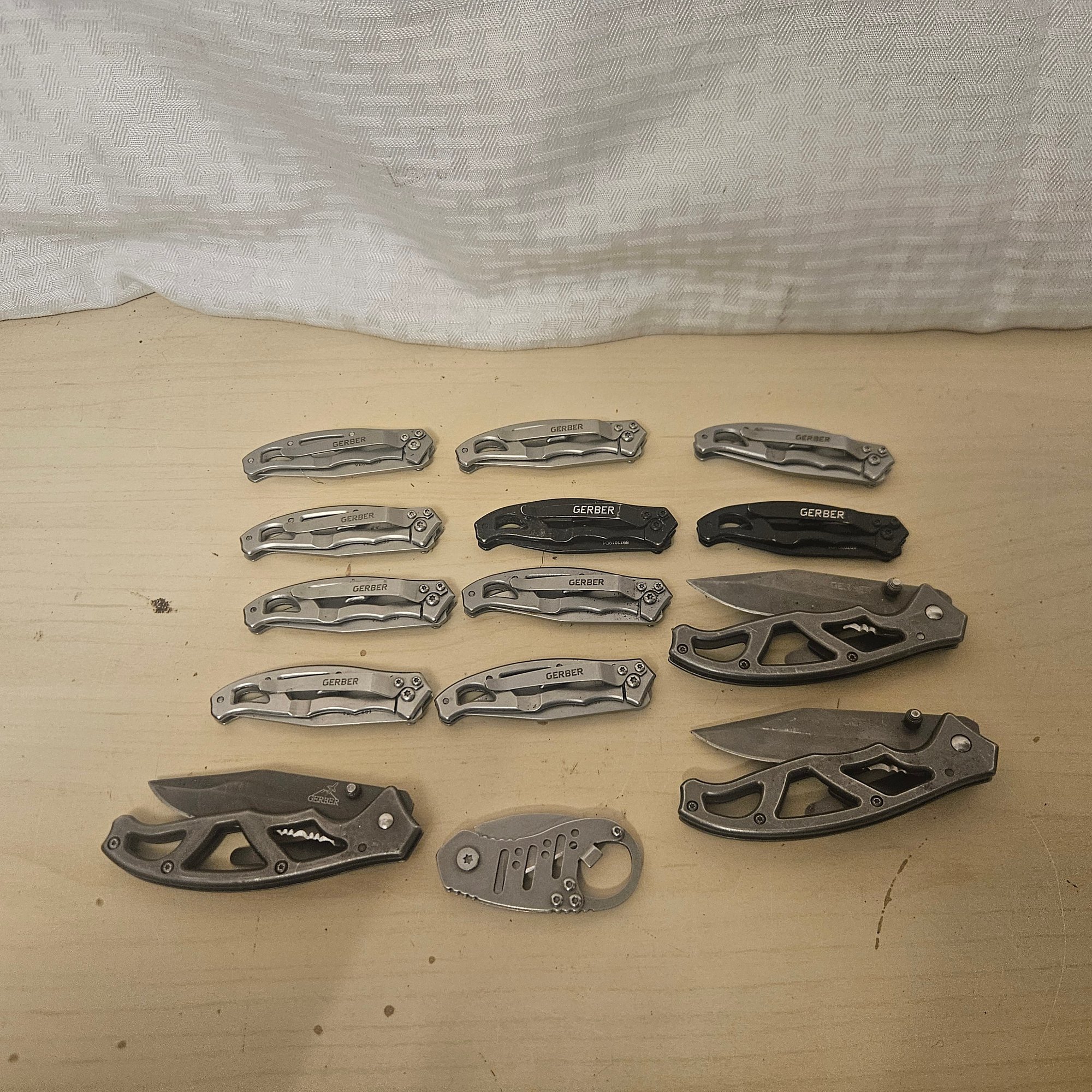 This impressive lot features a collection of 12 pocket knives, primarily from the trusted Gerber brand, along with additional assorted knives. Perfect for collectors, outdoor enthusiasts, or anyone who appreciates quality and craftsmanship, this assortment offers both practical utility and collectible value. Ideal for display, everyday carry, or expanding a knife collection.