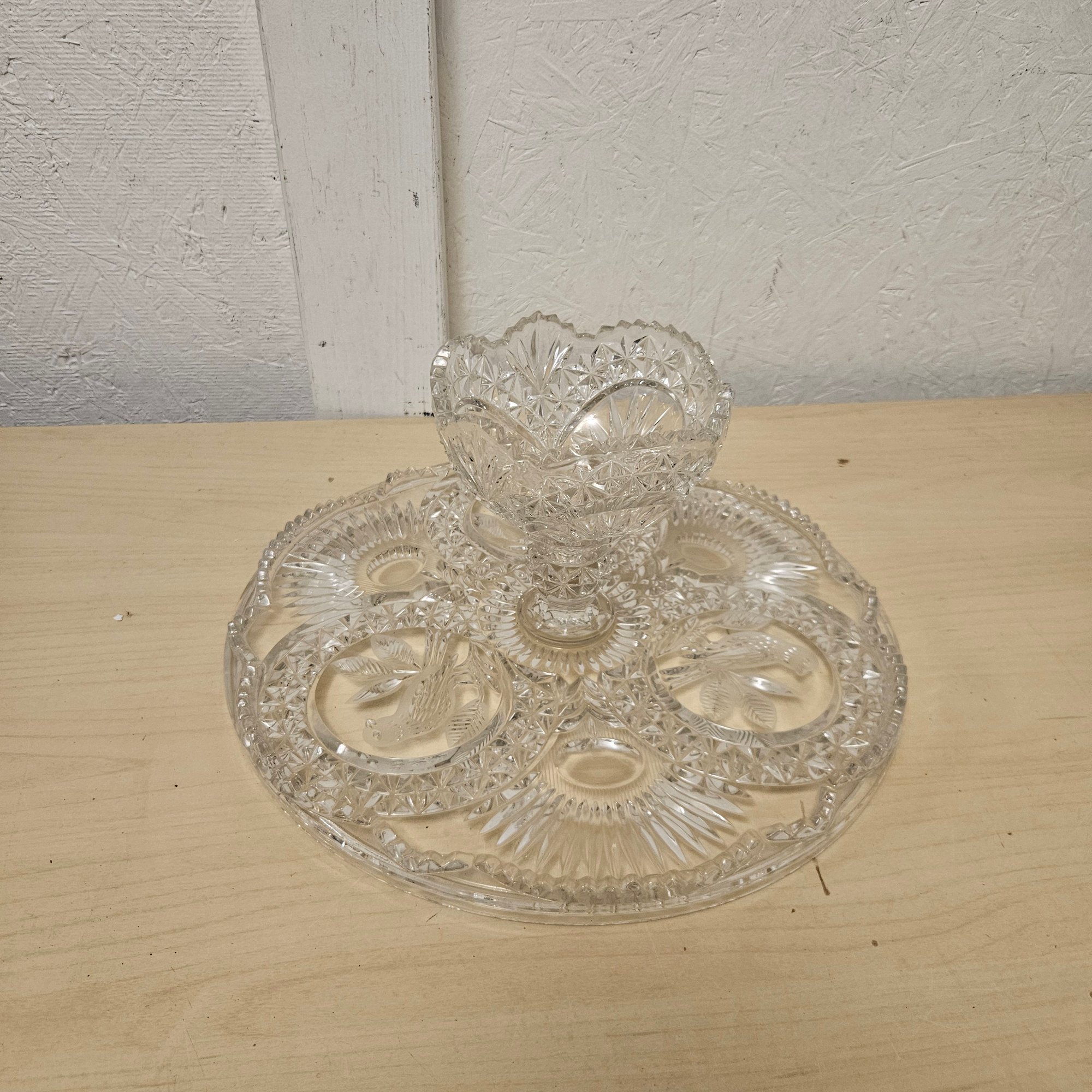 This exquisite tall standing glass cup features a wide base for stability and intricate etching that adds a touch of elegance. The delicate design enhances its charm, making it perfect for display, special occasions, or as a unique addition to any glassware collection. Whether used as drinkware or as a decorative statement piece, this glass cup offers both beauty and functionality. In good condition, it’s a timeless addition to any home or collection.