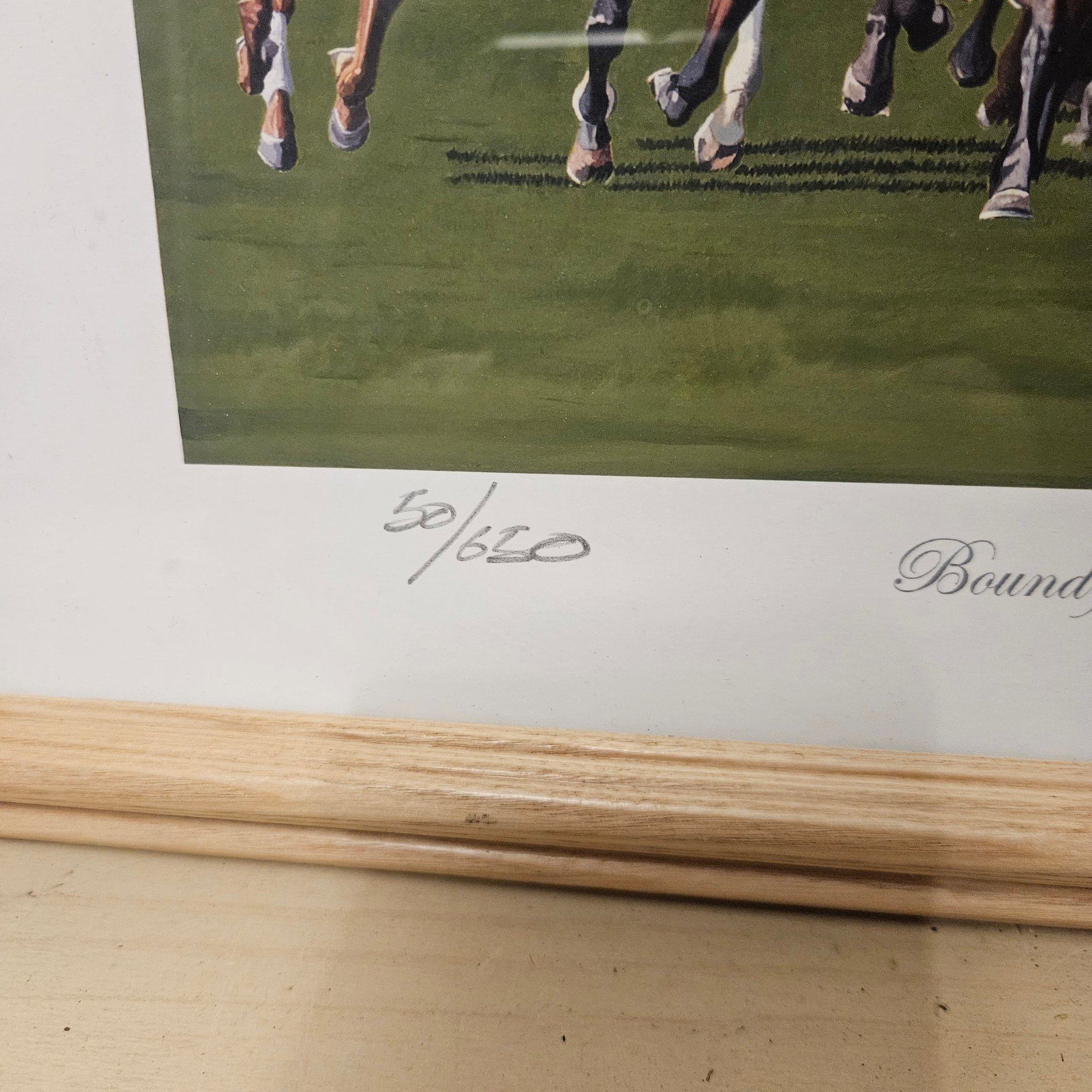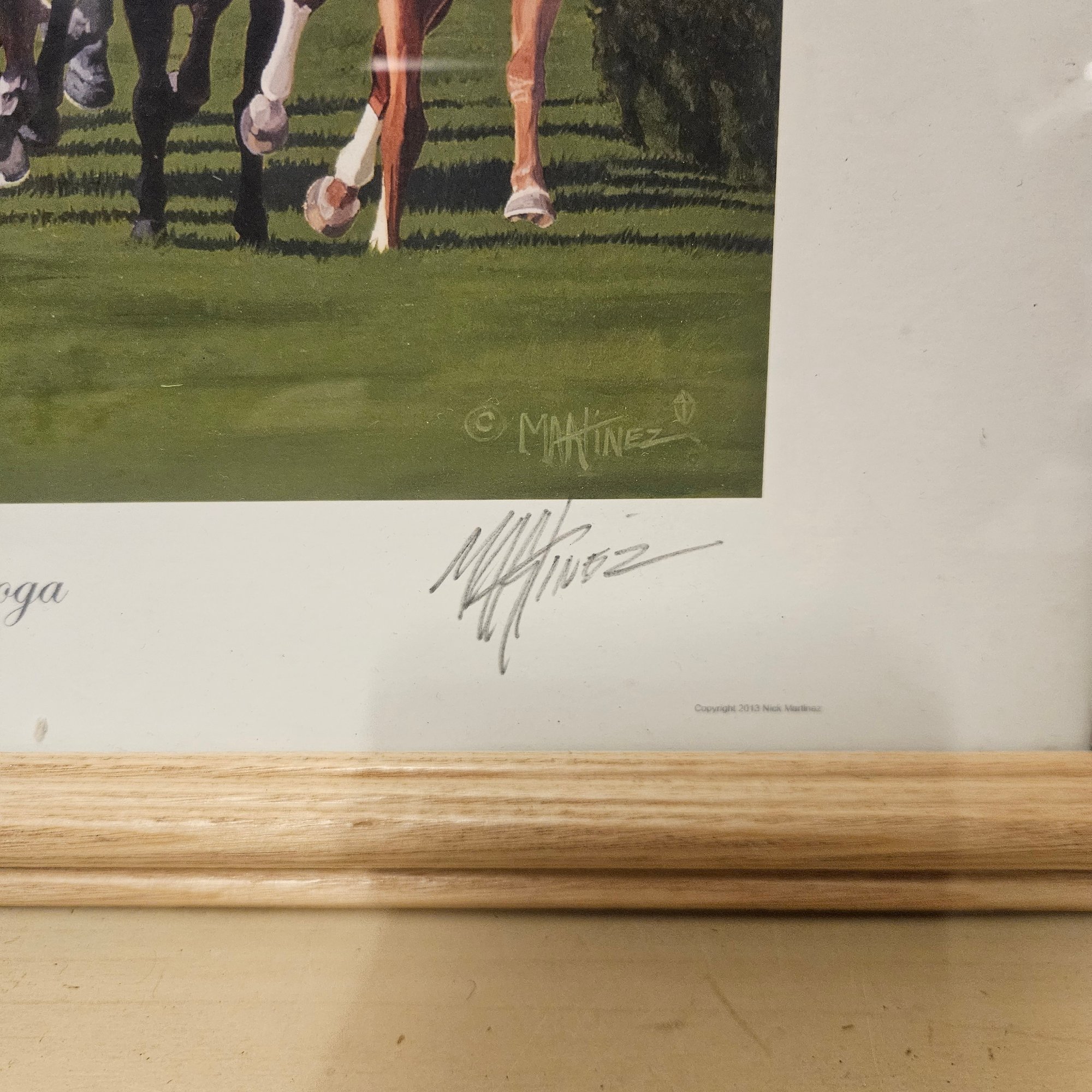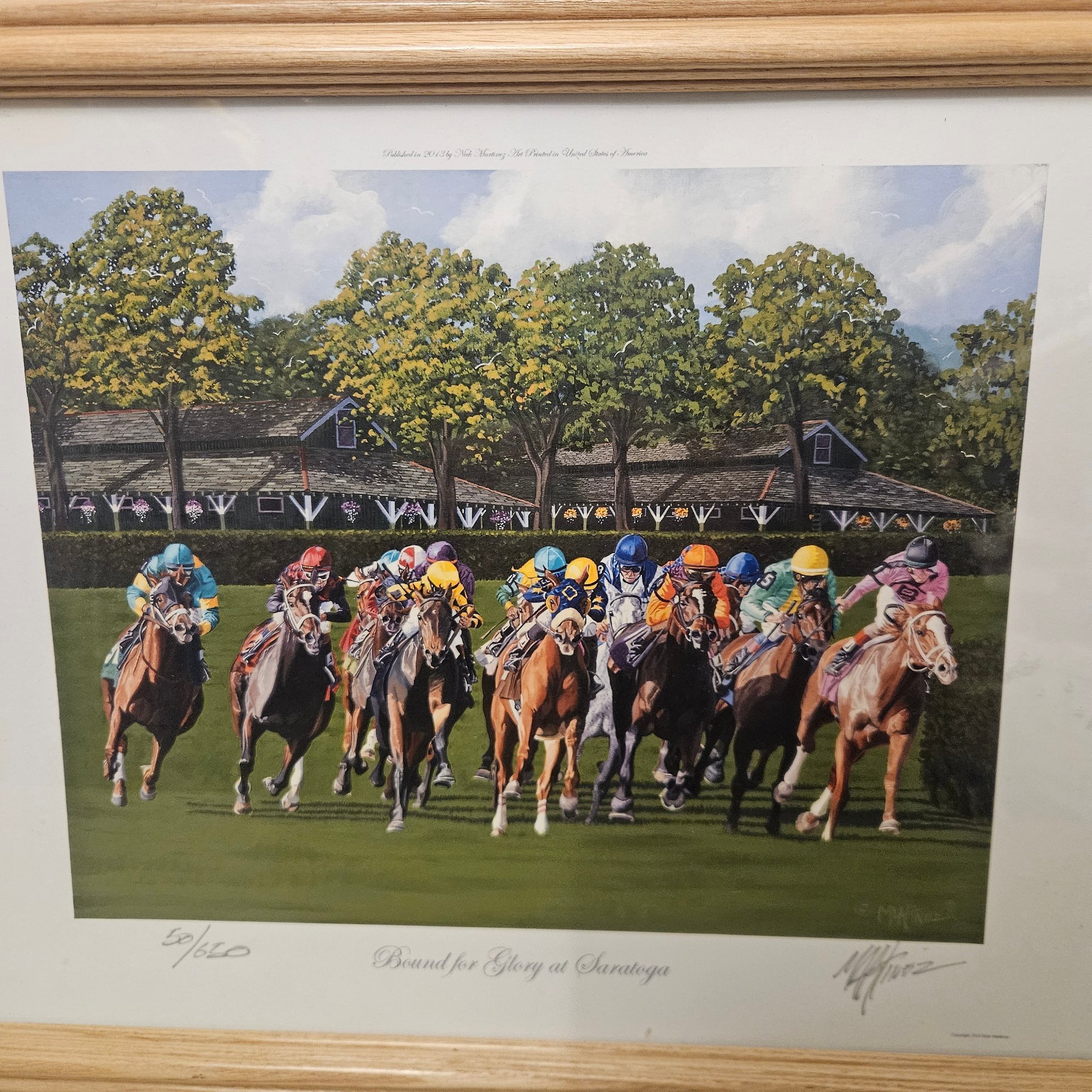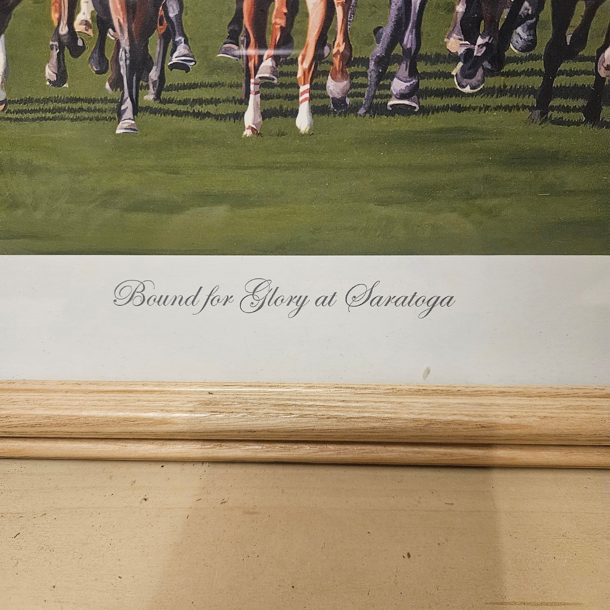 This framed picture captures the excitement and energy of a horse racing scene, showcasing the dynamic movement and thrill of the sport. Perfect for sports enthusiasts, equestrian fans, or collectors of vintage and themed artwork, this piece adds action, character, and visual appeal to any room or display.