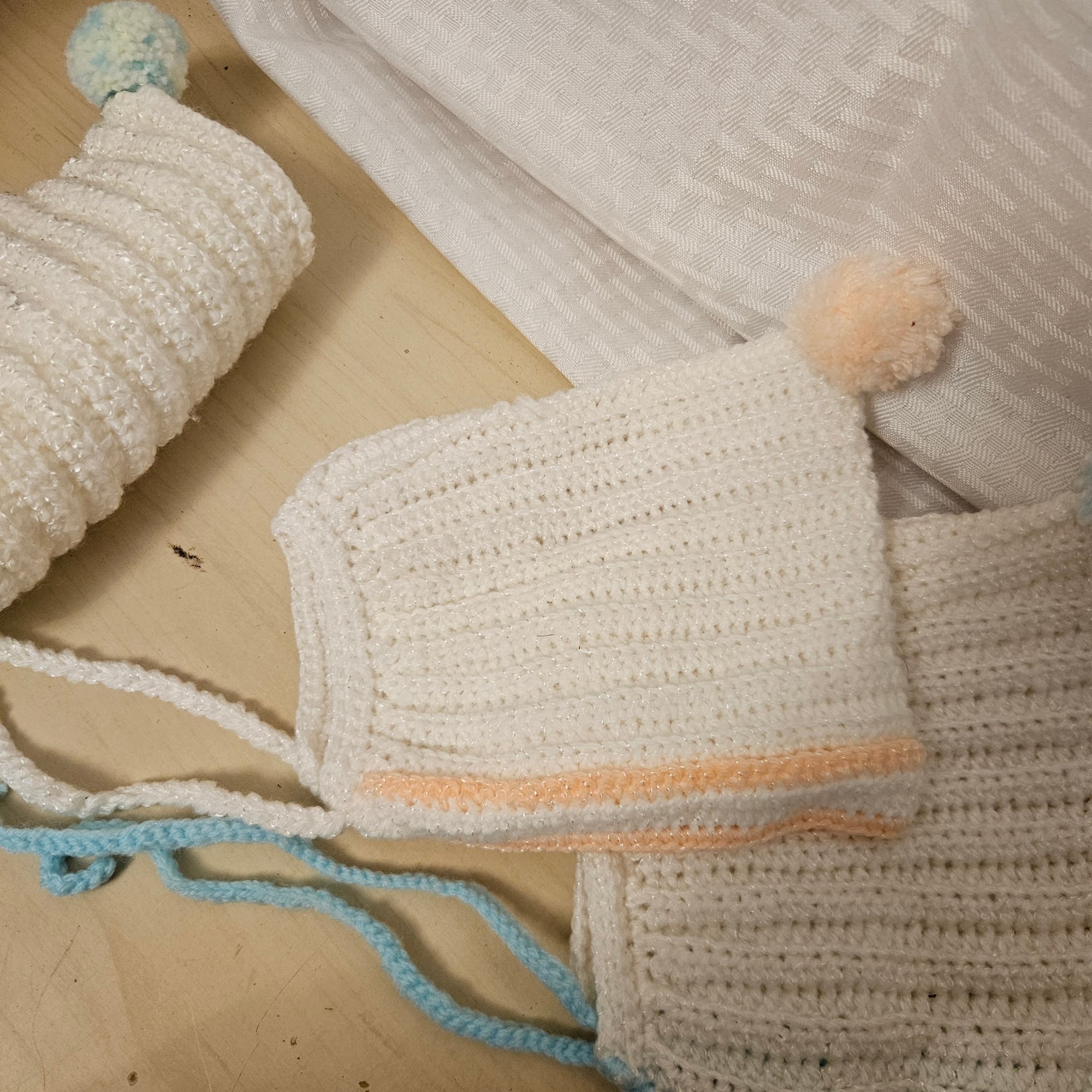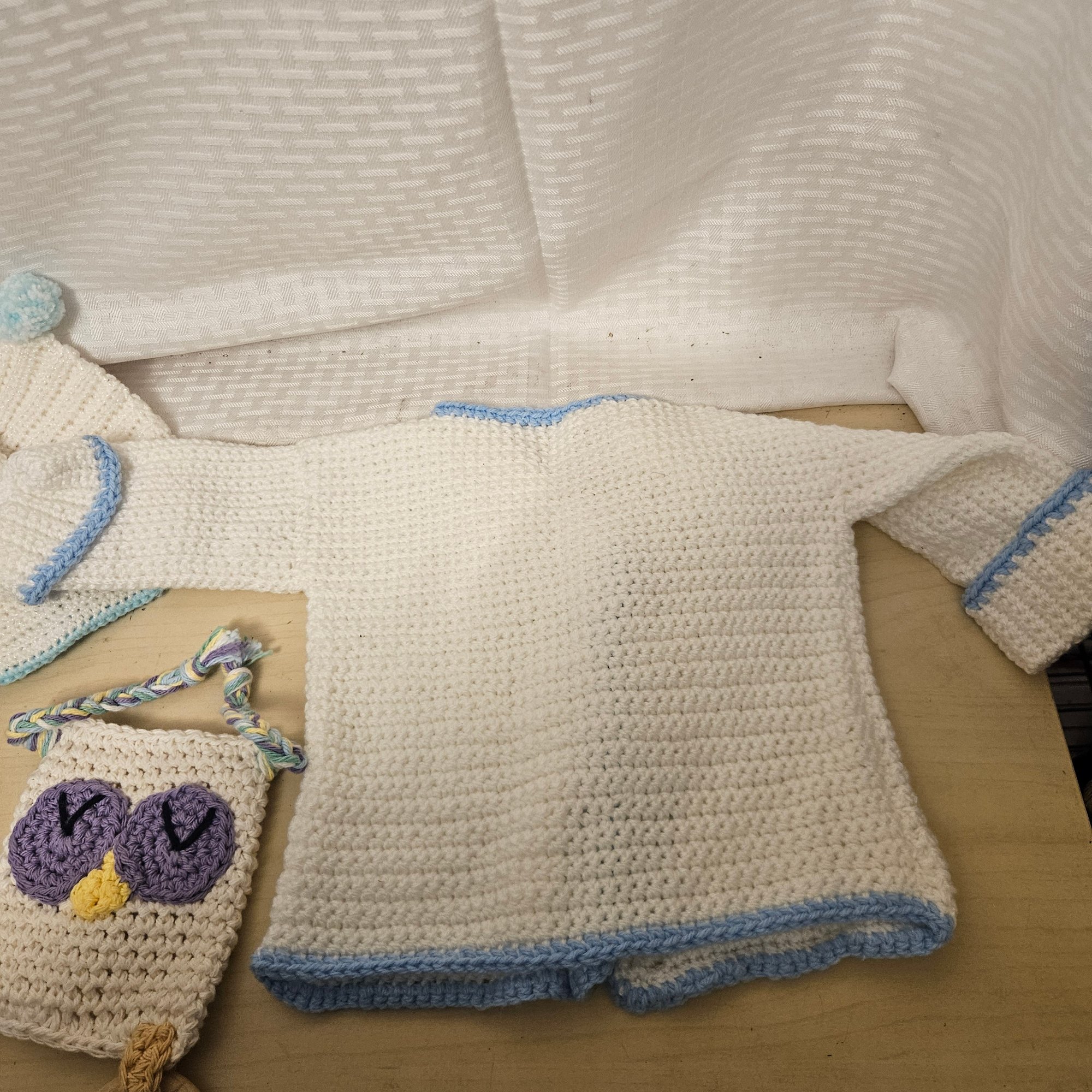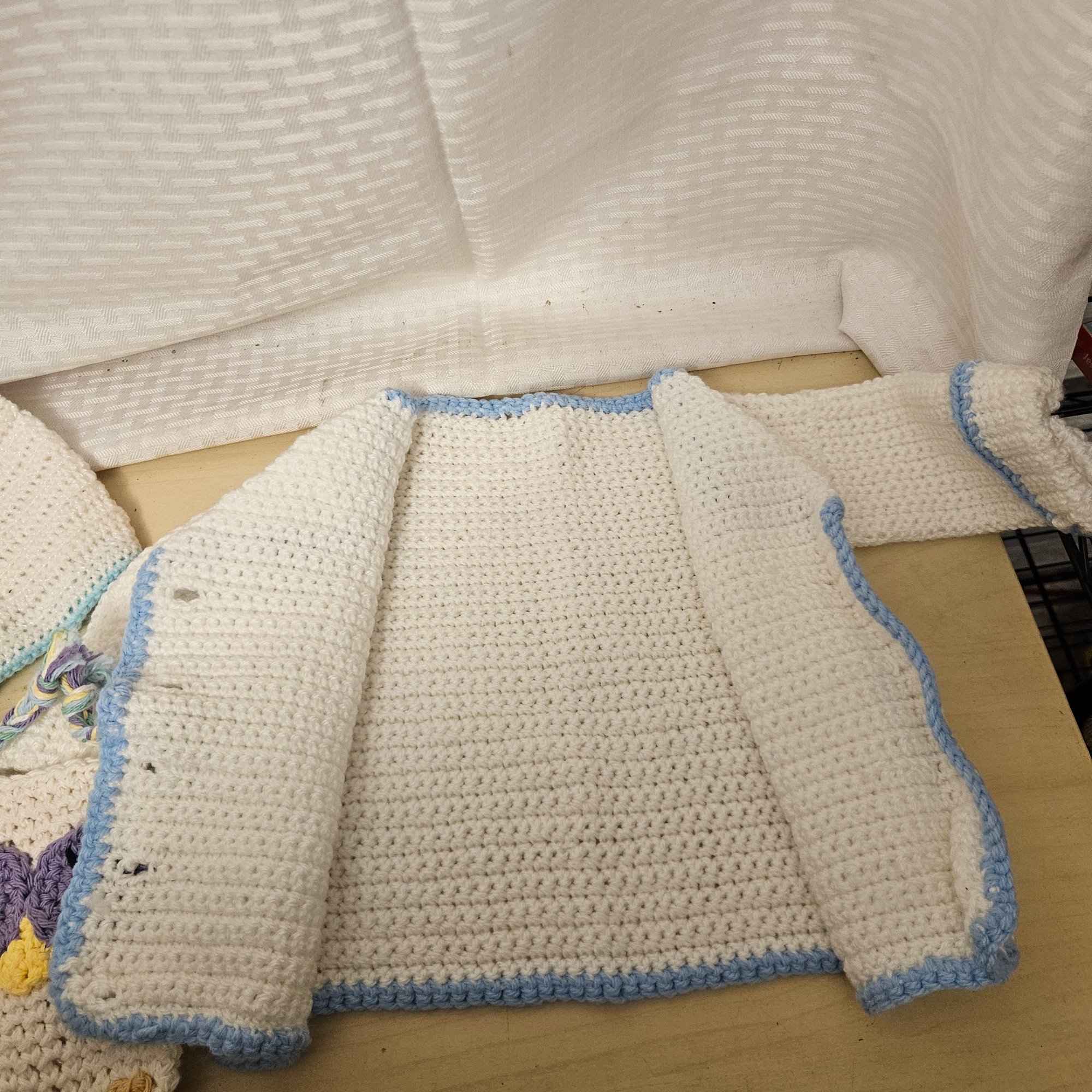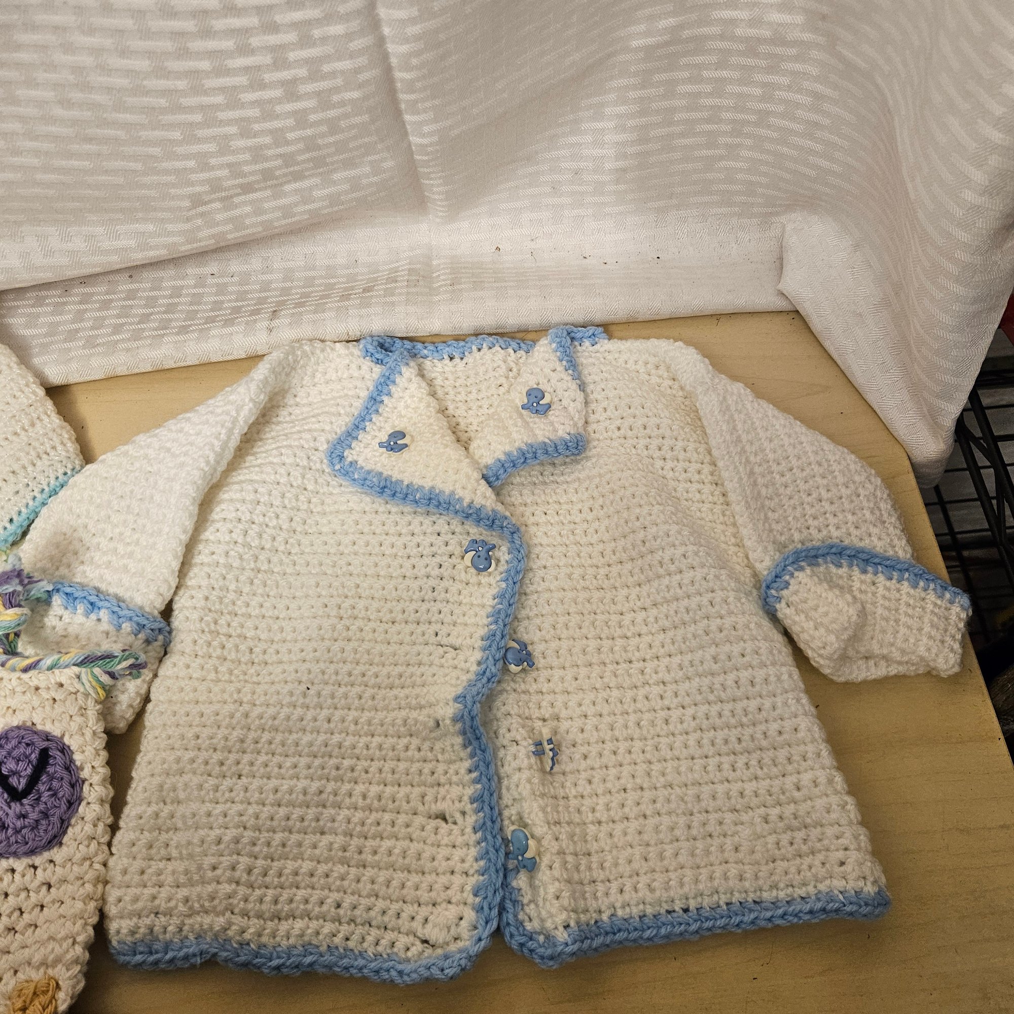 This adorable lot includes a hand-knit kid’s coat, three cozy hats, and additional hand-knit accessories. Perfect for keeping children warm in style, gifting, or adding charming handmade pieces to a child’s wardrobe, this assortment combines comfort, quality, and unique artisanal craftsmanship. A delightful set for parents, crafters, or collectors of hand-knit items.