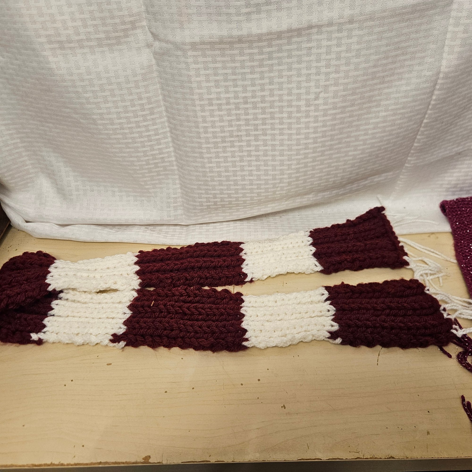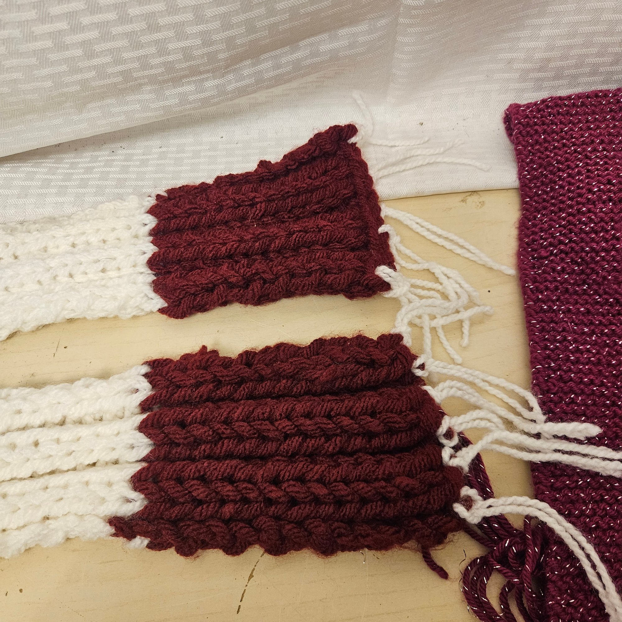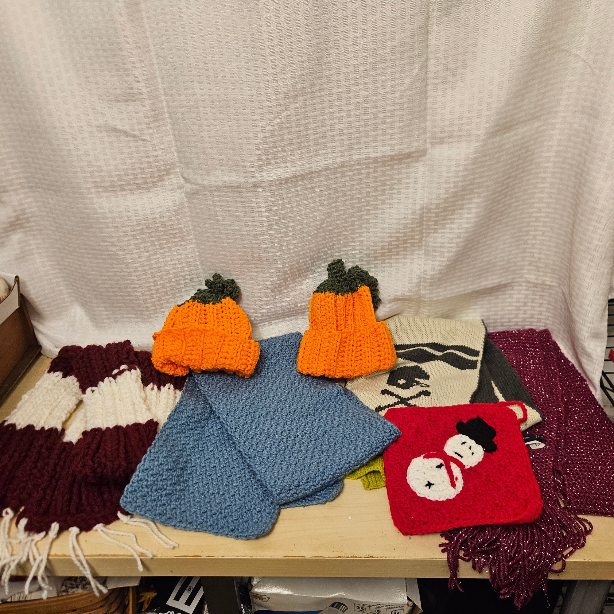 This charming lot features a variety of hand-knit scarves, hats, and additional cozy accessories. Perfect for staying warm in style, gifting, or adding a touch of handmade charm to any wardrobe, this assortment offers comfort, craftsmanship, and unique, one-of-a-kind pieces. Ideal for crafters, collectors, or anyone who appreciates artisan knitwear.