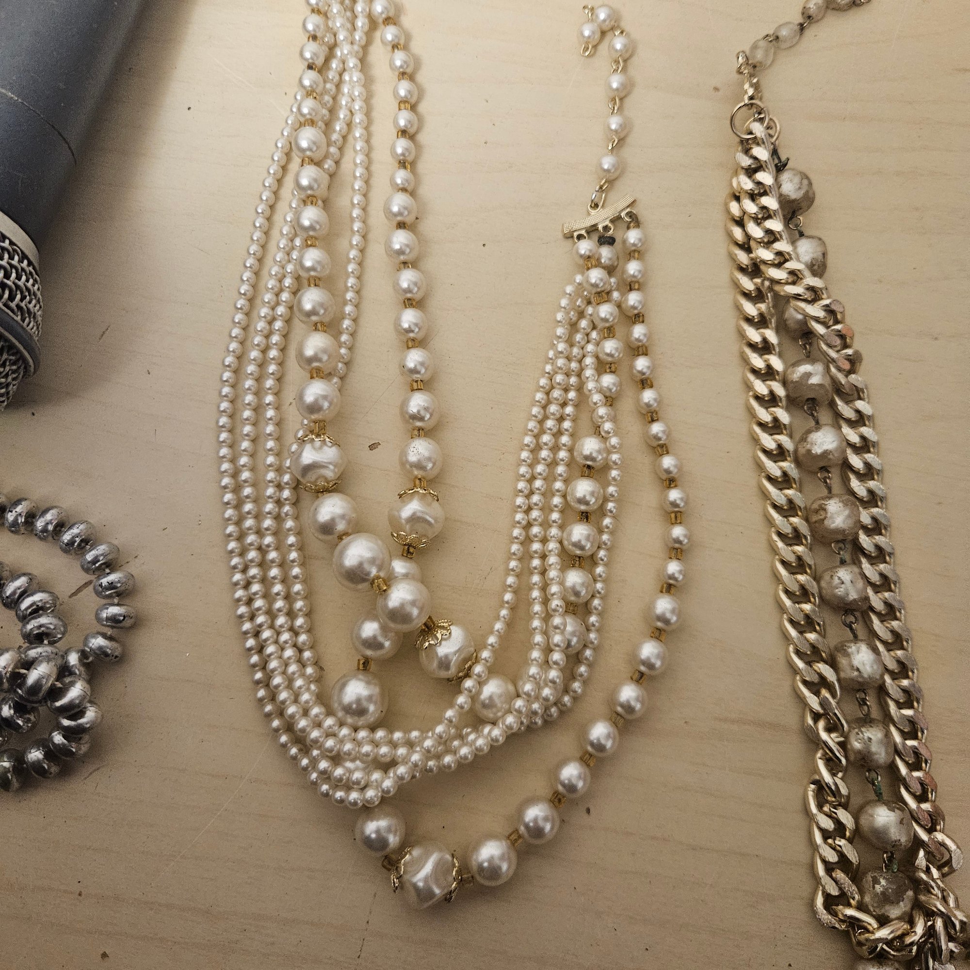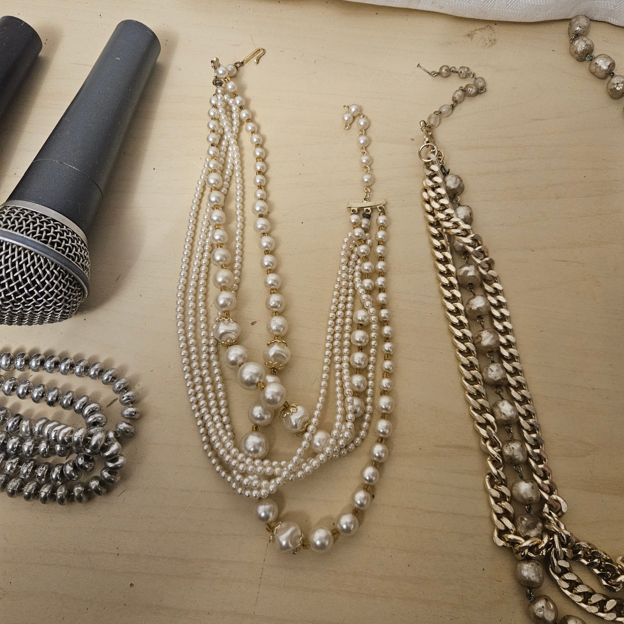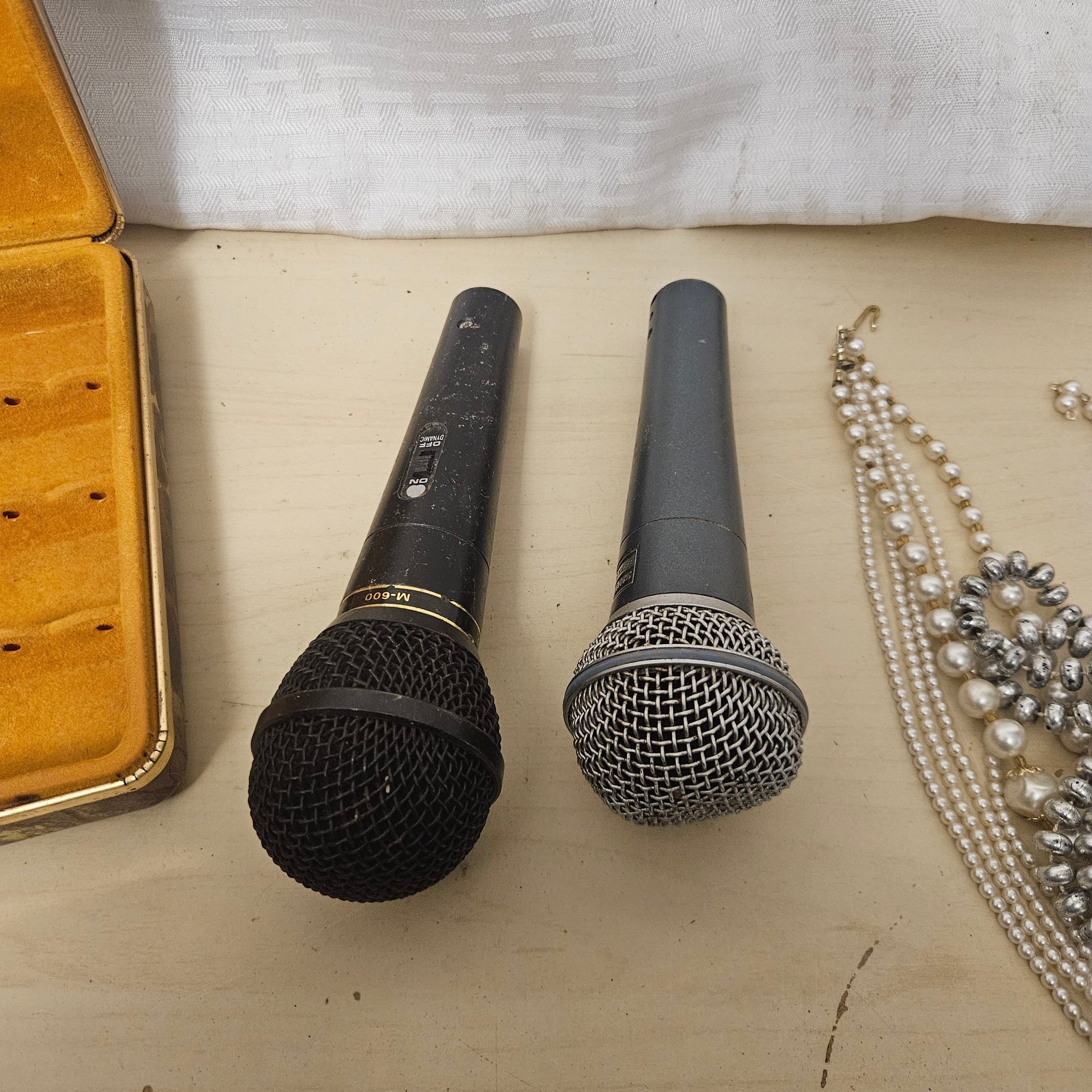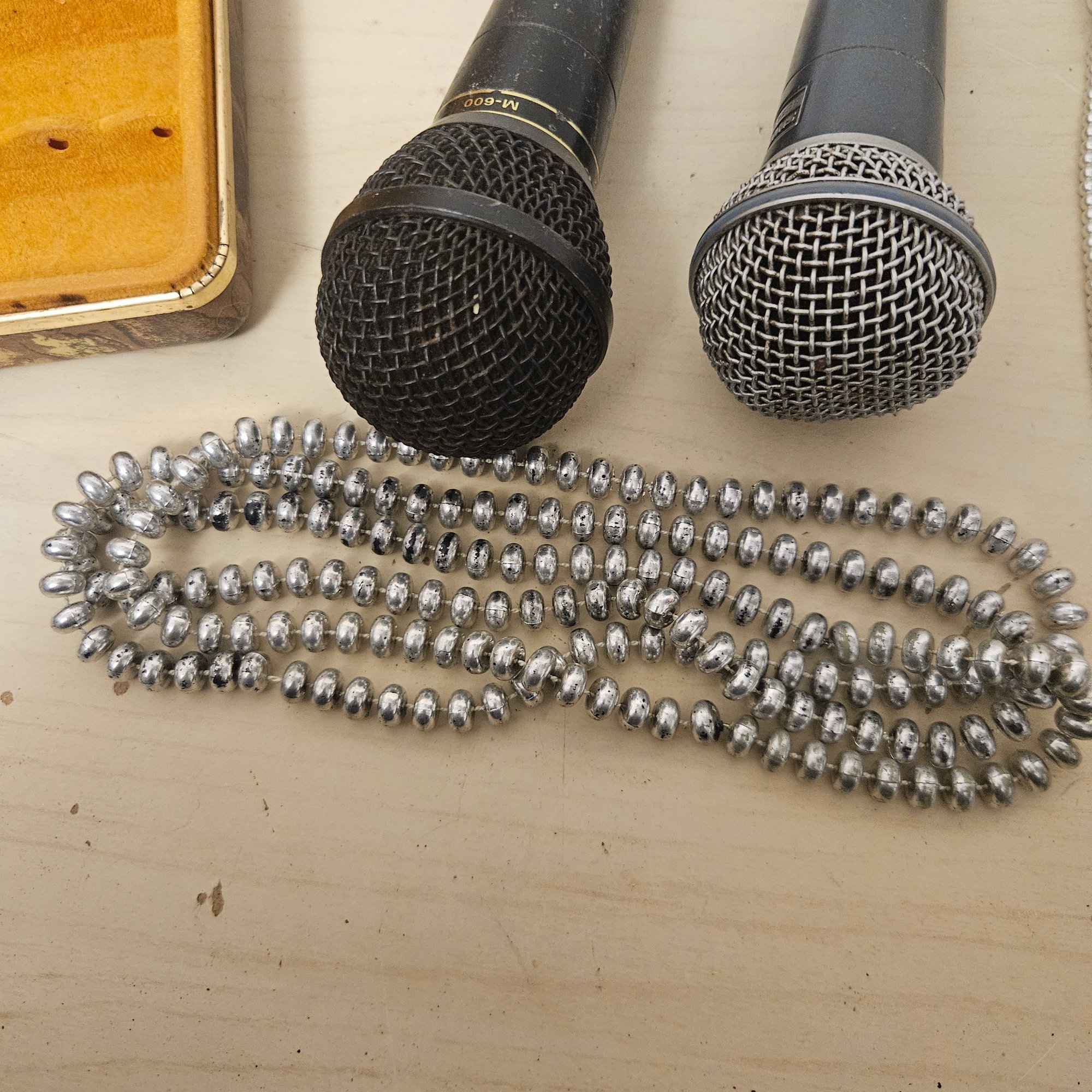 This versatile lot includes a jewelry display stand, one anklet, three necklaces, and two microphones. Perfect for collectors, performers, or anyone who enjoys fashion and audio equipment, this assortment combines stylish accessories with practical gear, making it ideal for personal use, display, or gifting.