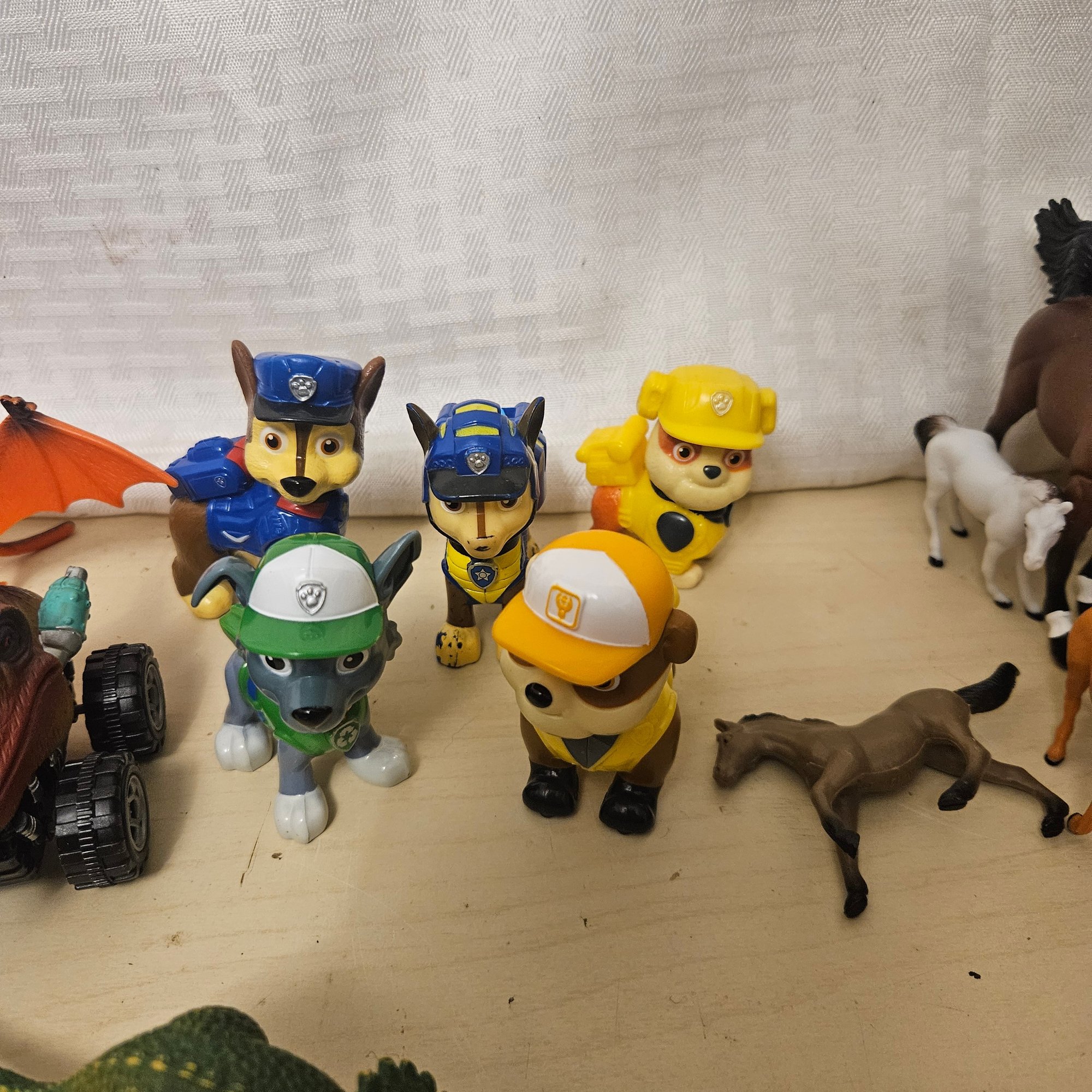 This exciting lot features a wide assortment of toys for boys, including action figures, dinosaurs, animal figurines, Paw Patrol characters, and many more. Perfect for imaginative play, collectors, or gifting, this diverse assortment offers hours of entertainment and fun. A vibrant mix that appeals to children and toy enthusiasts alike.