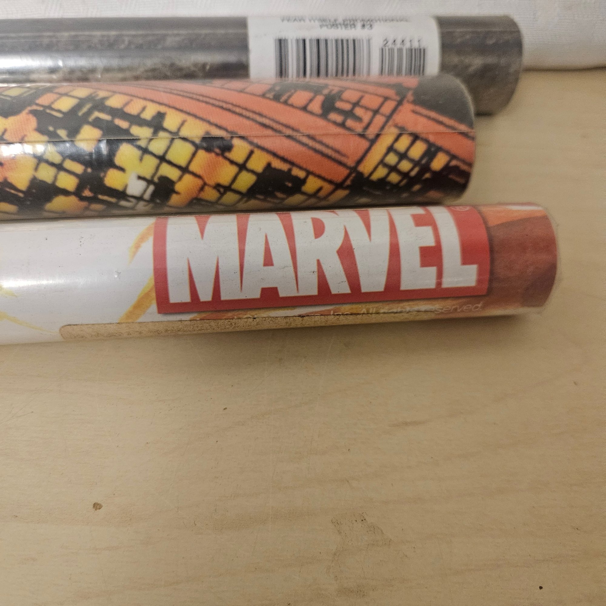 This lot includes three Marvel posters, each carefully covered for protection. Perfect for fans and collectors of the Marvel universe, these posters are ideal for display, framing, or adding a superhero touch to bedrooms, offices, or entertainment spaces. A vibrant and collectible set for any Marvel enthusiast.