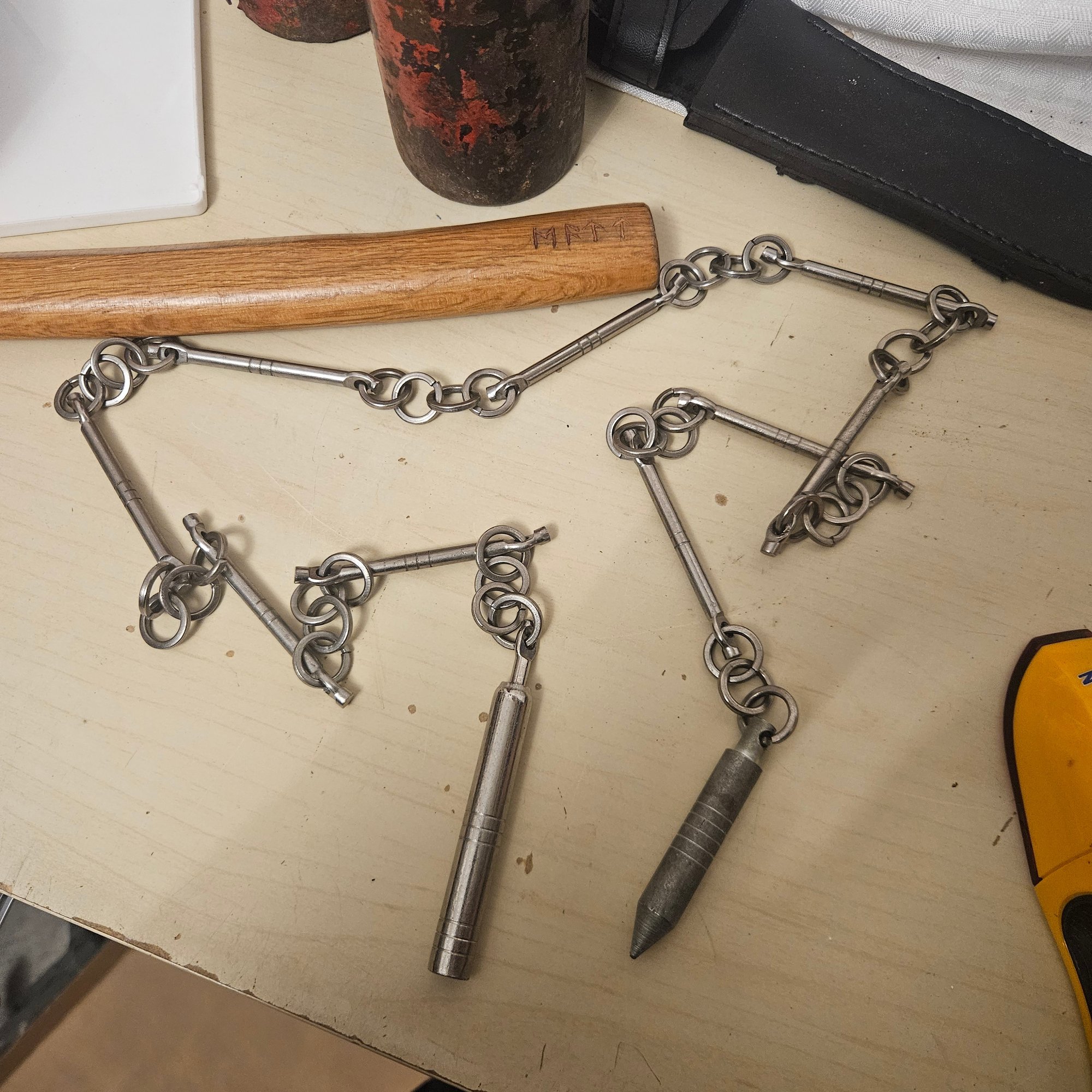 This eclectic lot includes a stub finder, a line marker, a defense necklace, several small pots, and additional assorted items. Perfect for collectors, hobbyists, or anyone who enjoys unique and versatile items, this assortment blends practical tools, decorative pieces, and personal accessories in one intriguing collection.