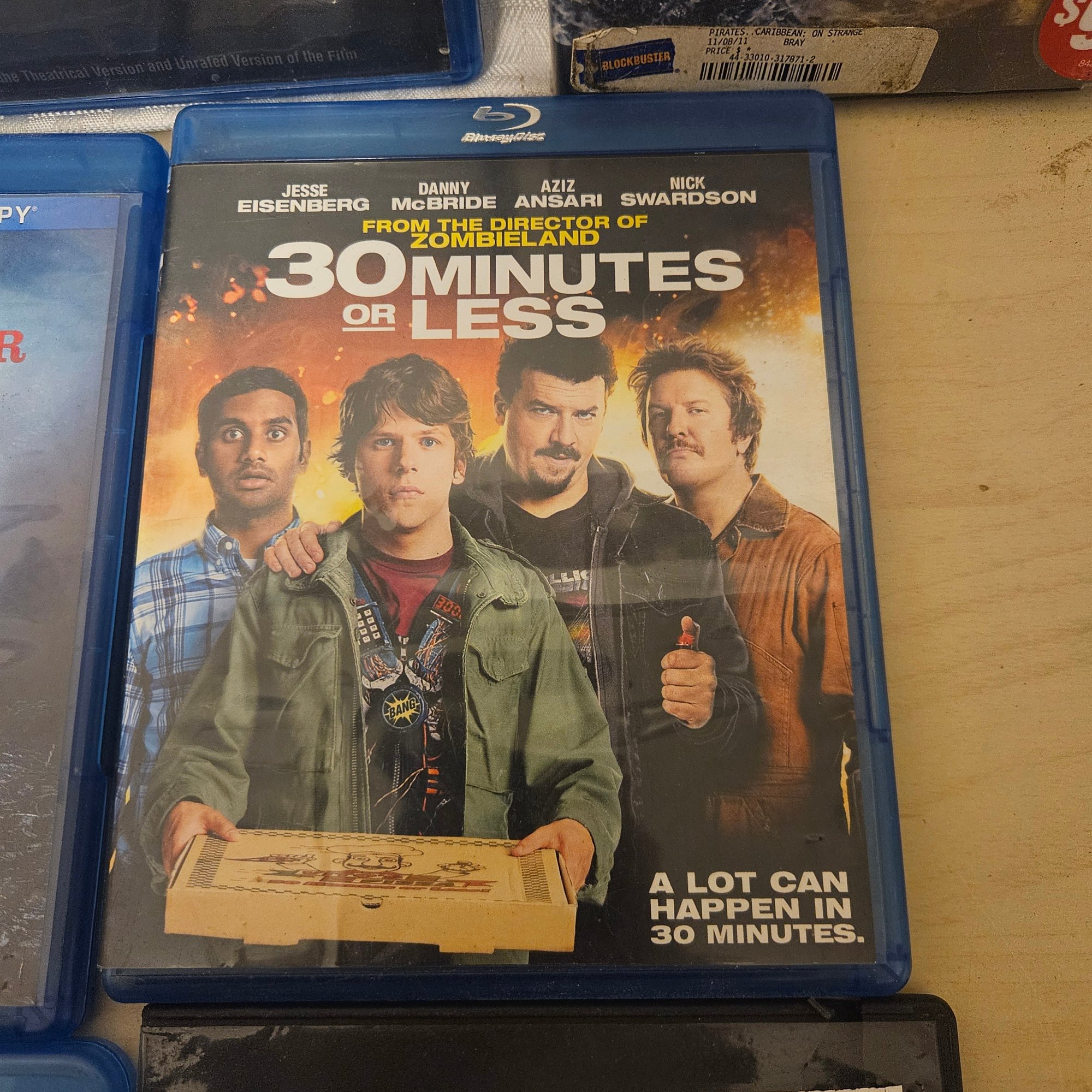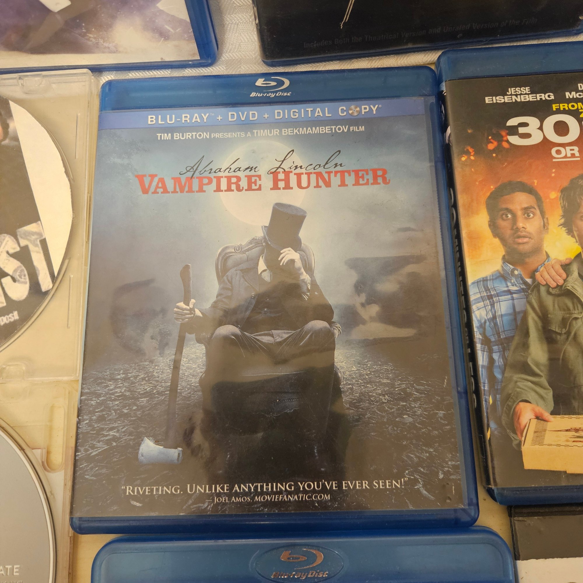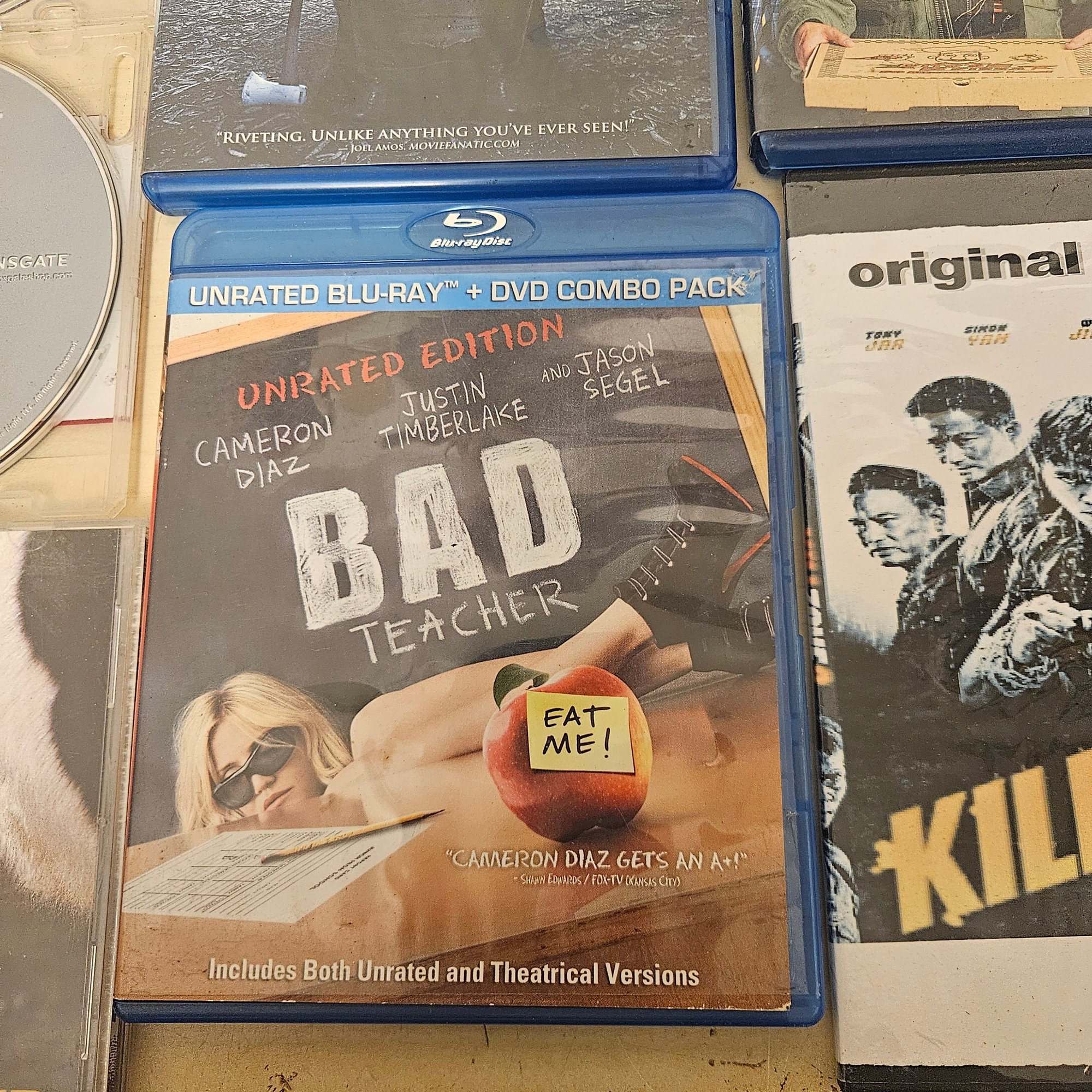 This lot includes six Blu-ray discs, two standard DVDs, and additional assorted media. Perfect for movie lovers, collectors, or anyone looking to expand their home entertainment library, this assortment offers a variety of films for viewing and enjoyment. A versatile mix that provides hours of cinematic entertainment.