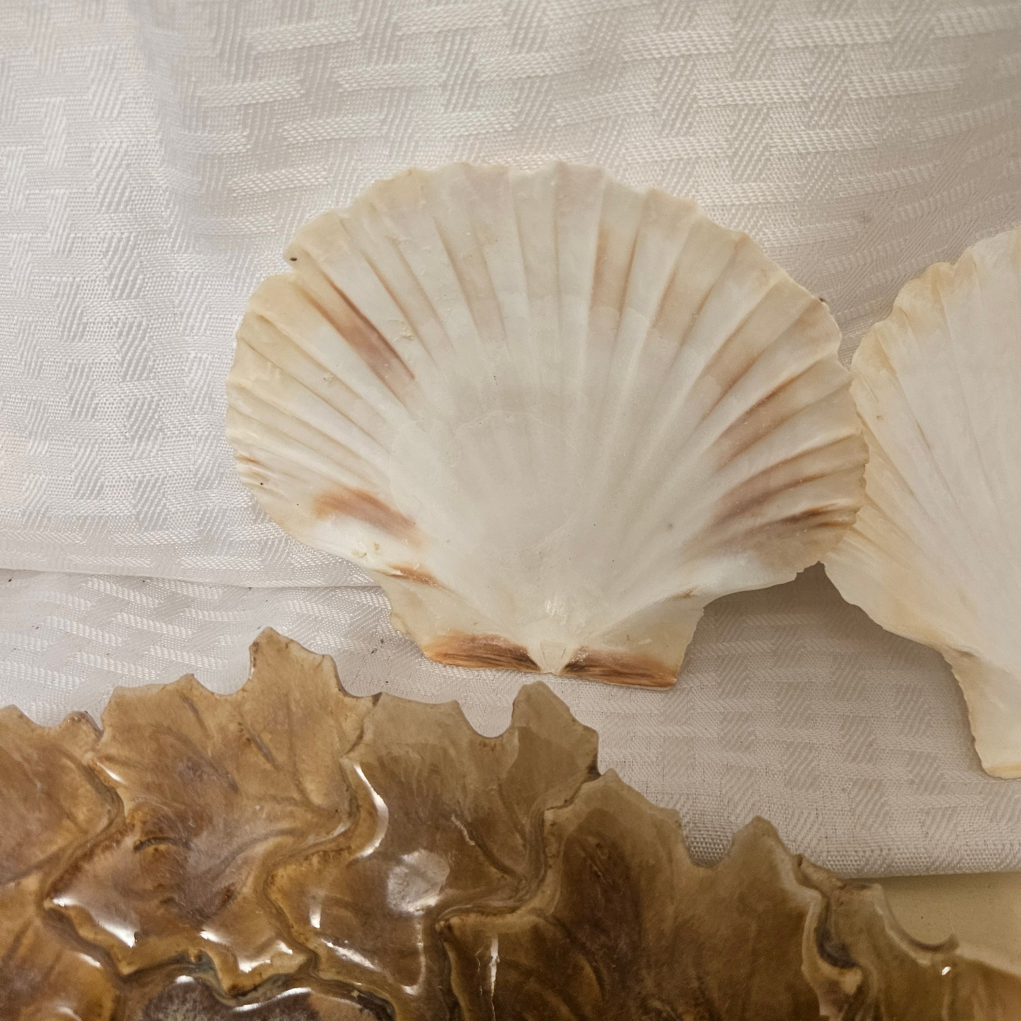 This decorative lot features a pottery plate beautifully outlined with shell details, accompanied by a collection of assorted shells. Perfect for coastal or nautical décor, crafting, or display, this set brings a natural seaside charm to any space. An ideal piece for beach lovers, collectors, or anyone looking to add a touch of ocean-inspired elegance to their home.