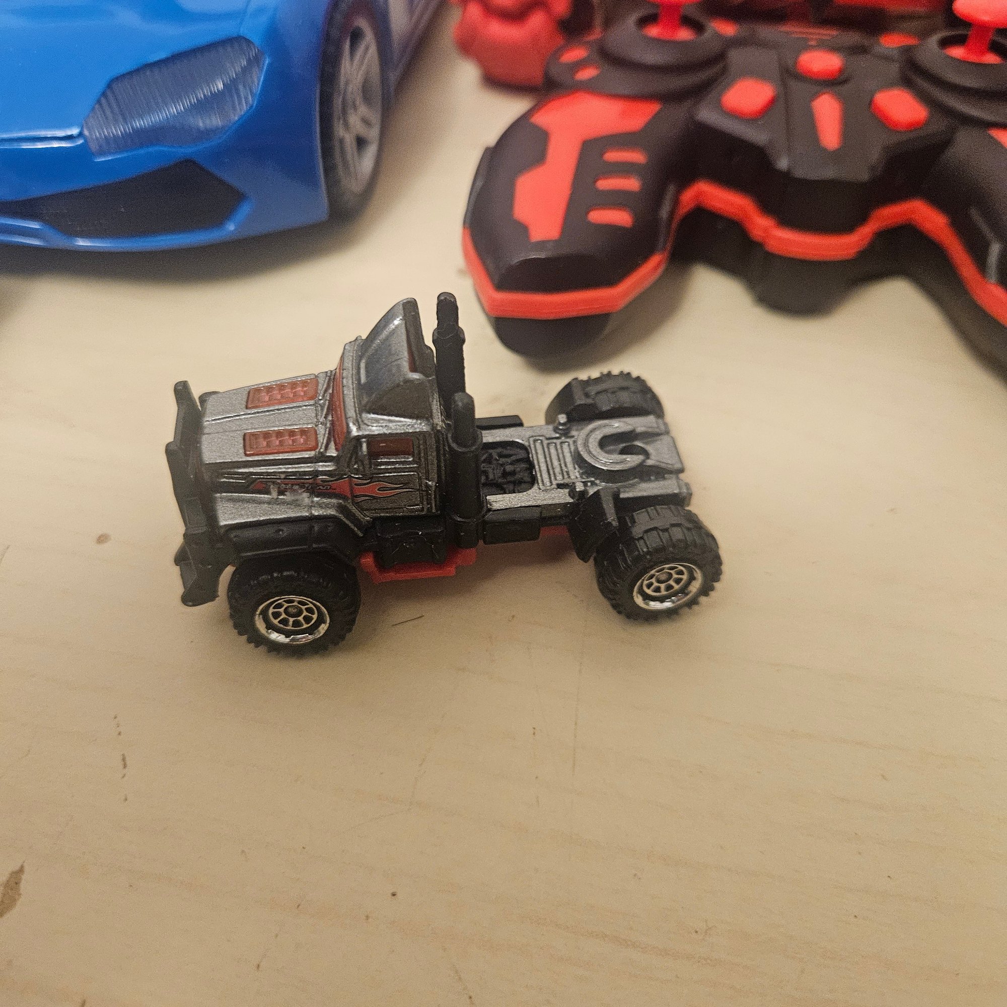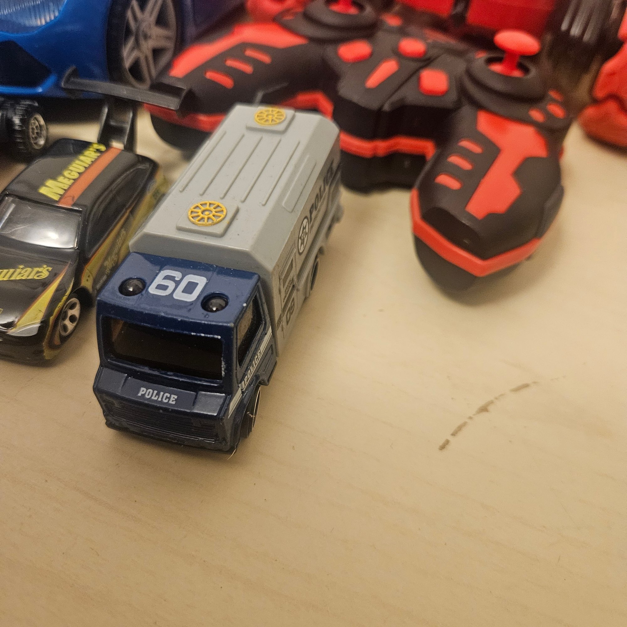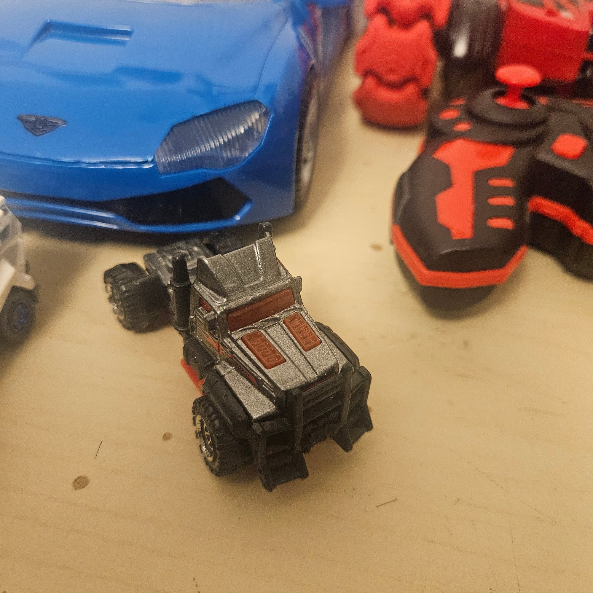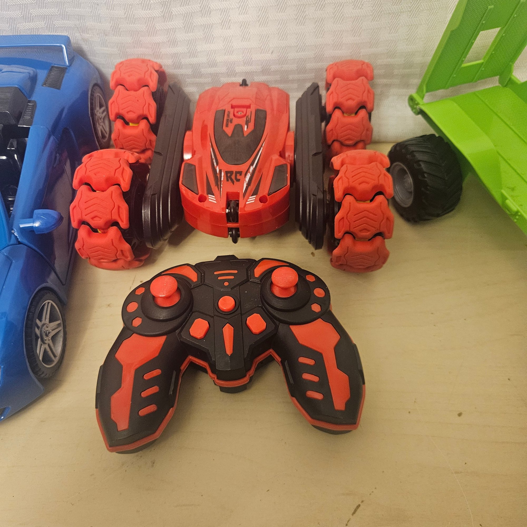 This exciting lot includes a double-sided remote control car, four die-cast cars, one large metal blue car, a four-wheeler, and a toy truck. Perfect for children or collectors, this assortment offers a mix of interactive play, display-worthy vehicles, and durable fun. A dynamic set for imaginative play and vehicle enthusiasts of all ages.