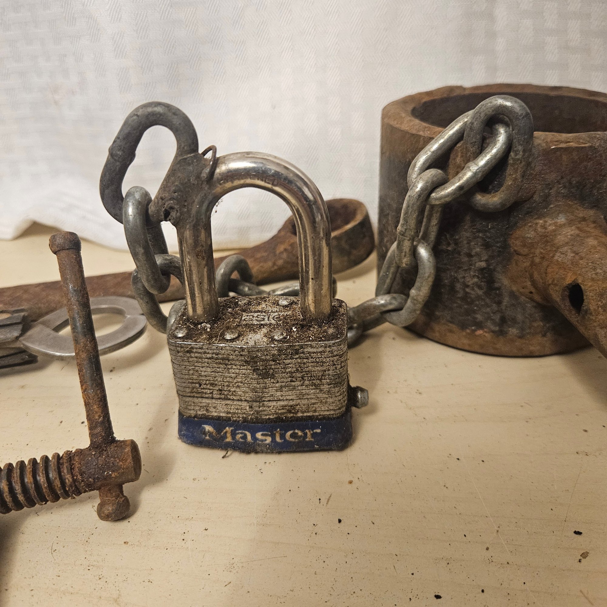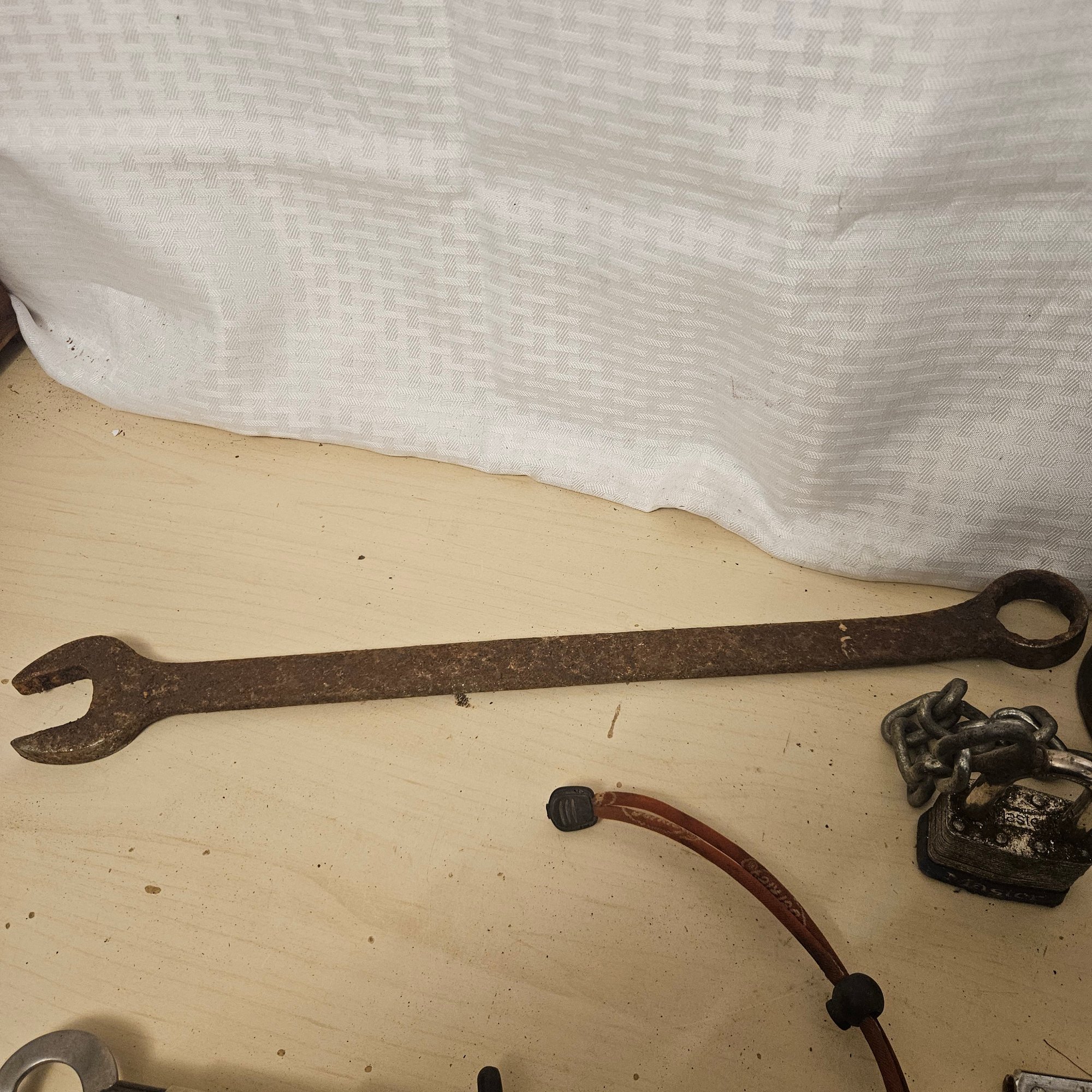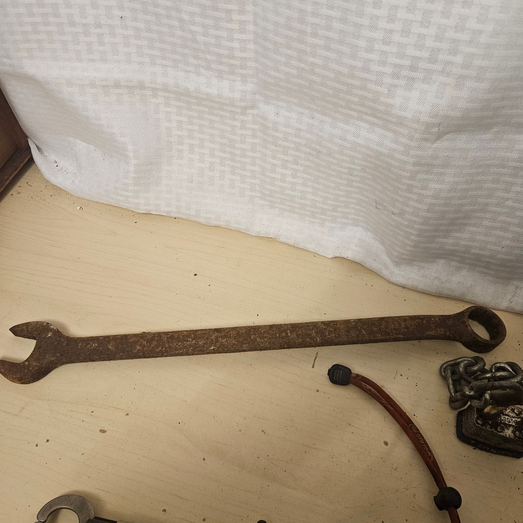 This eclectic lot includes a small melting cauldron, a tool grip, an adjustable wrench, and additional assorted items. Blending practical hand tools with a whimsical novelty piece, this collection is perfect for collectors, crafters, or DIY enthusiasts who enjoy unique and versatile items for both utility and display.