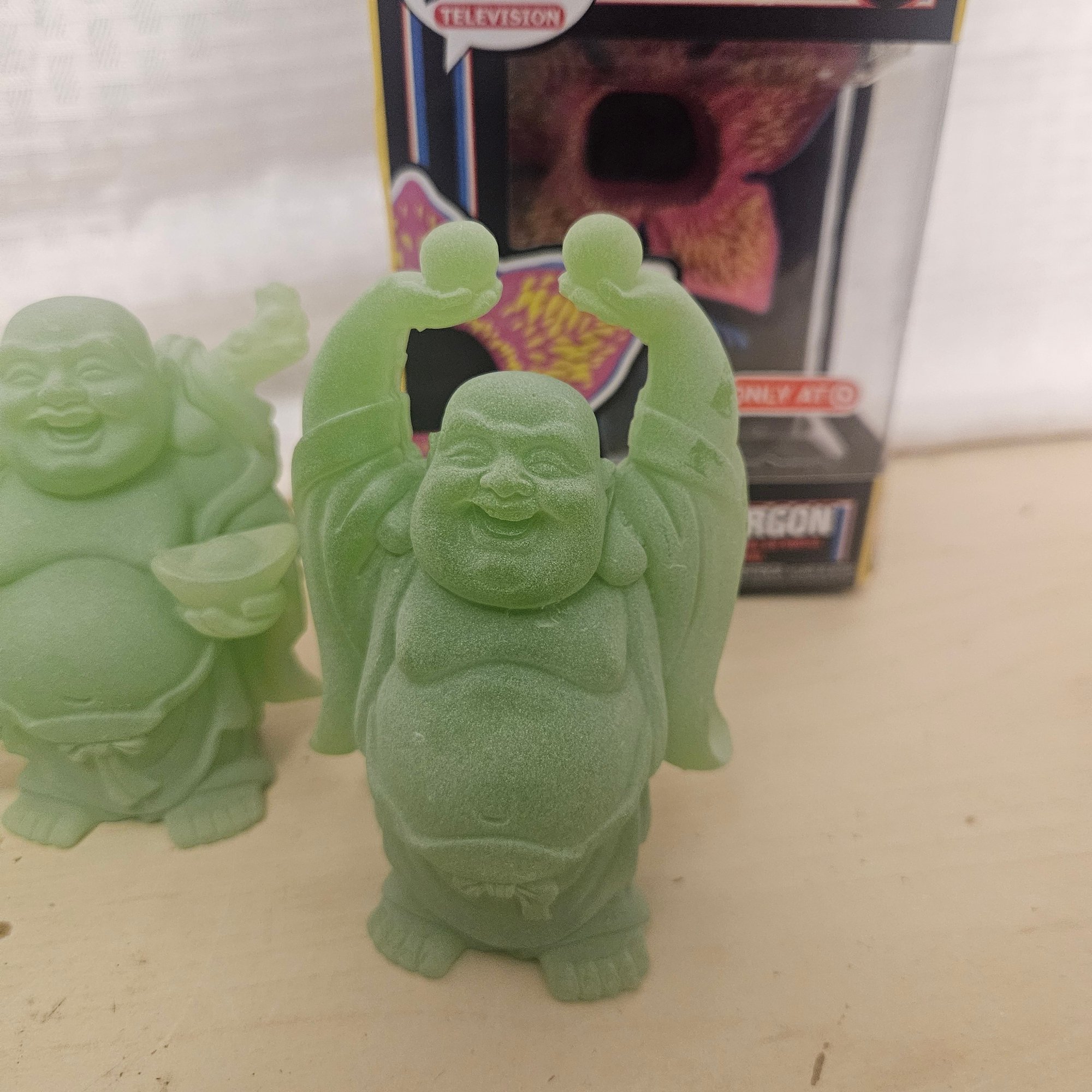 This fun and contrasting lot features three smiling Buddha figurines that bring a sense of joy, positivity, and peaceful charm, paired with a Stranger Things Demogorgon Pop figure for a bold pop culture twist. The blend of calming décor and iconic fandom makes this an eye-catching and entertaining collection. Perfect for collectors, fans of the show, or anyone who enjoys unique and eclectic display pieces.
