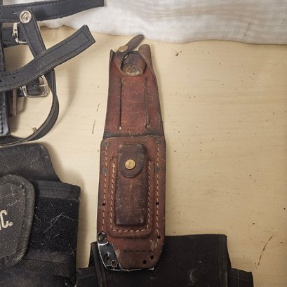 This practical and intriguing lot includes numerous sheaths and holders, one shifting lock, and a wobbling hammer. Ideal for collectors, DIY enthusiasts, or anyone looking to expand their toolkit with unique and functional items, this assortment offers utility, versatility, and a touch of curiosity for workshops or home projects.